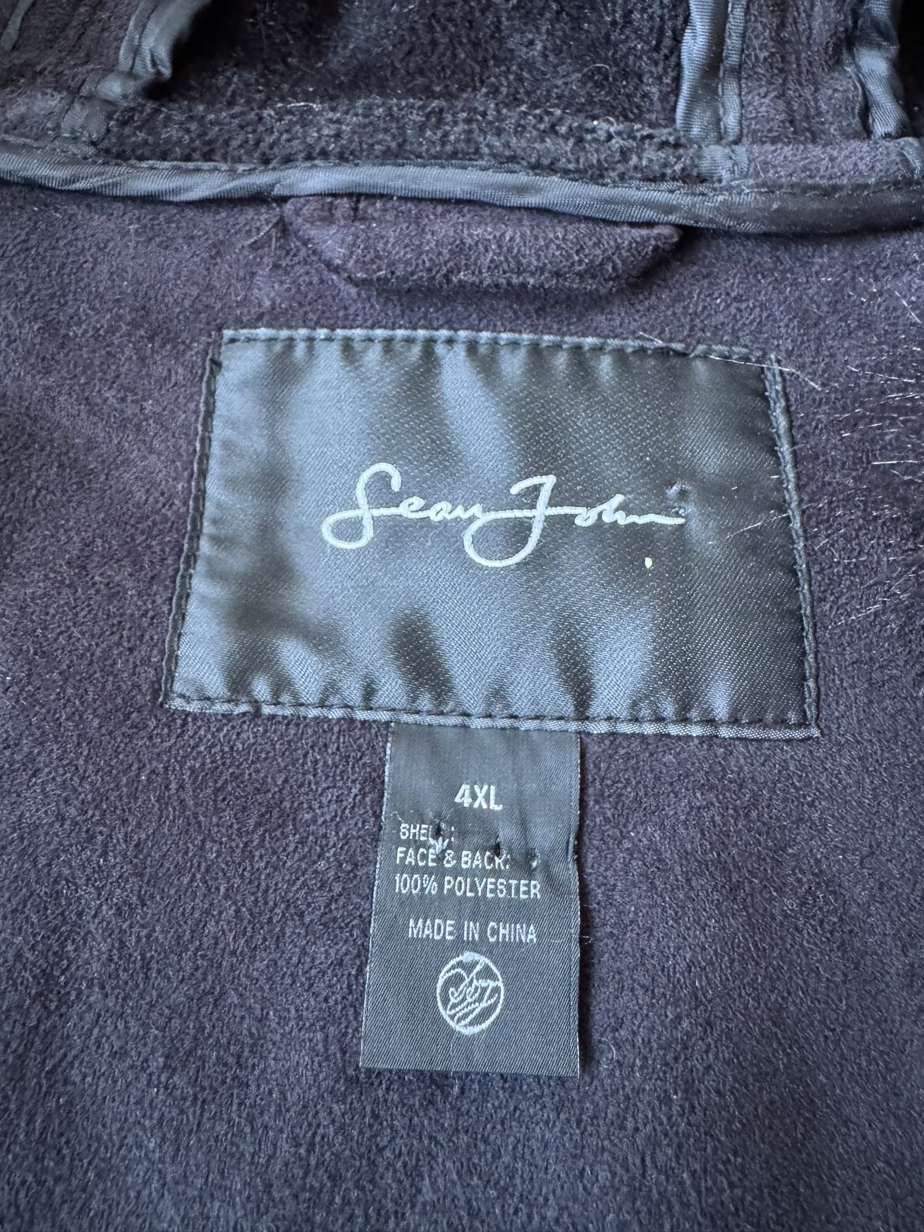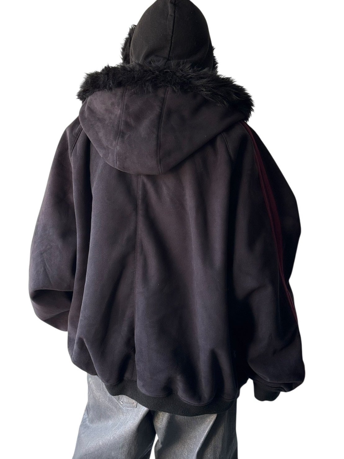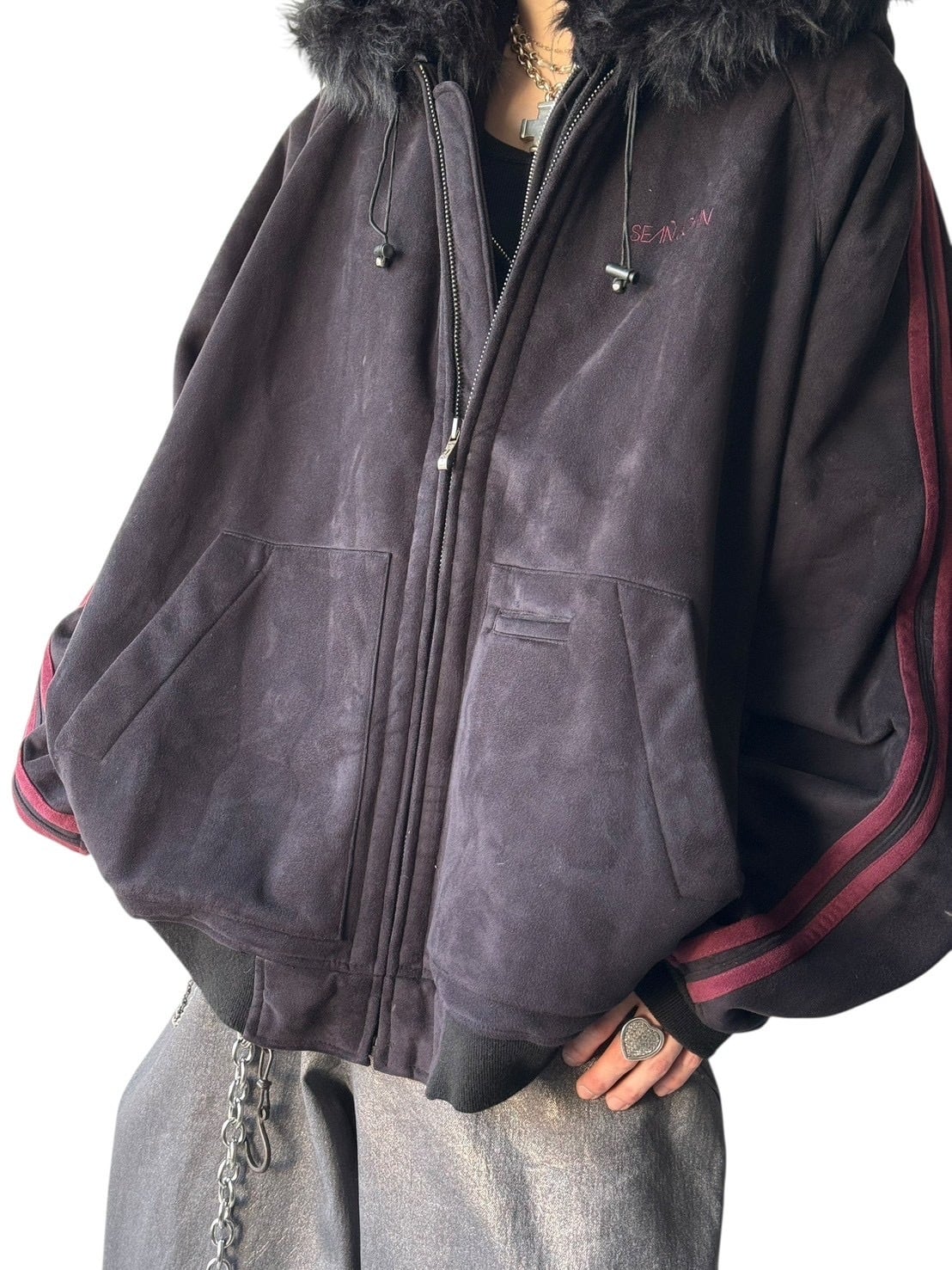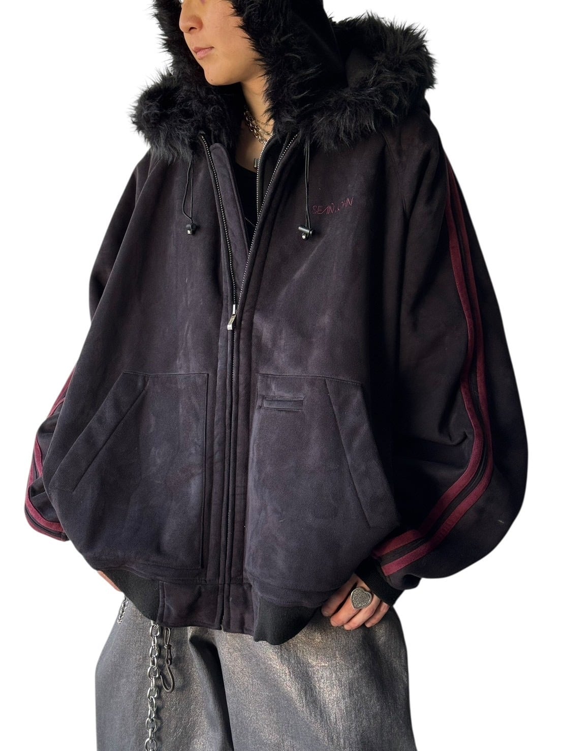 ♾SEAN JOHN♾ w line design over sized faux suede zip up hooded jacket size4XL