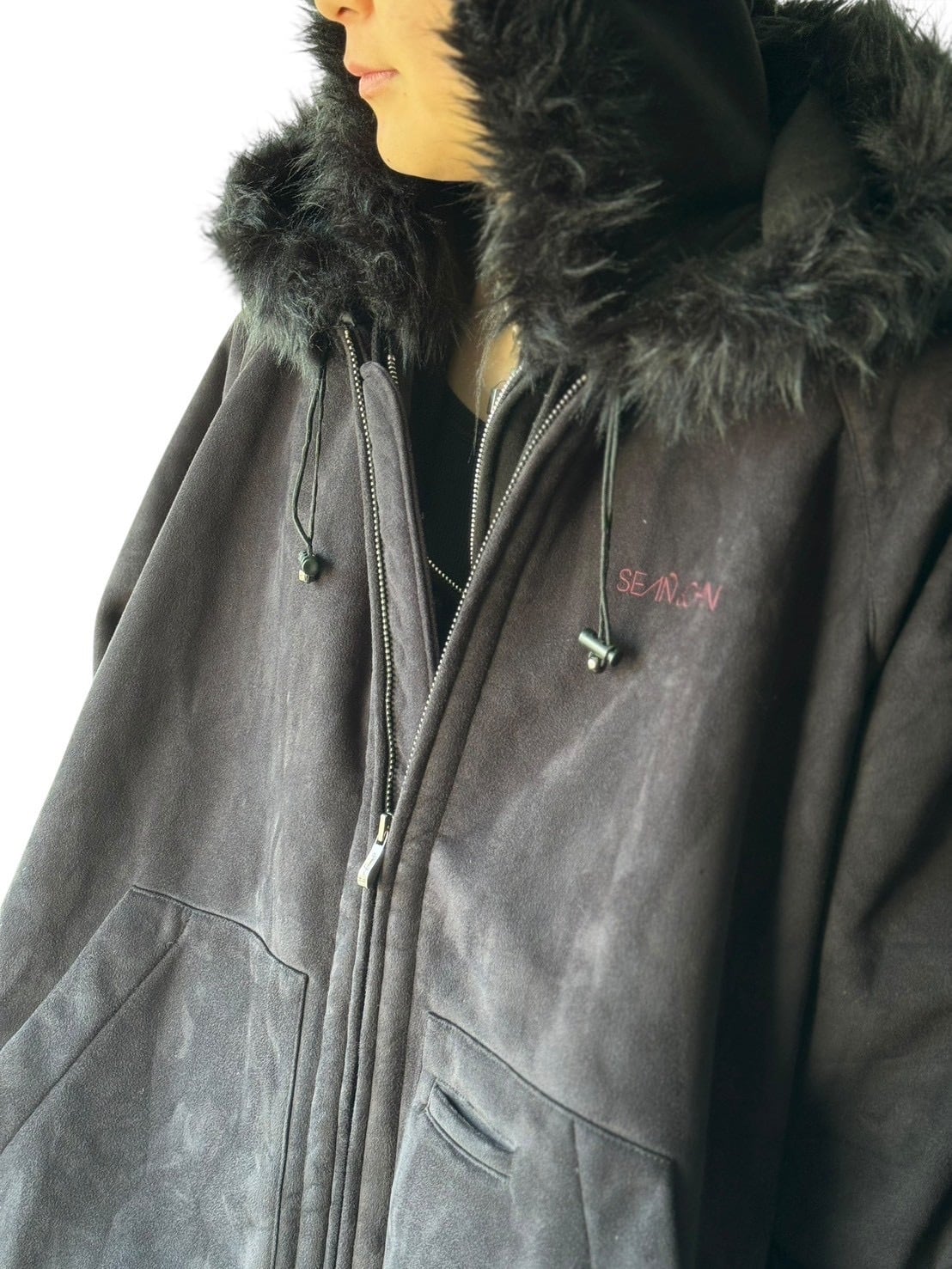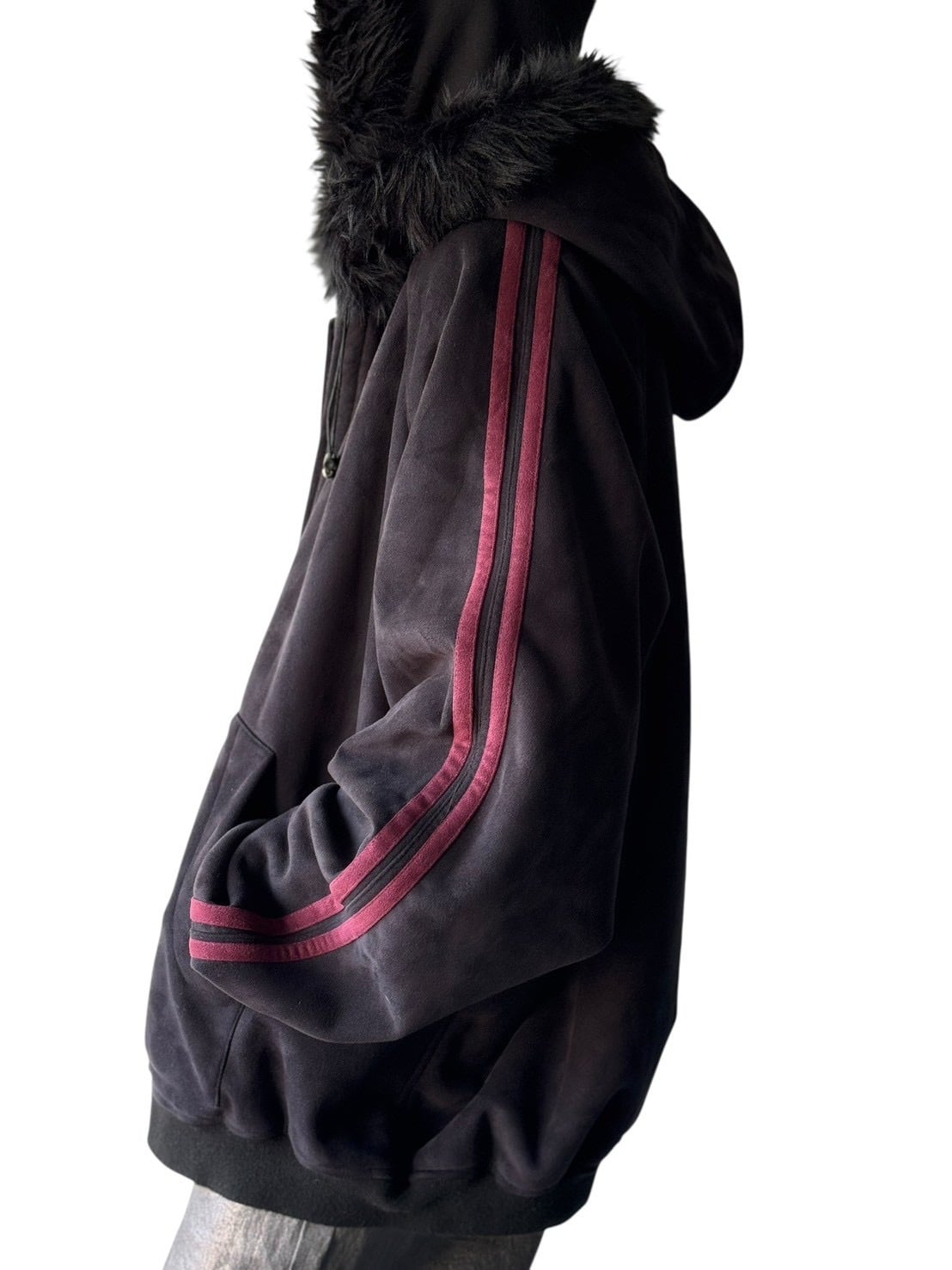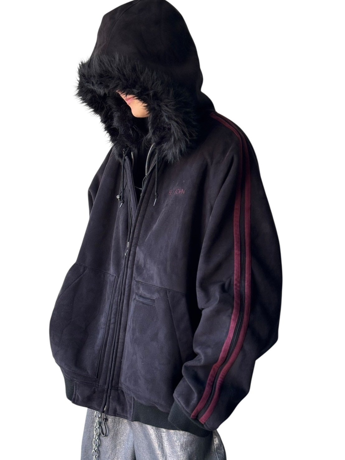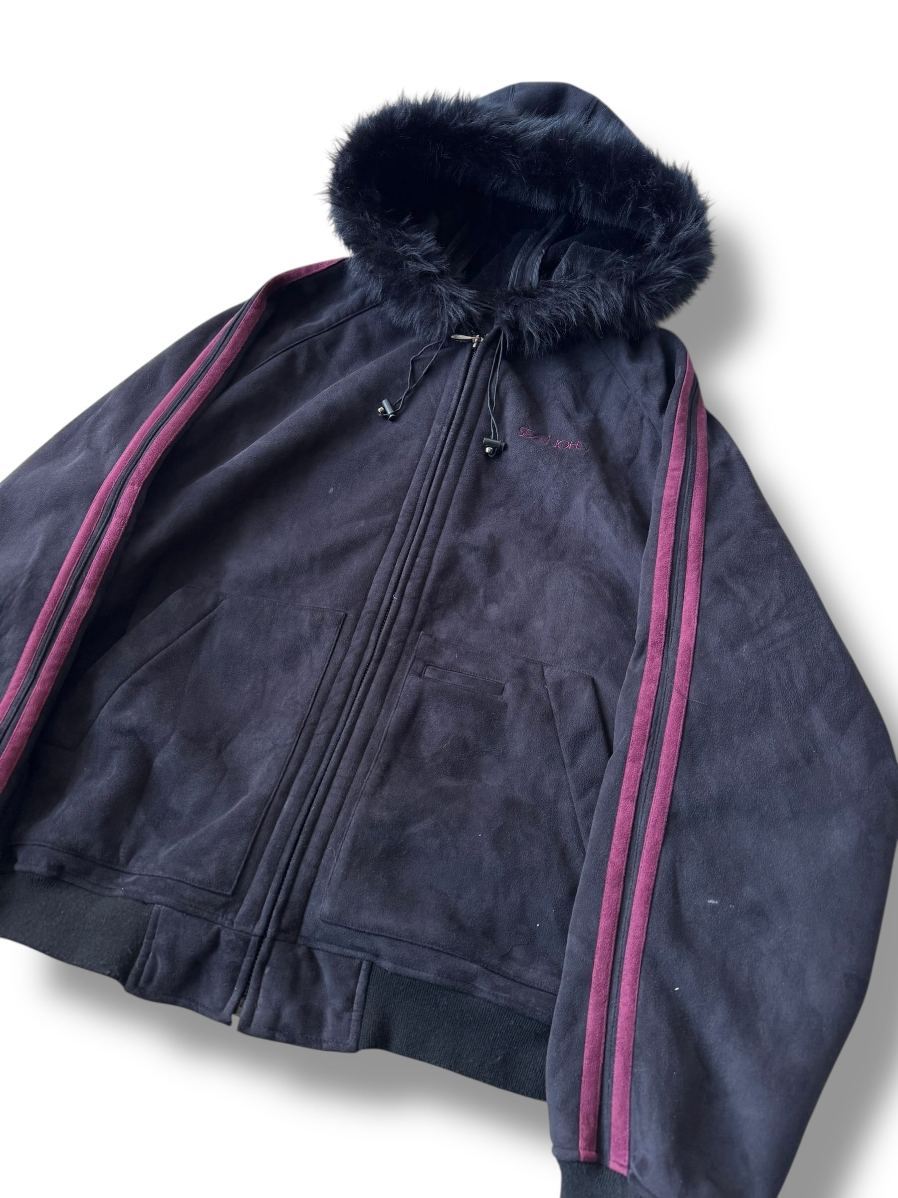 ♾SEAN JOHN♾ w line design over sized faux suede zip up hooded jacket size4XL
