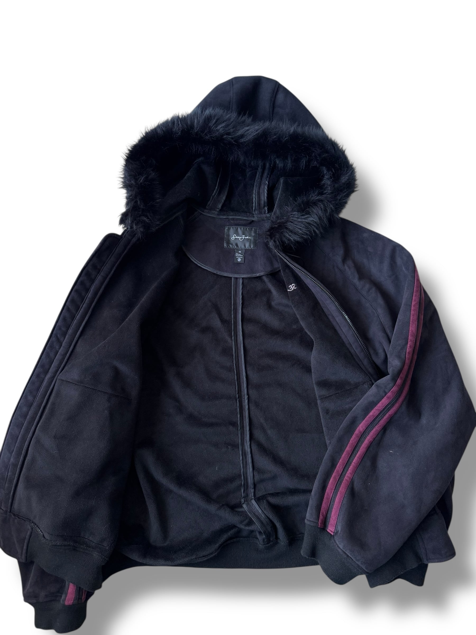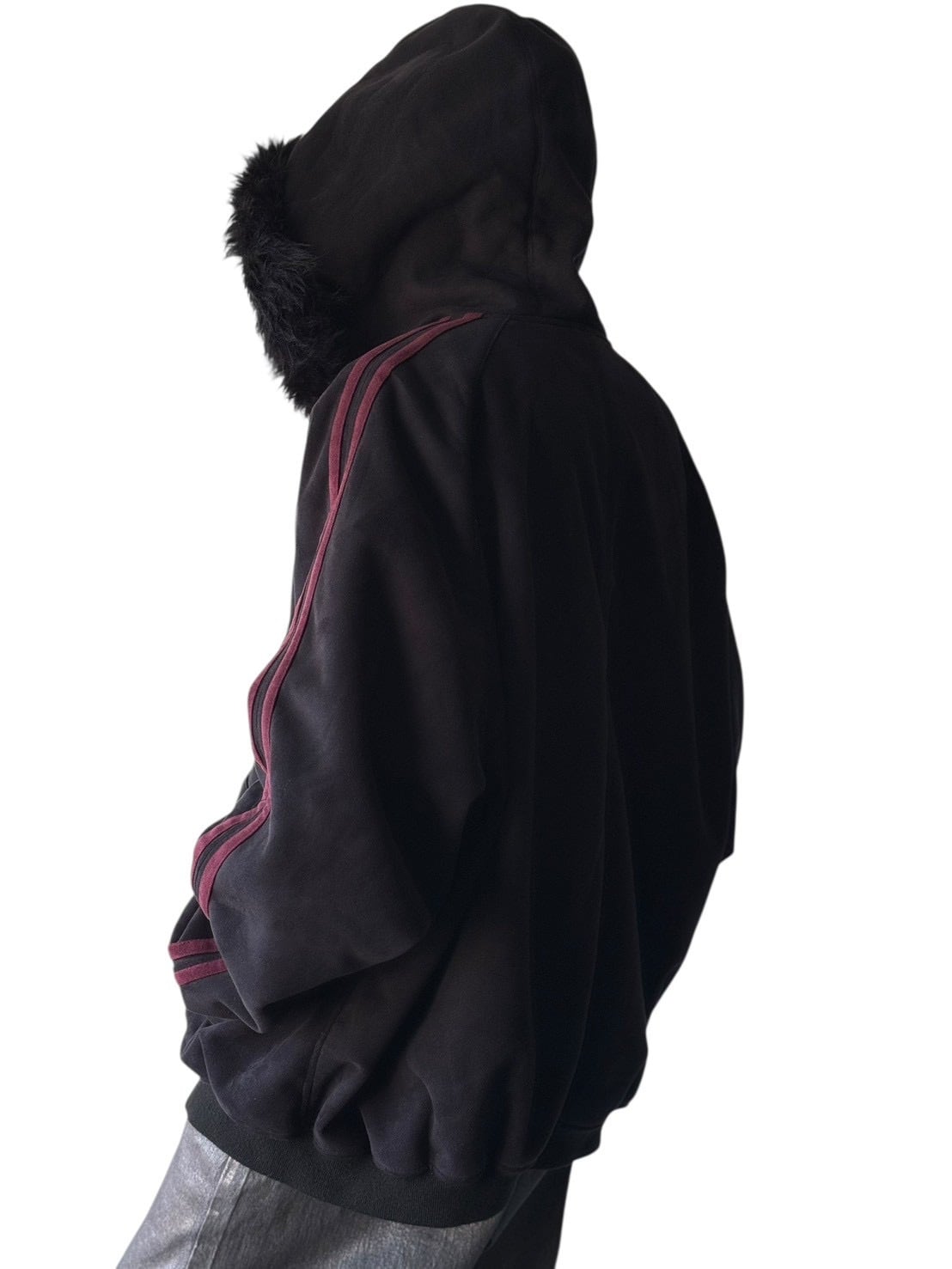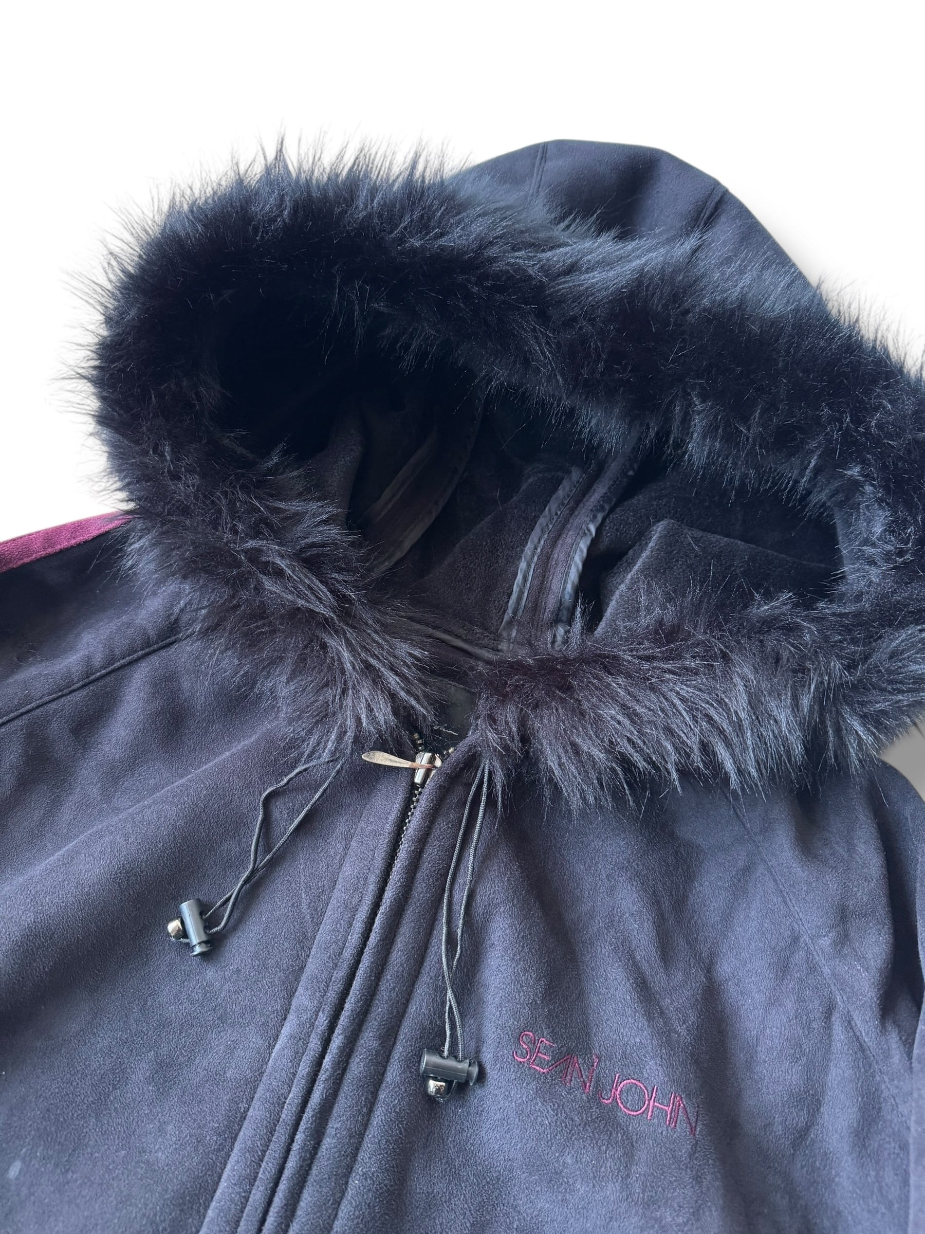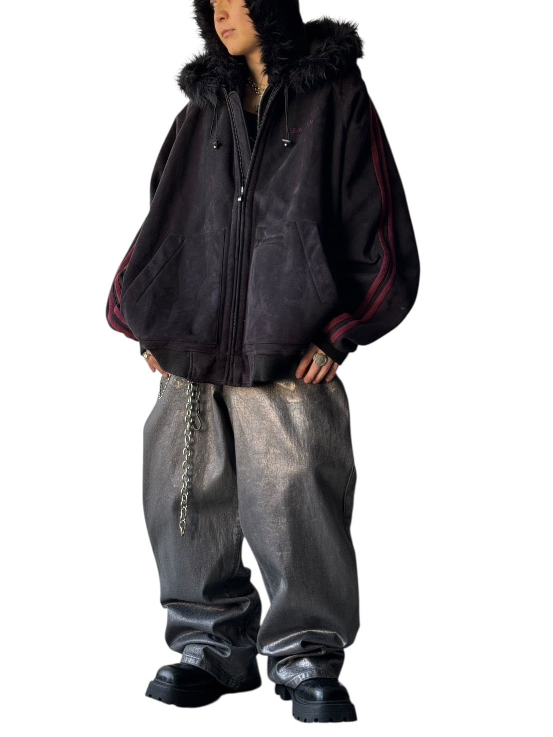 ♾SEAN JOHN♾ w line design over sized faux suede zip up hooded jacket size4XL