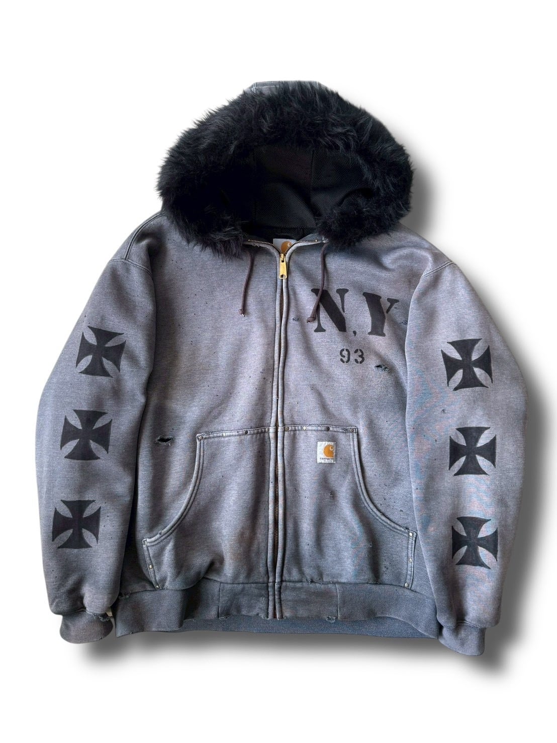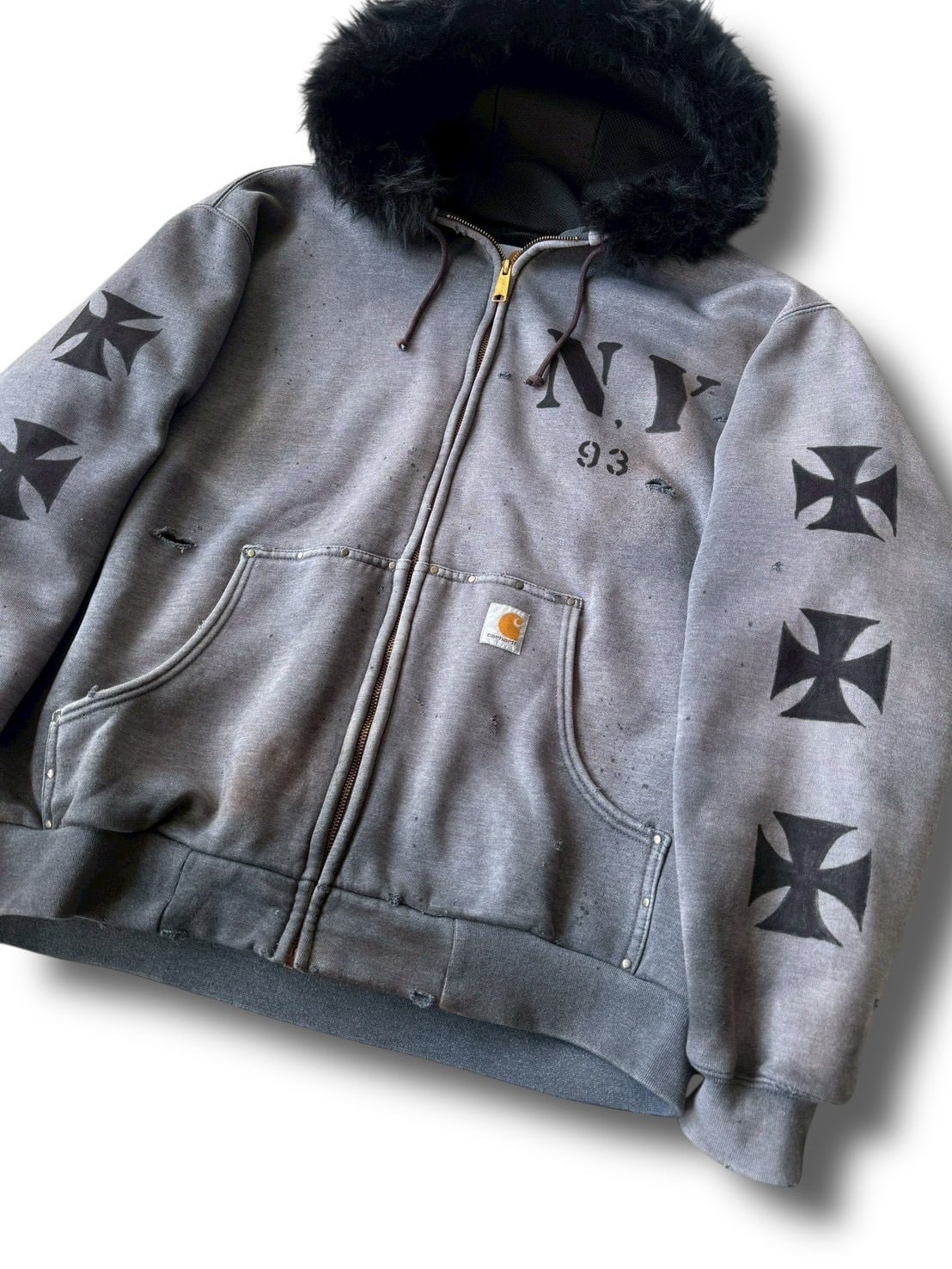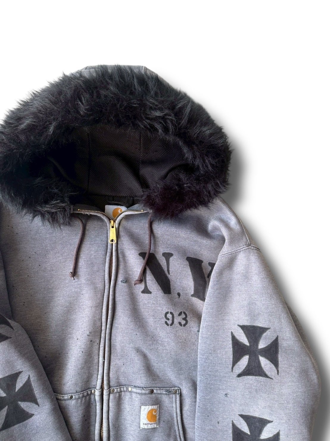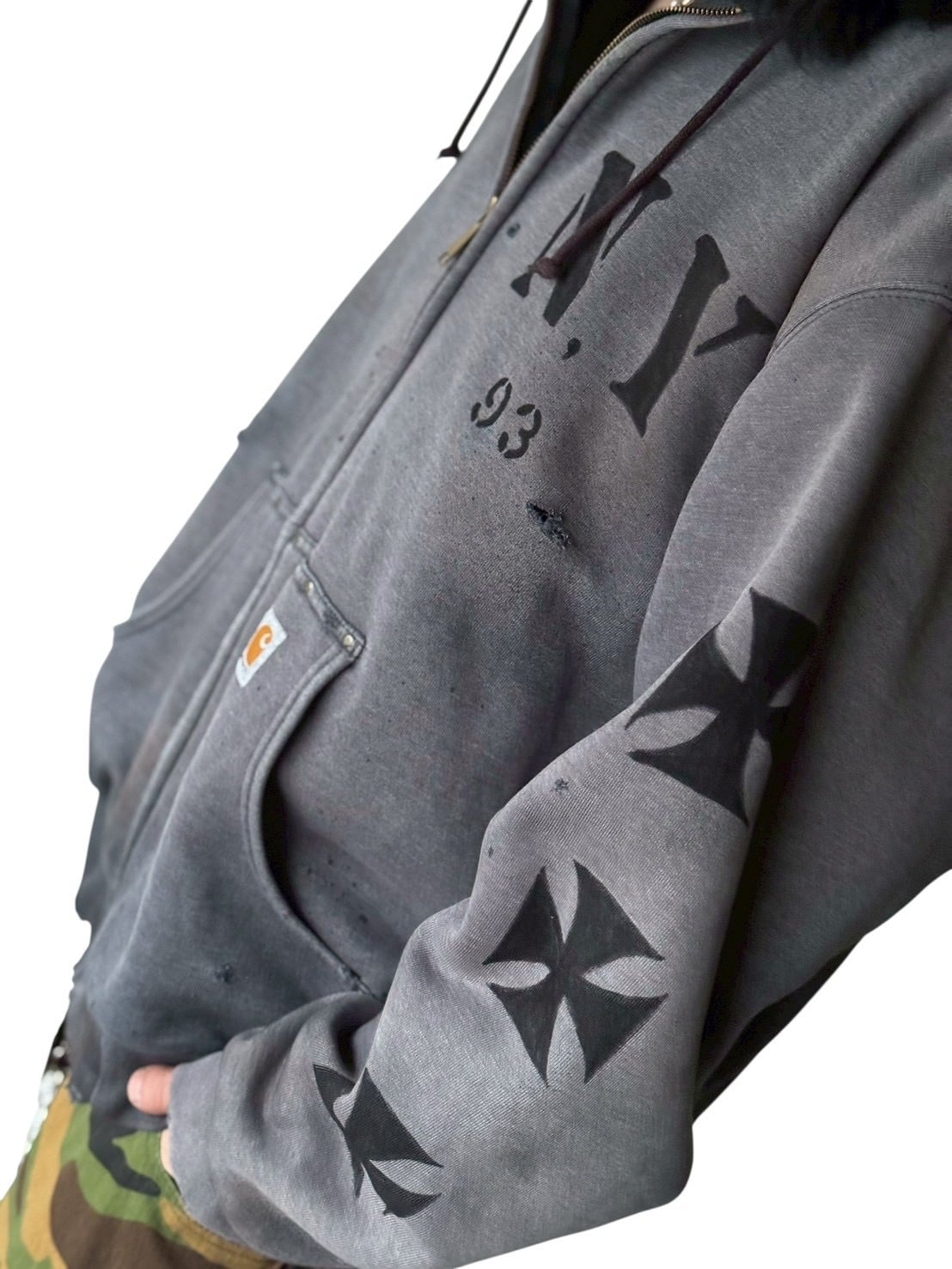 ♾Carhartt♾ sun fade damage & hand painted custom design zip up hoodie size XL
