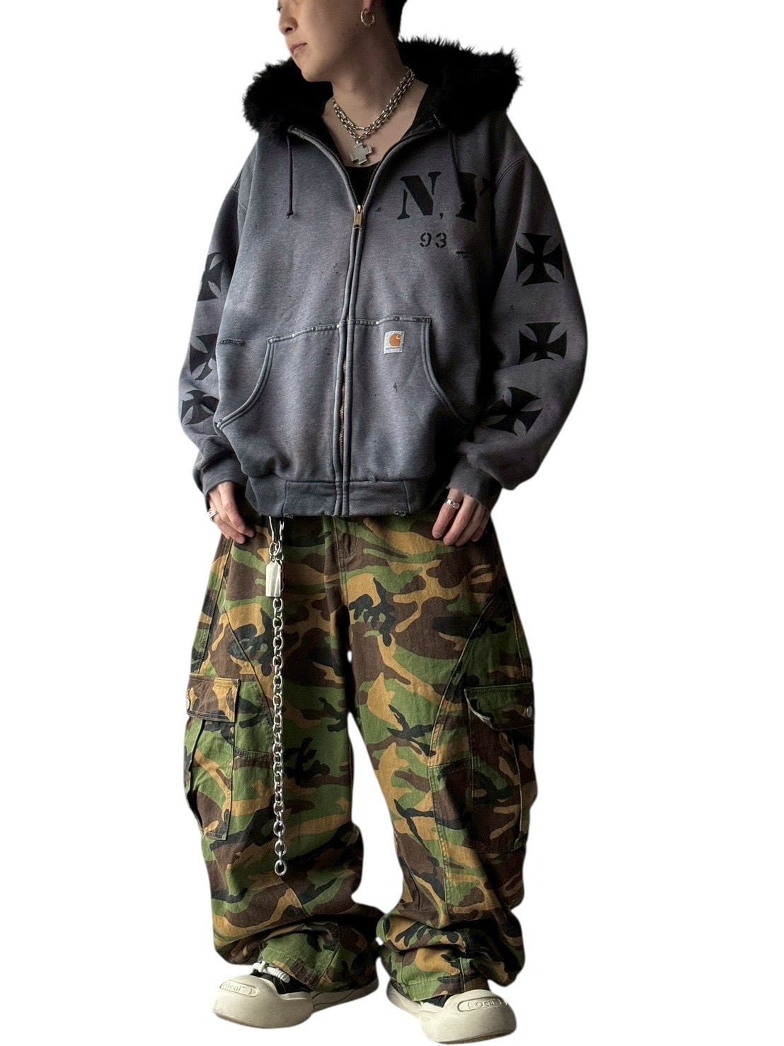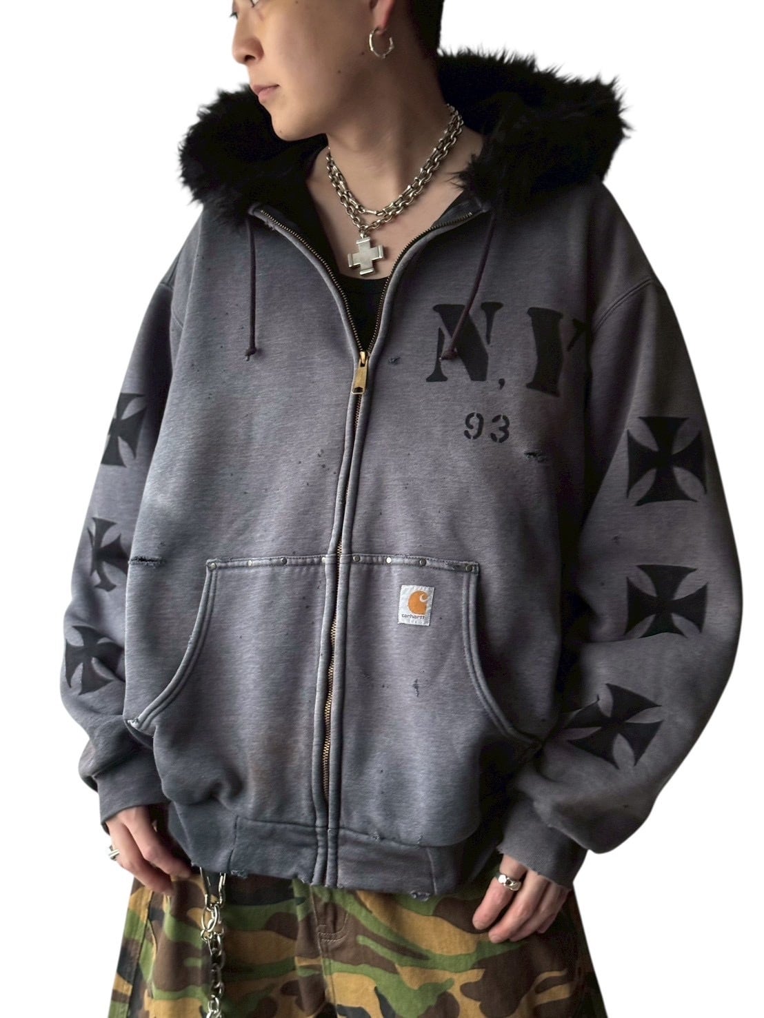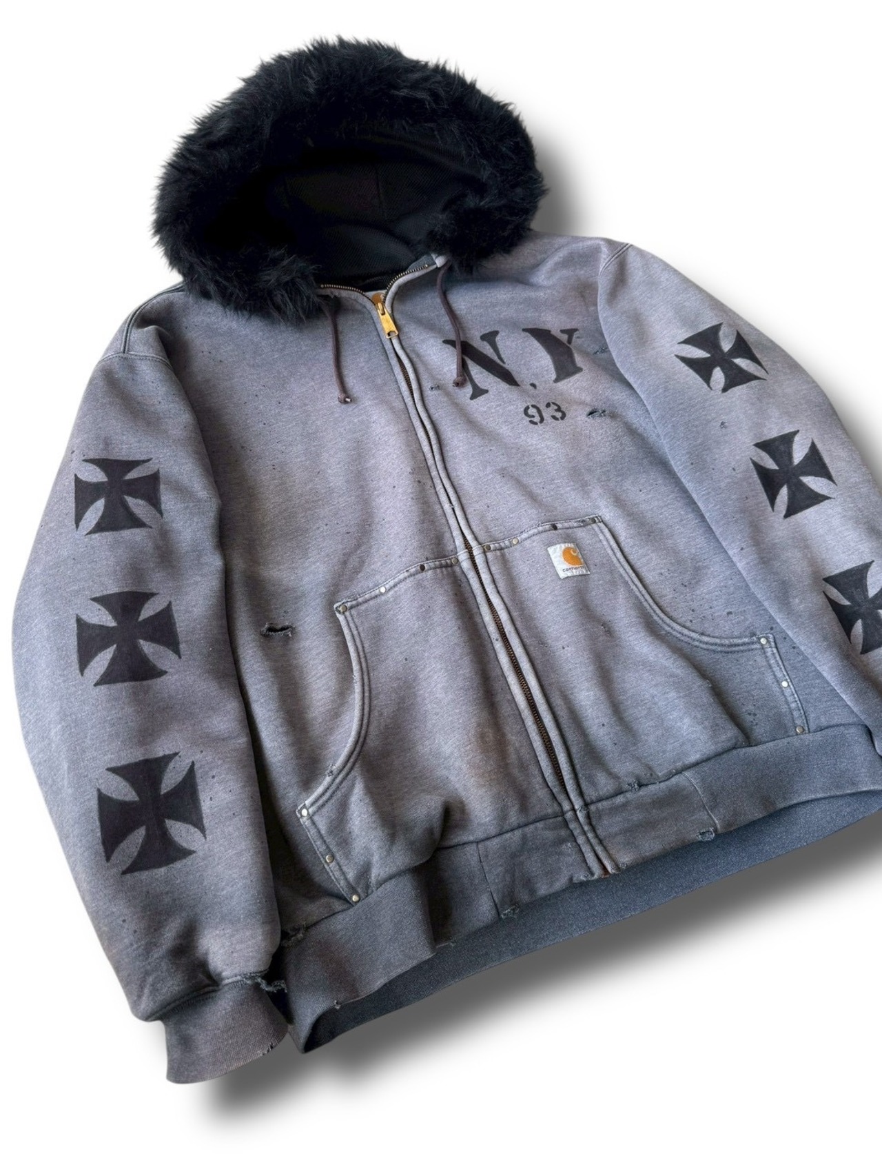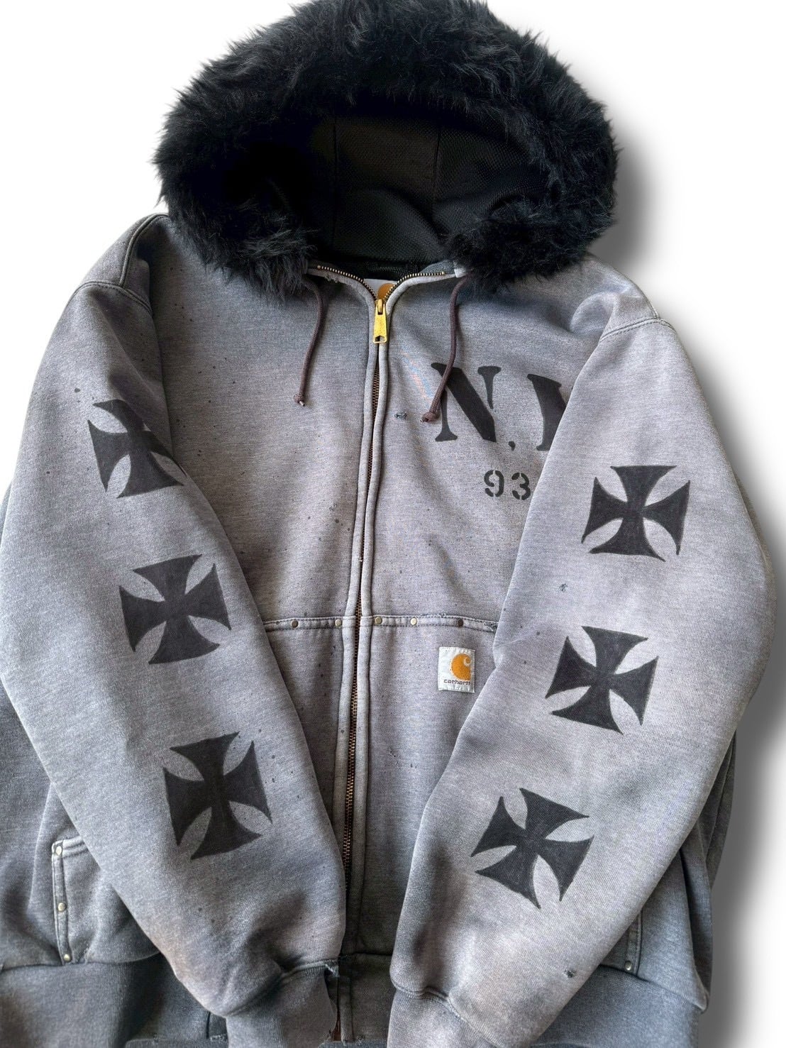 ♾Carhartt♾ sun fade damage & hand painted custom design zip up hoodie size XL