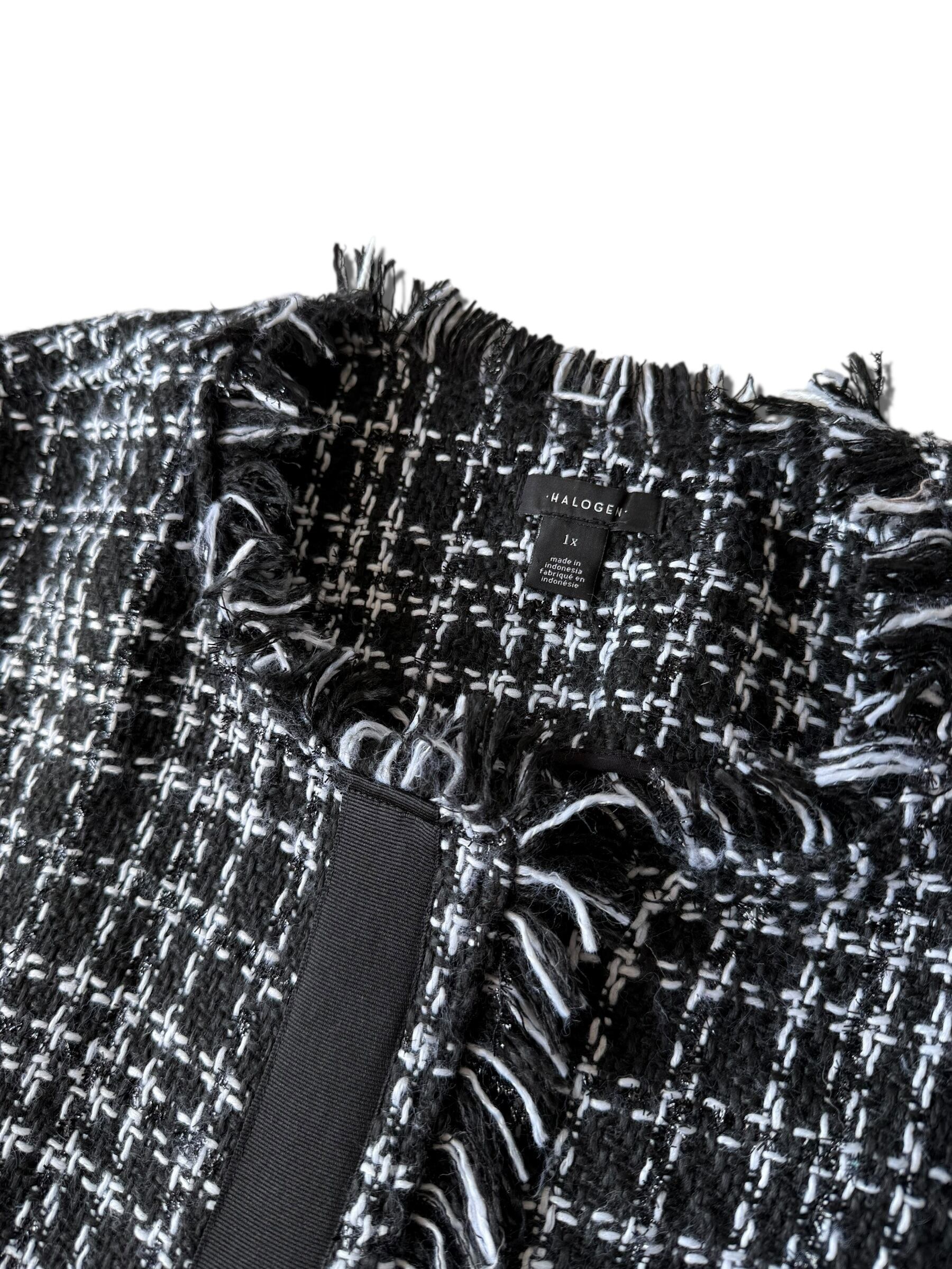 【HALOGEN】 Lame-blend collarless tweed jacket