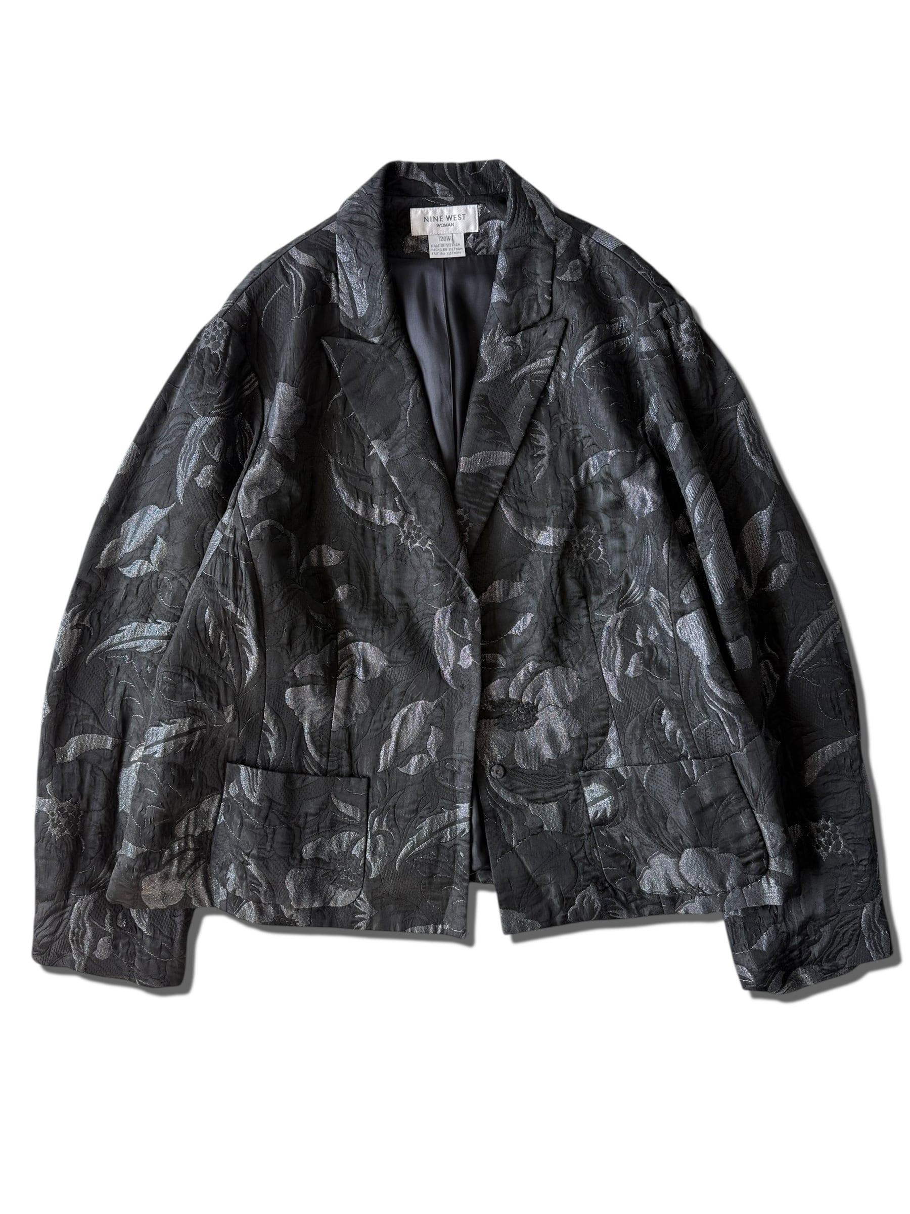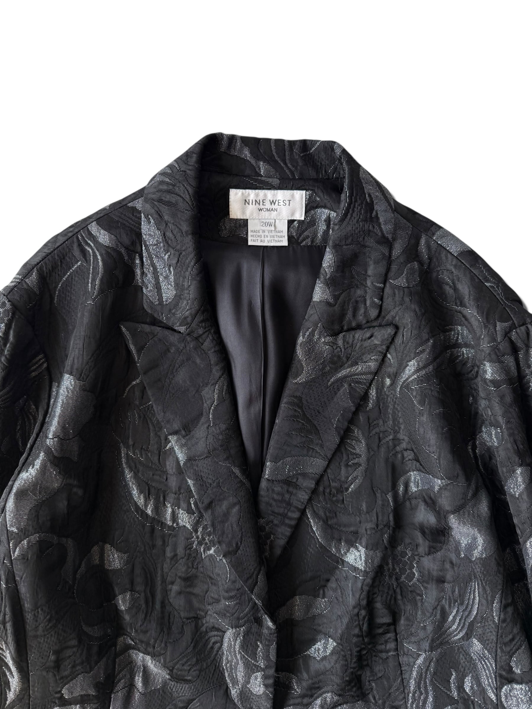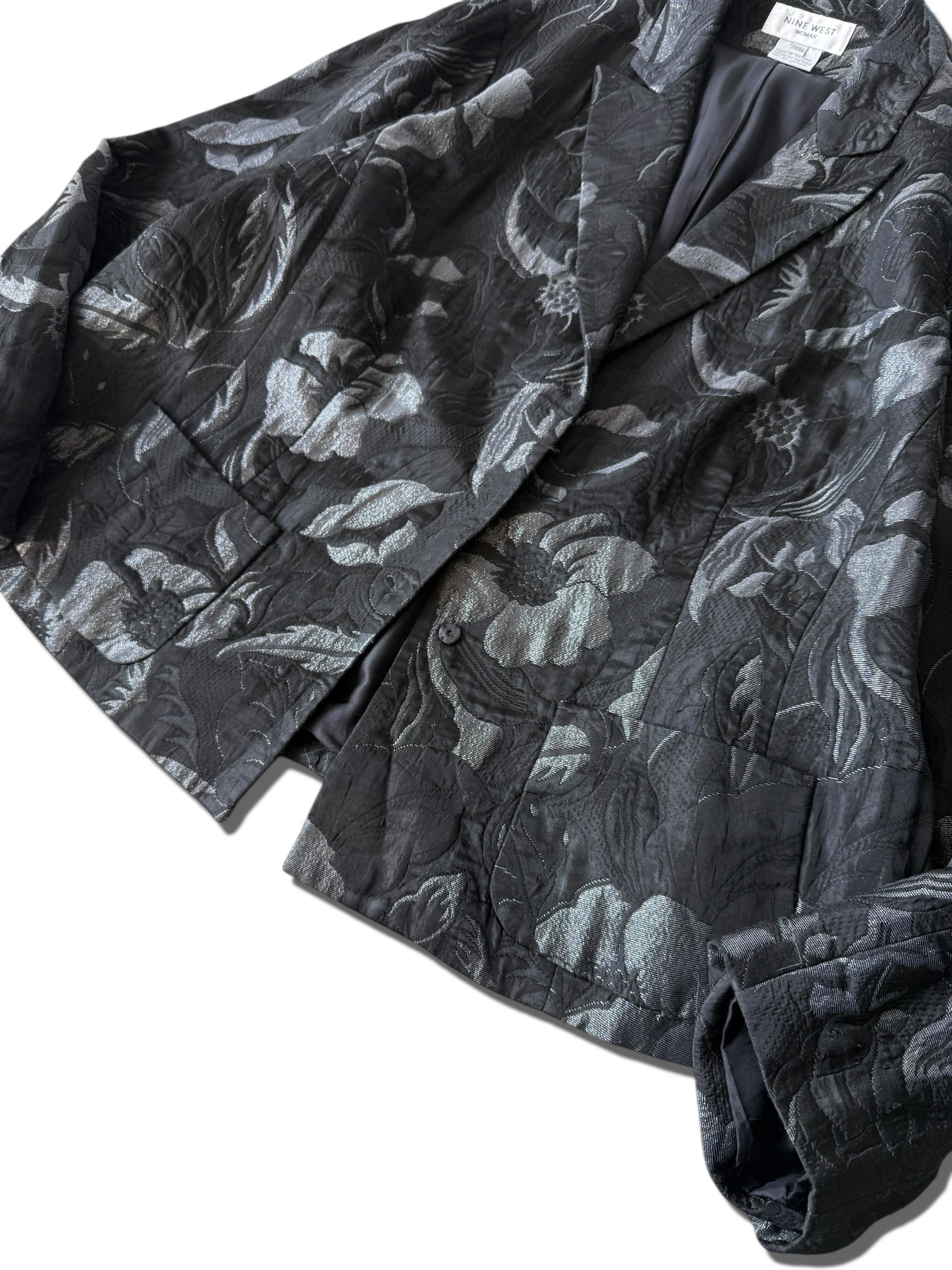 【NINE WEST】 Botanical Woven pattern Black Tailored Jacket
