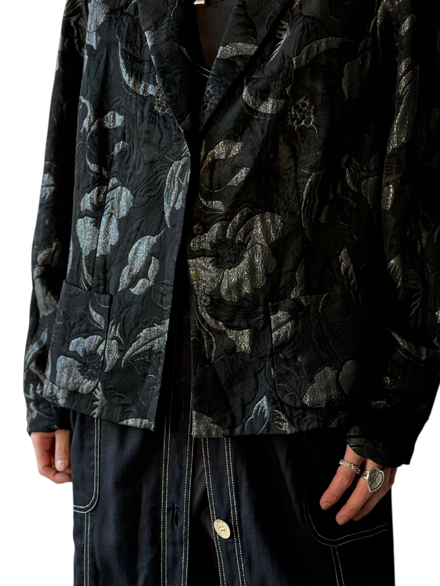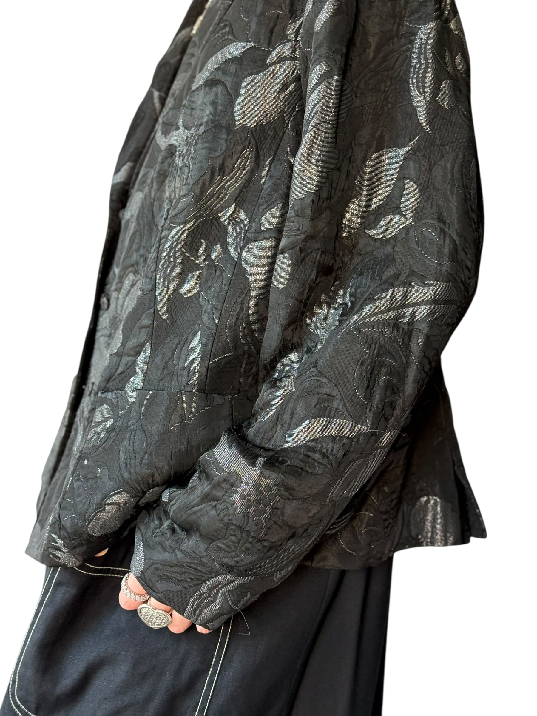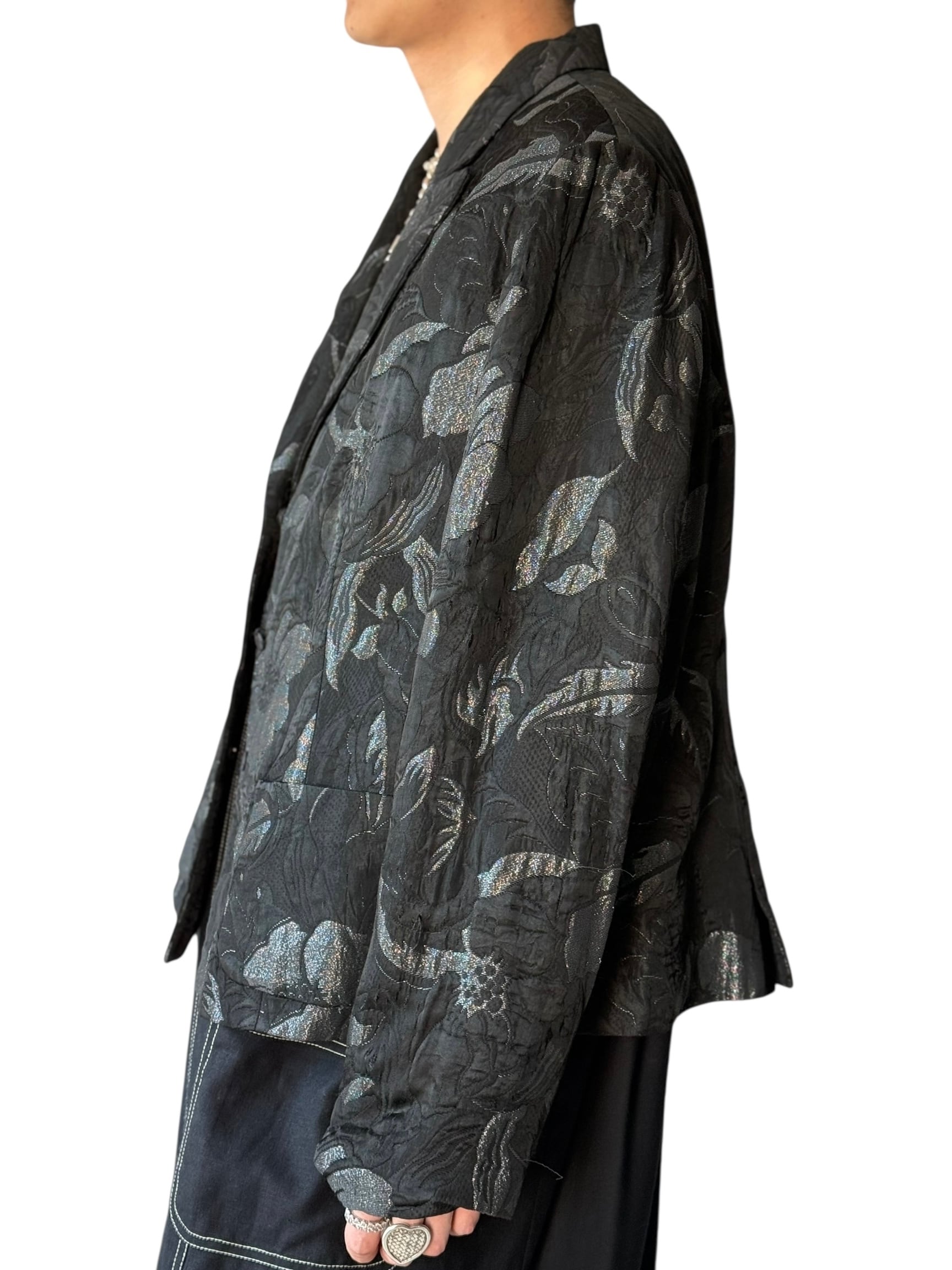 【NINE WEST】 Botanical Woven pattern Black Tailored Jacket