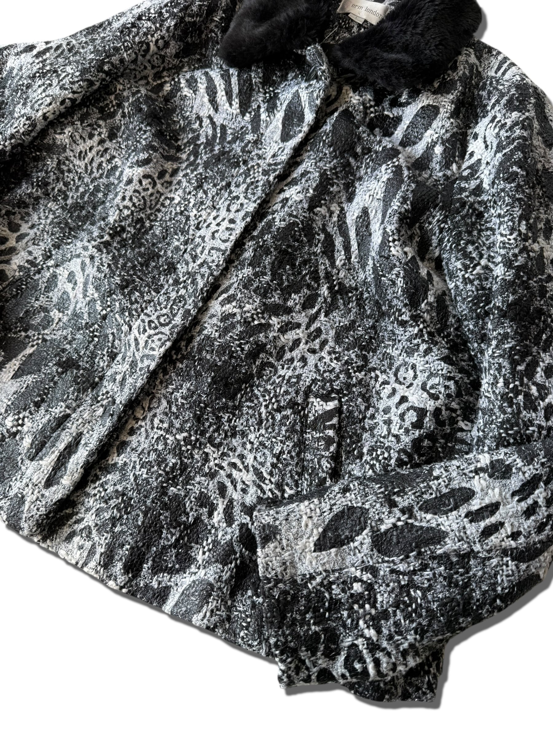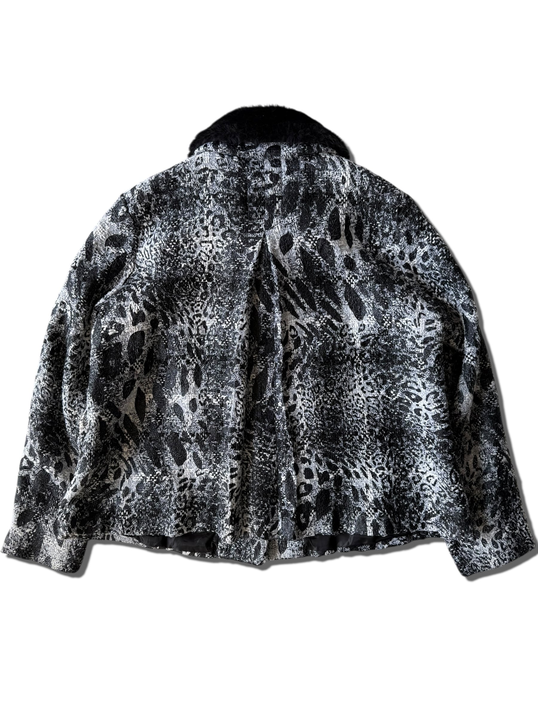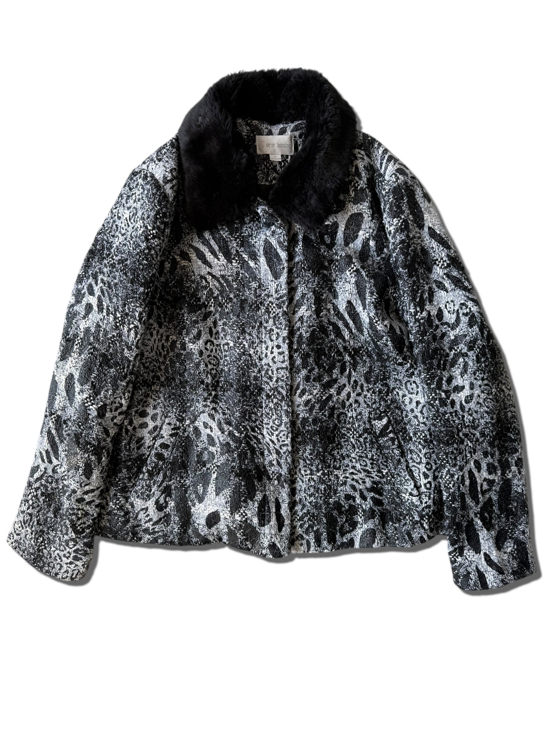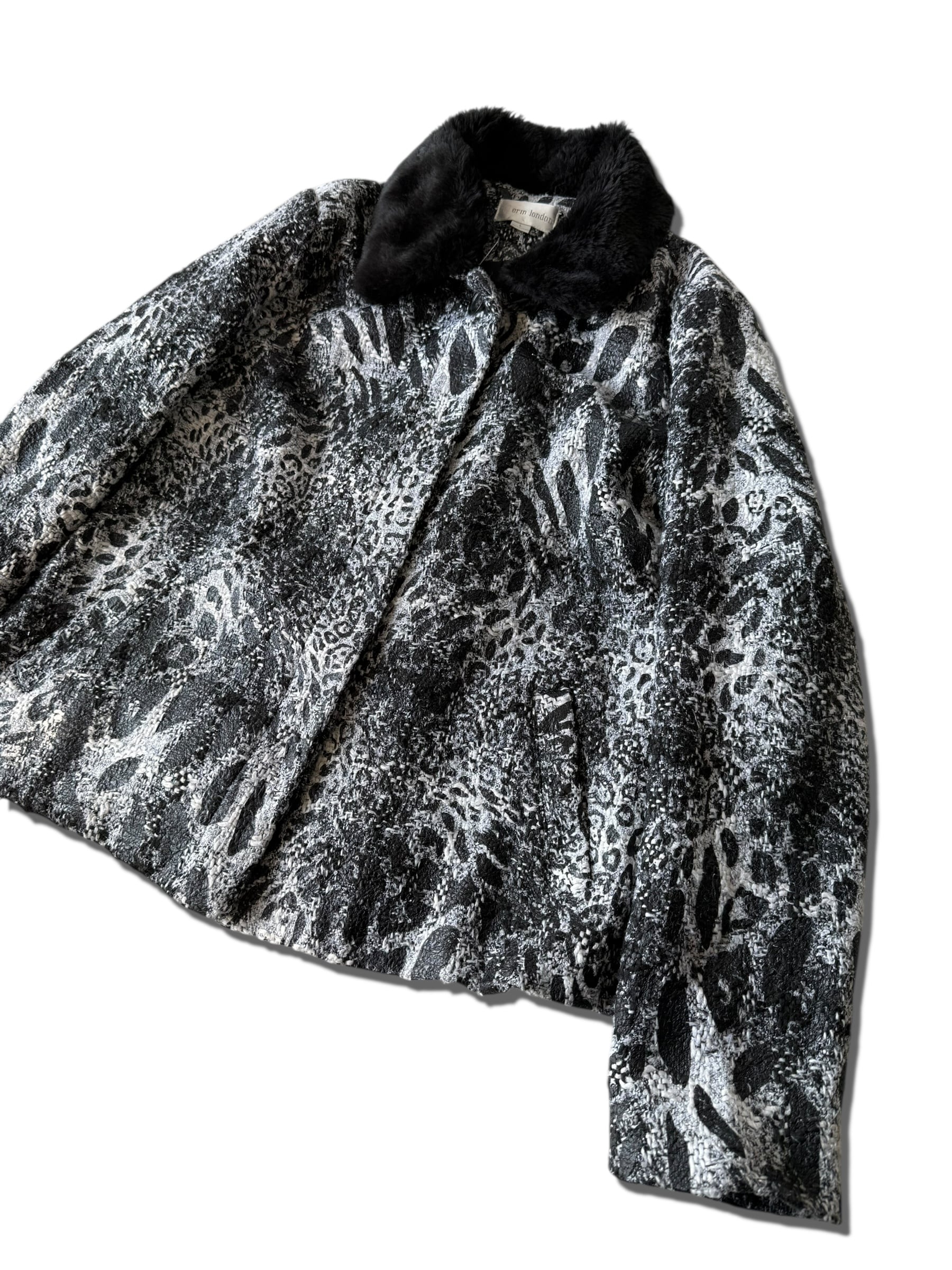 【erin london】"Animal jacquard design" collar fur switching short tweed jacket