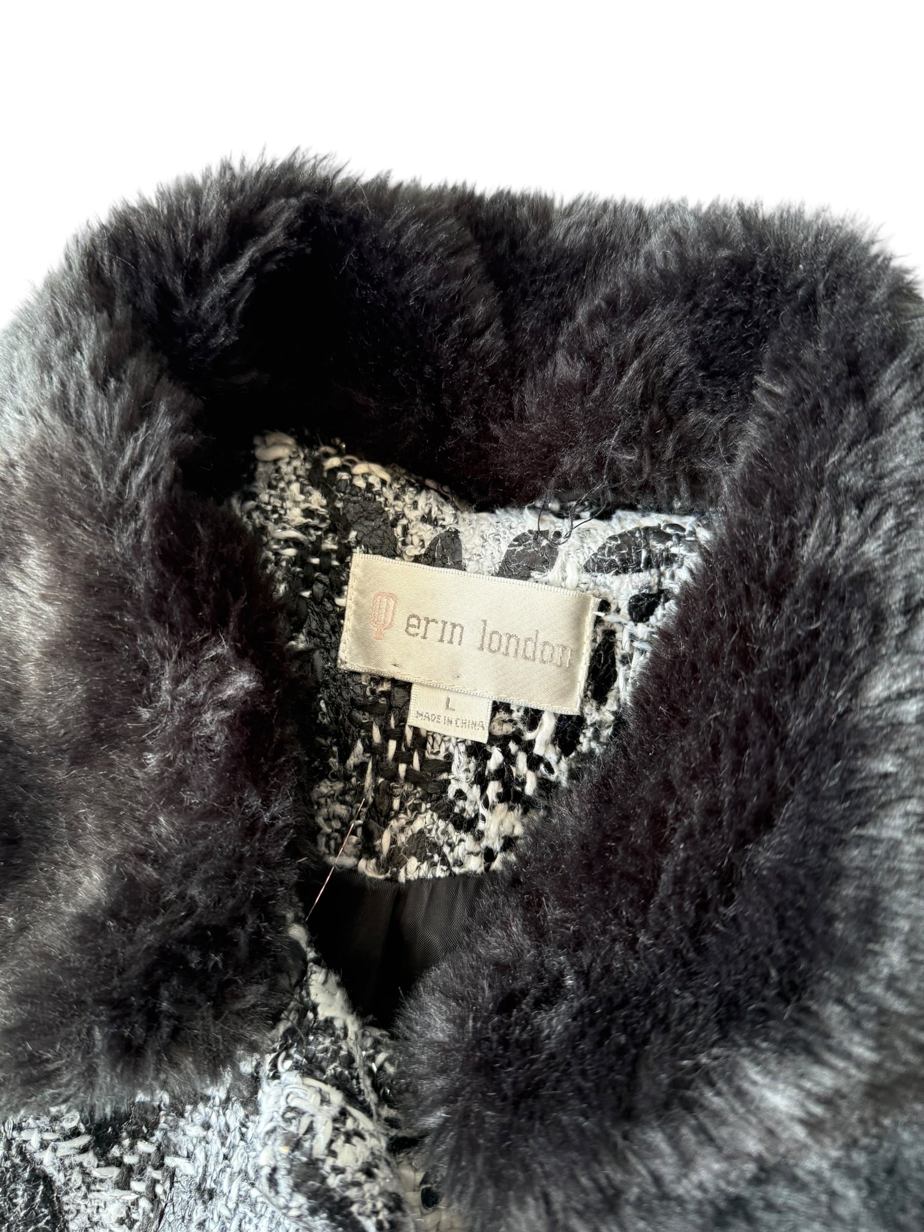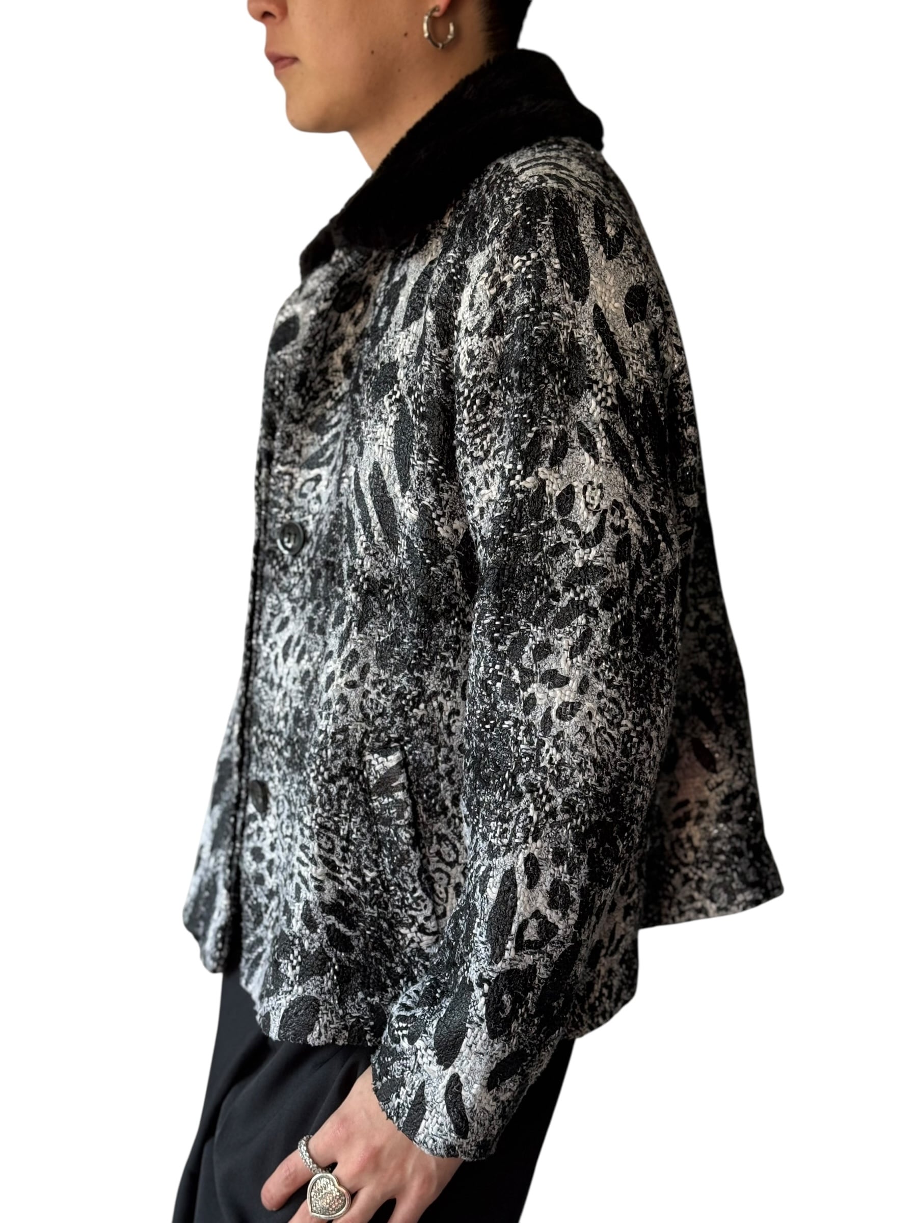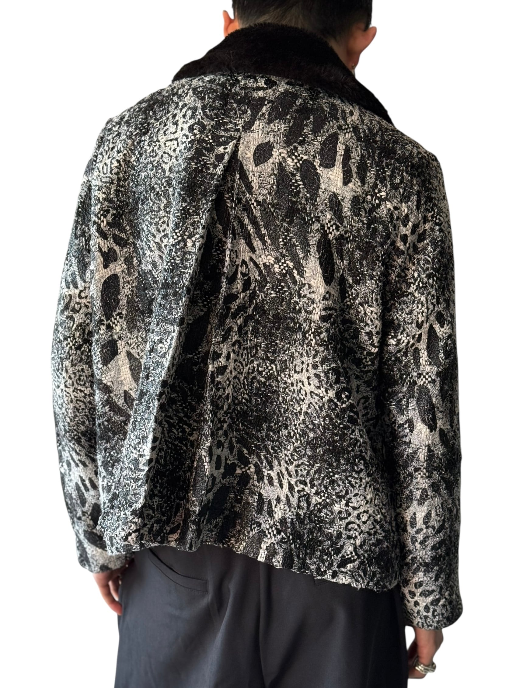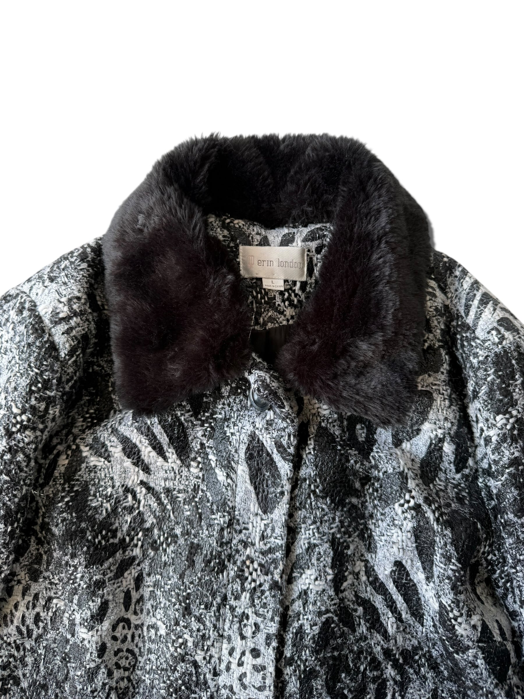 【erin london】"Animal jacquard design" collar fur switching short tweed jacket