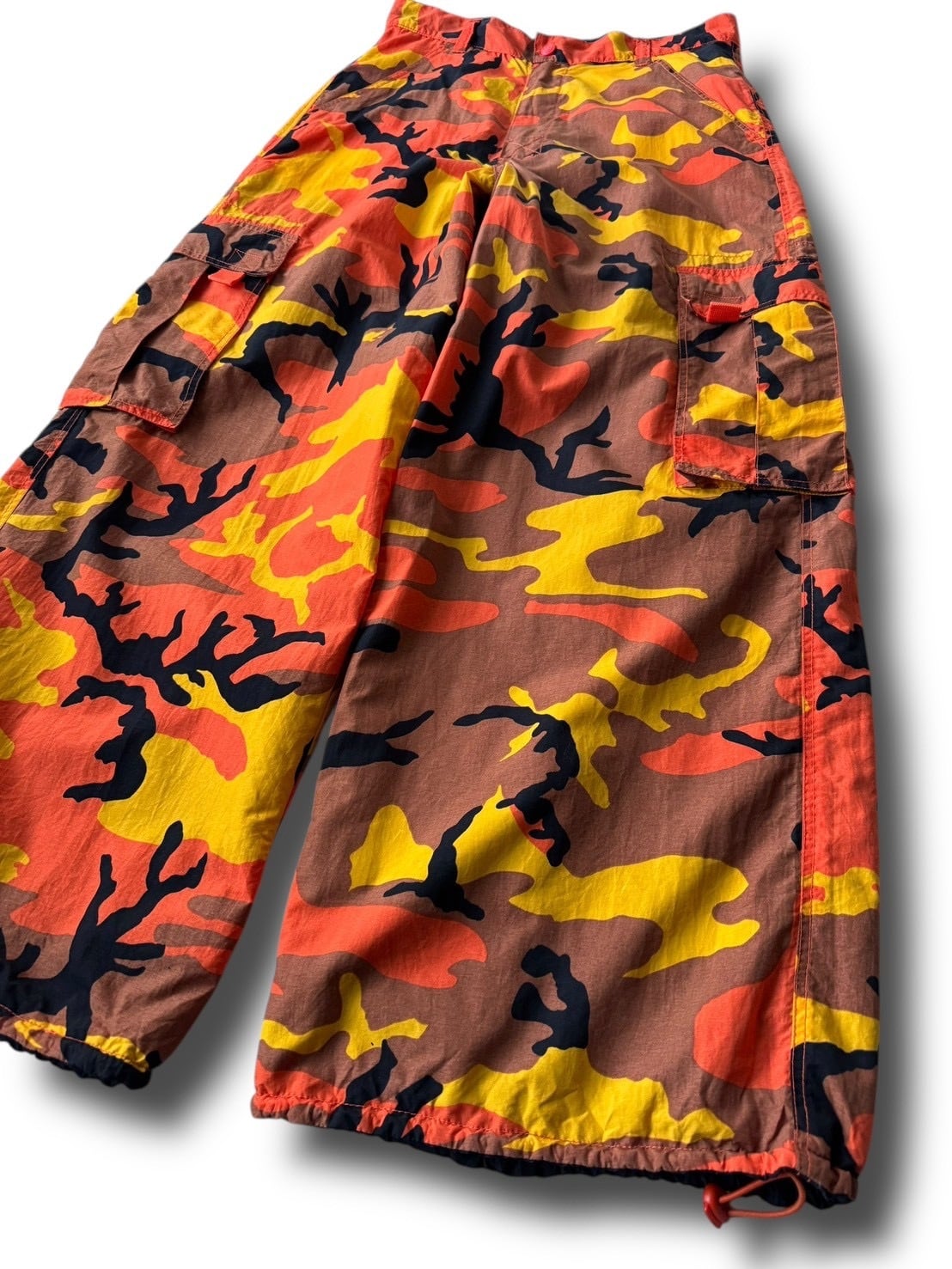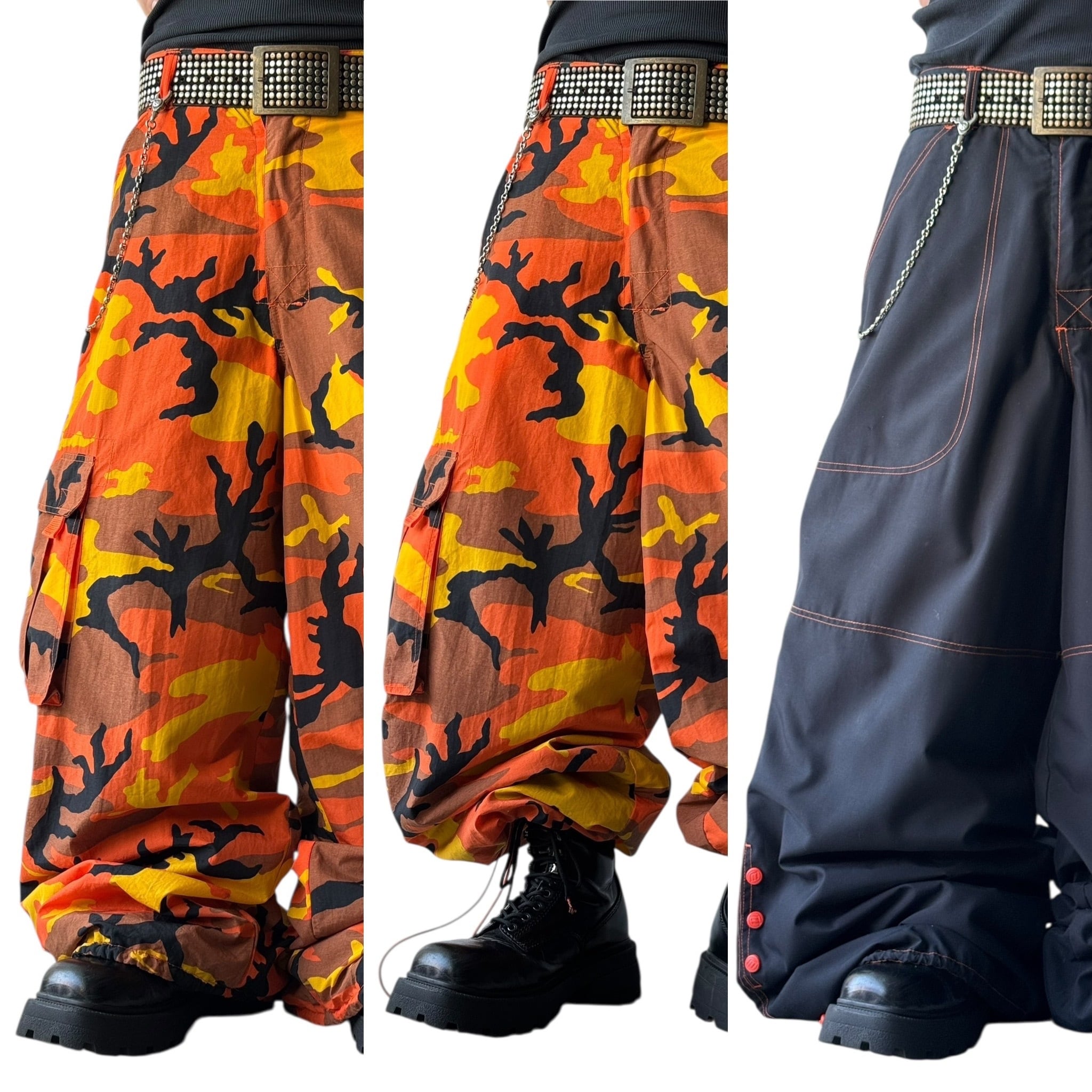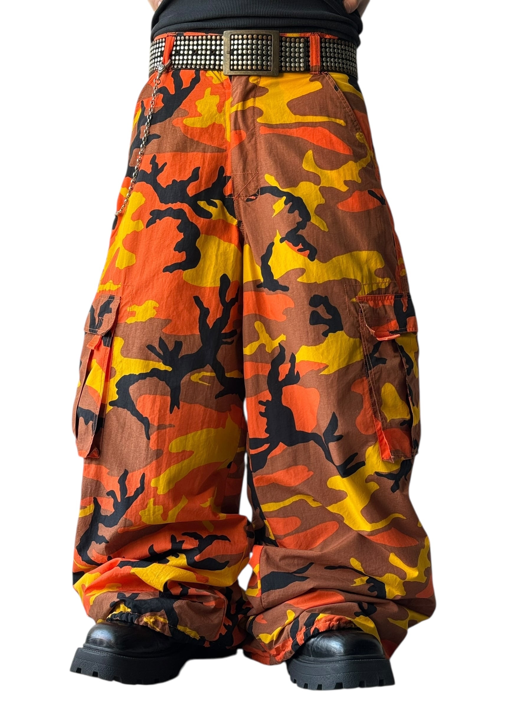 ♾MACCGEAR♾ Baggy silhouette reversible orange woodland camo cargo rave pants