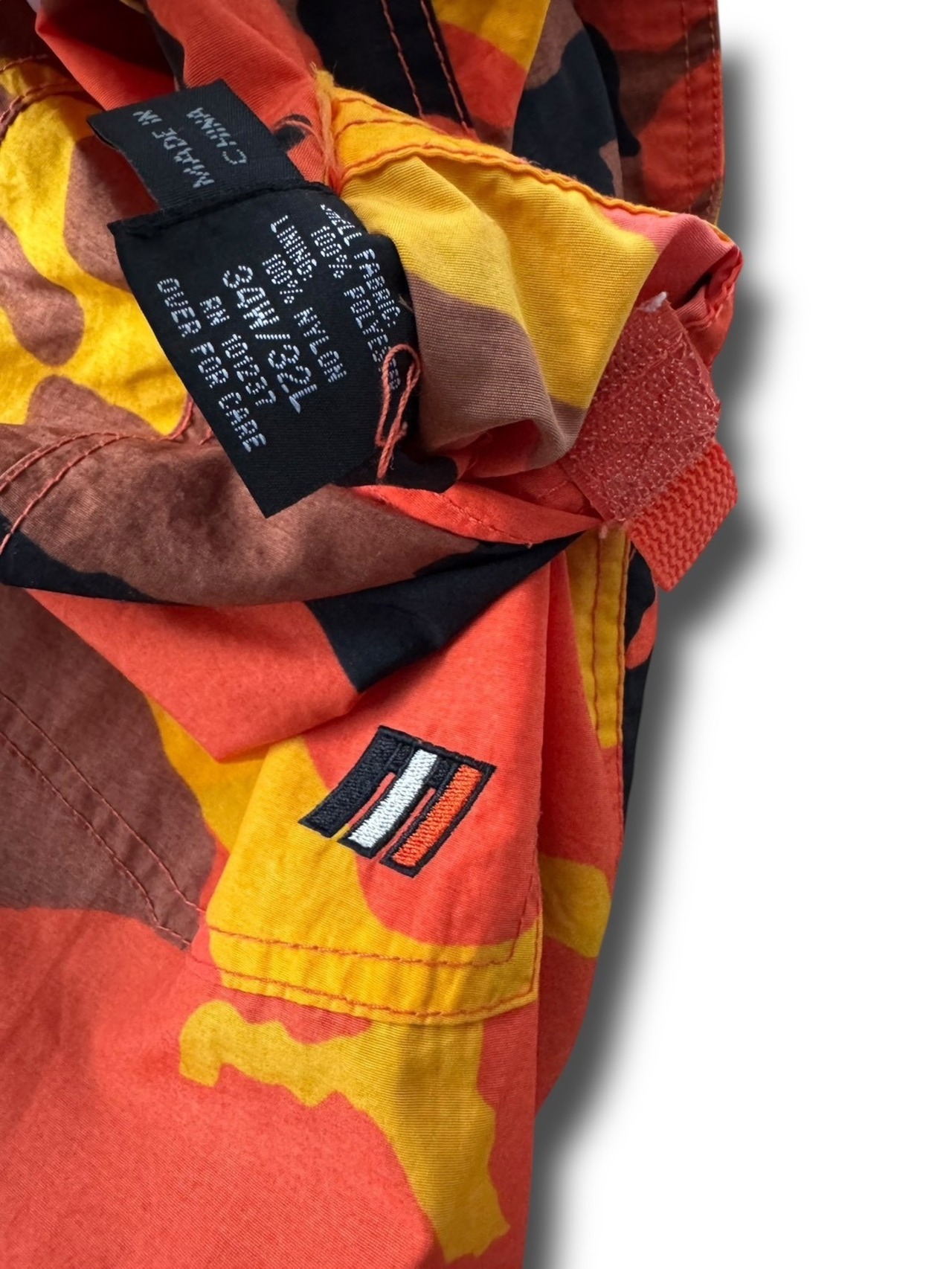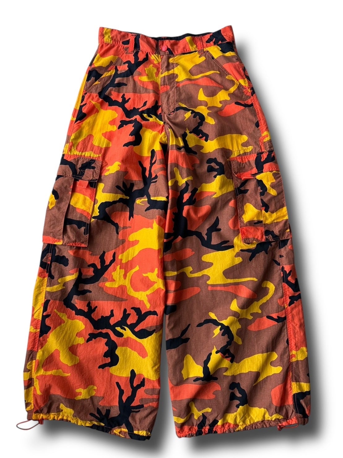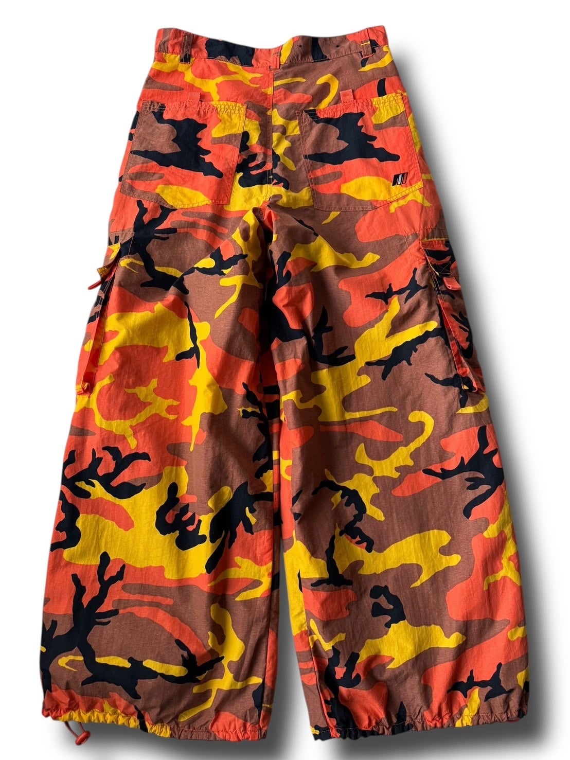♾MACCGEAR♾ Baggy silhouette reversible orange woodland camo cargo rave pants