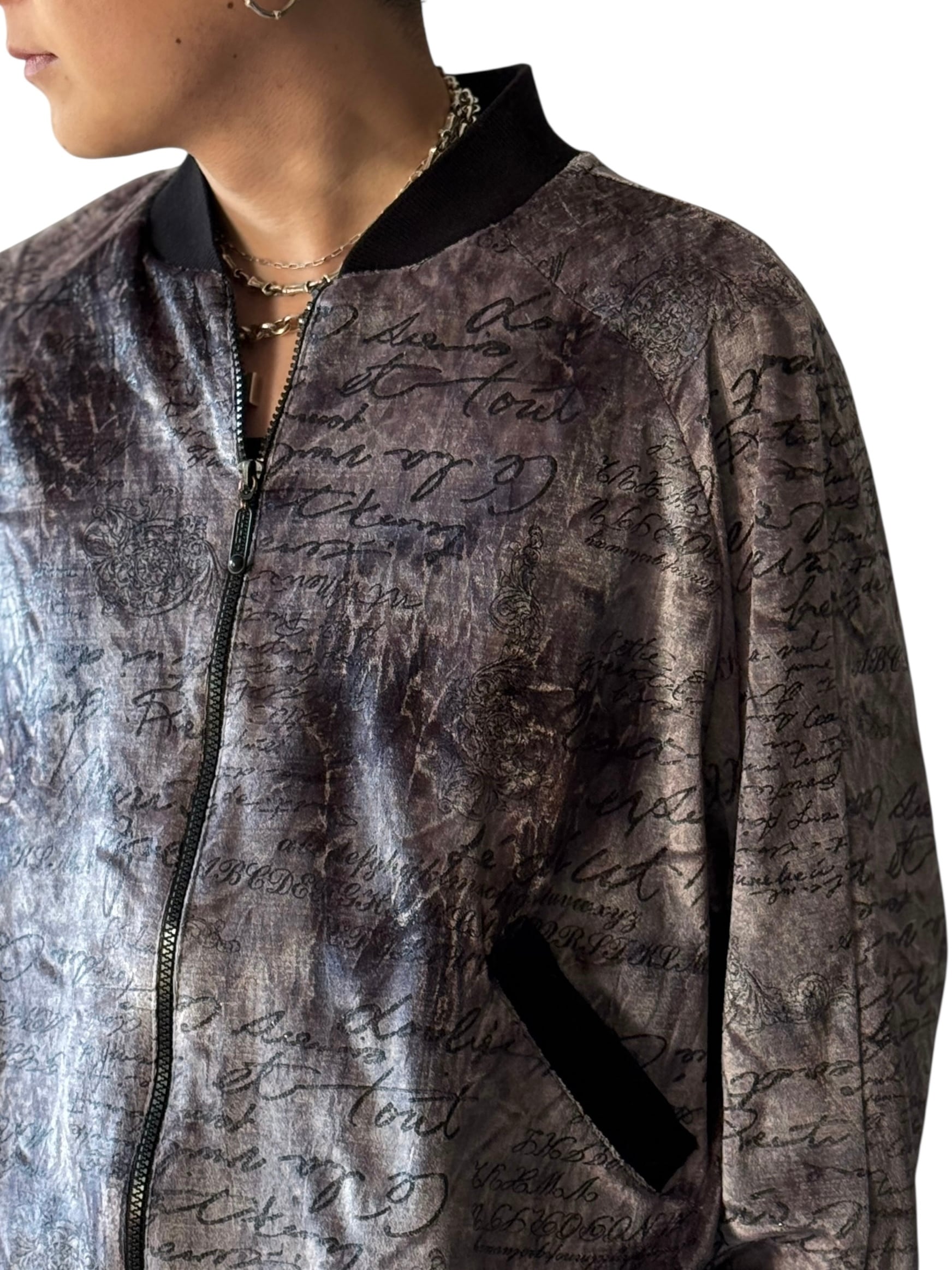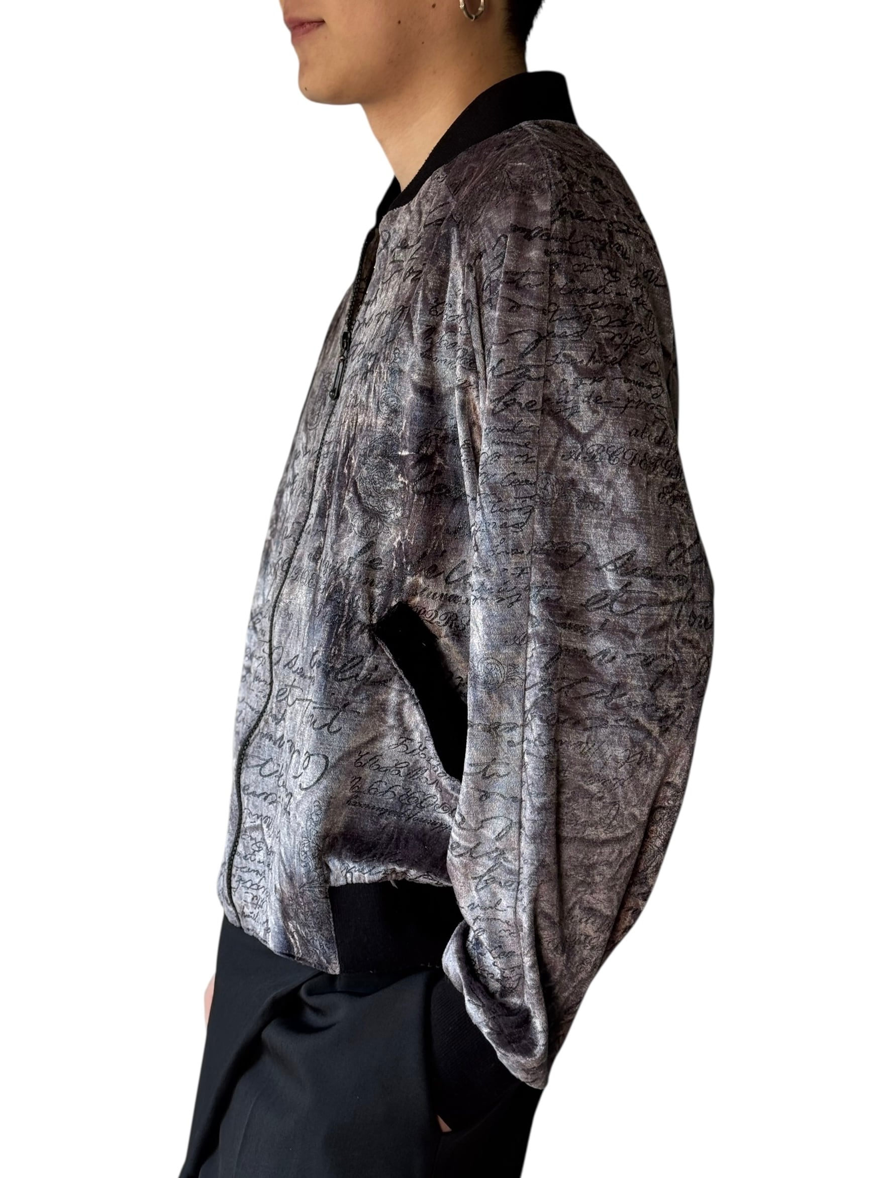 【MADE in U.S.A.】Calligraphy graphic pattern velvet short blouson