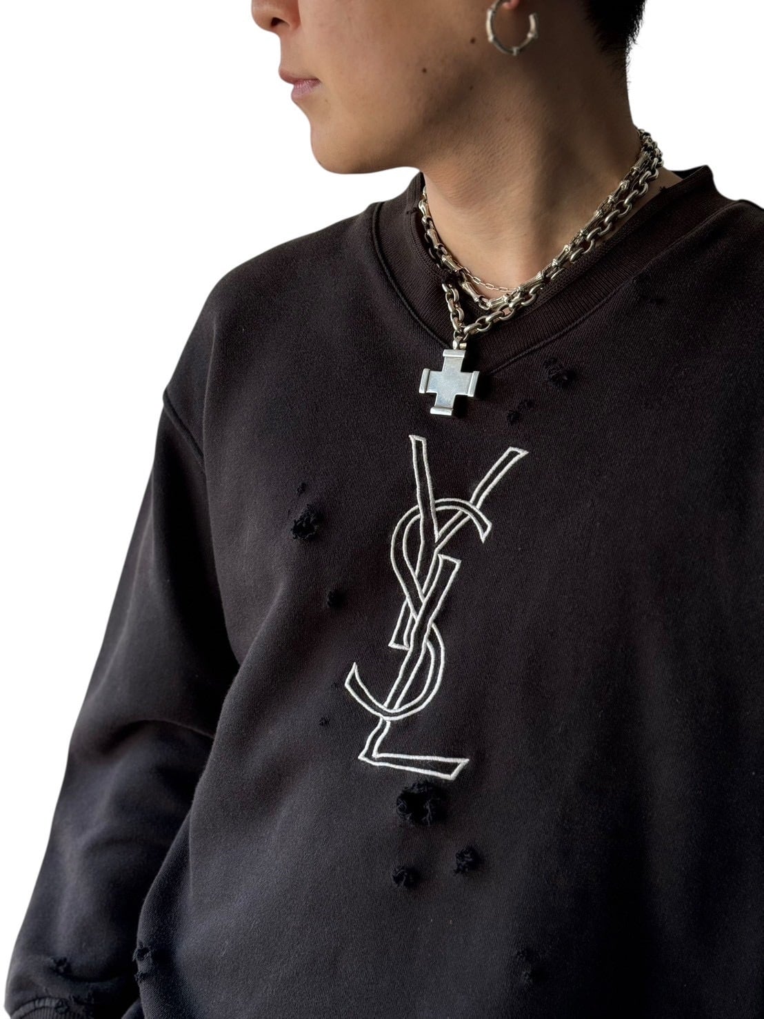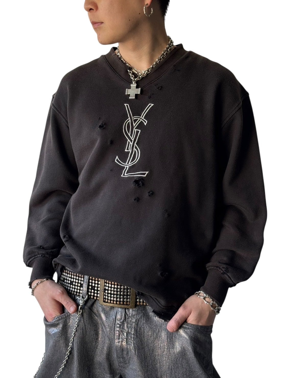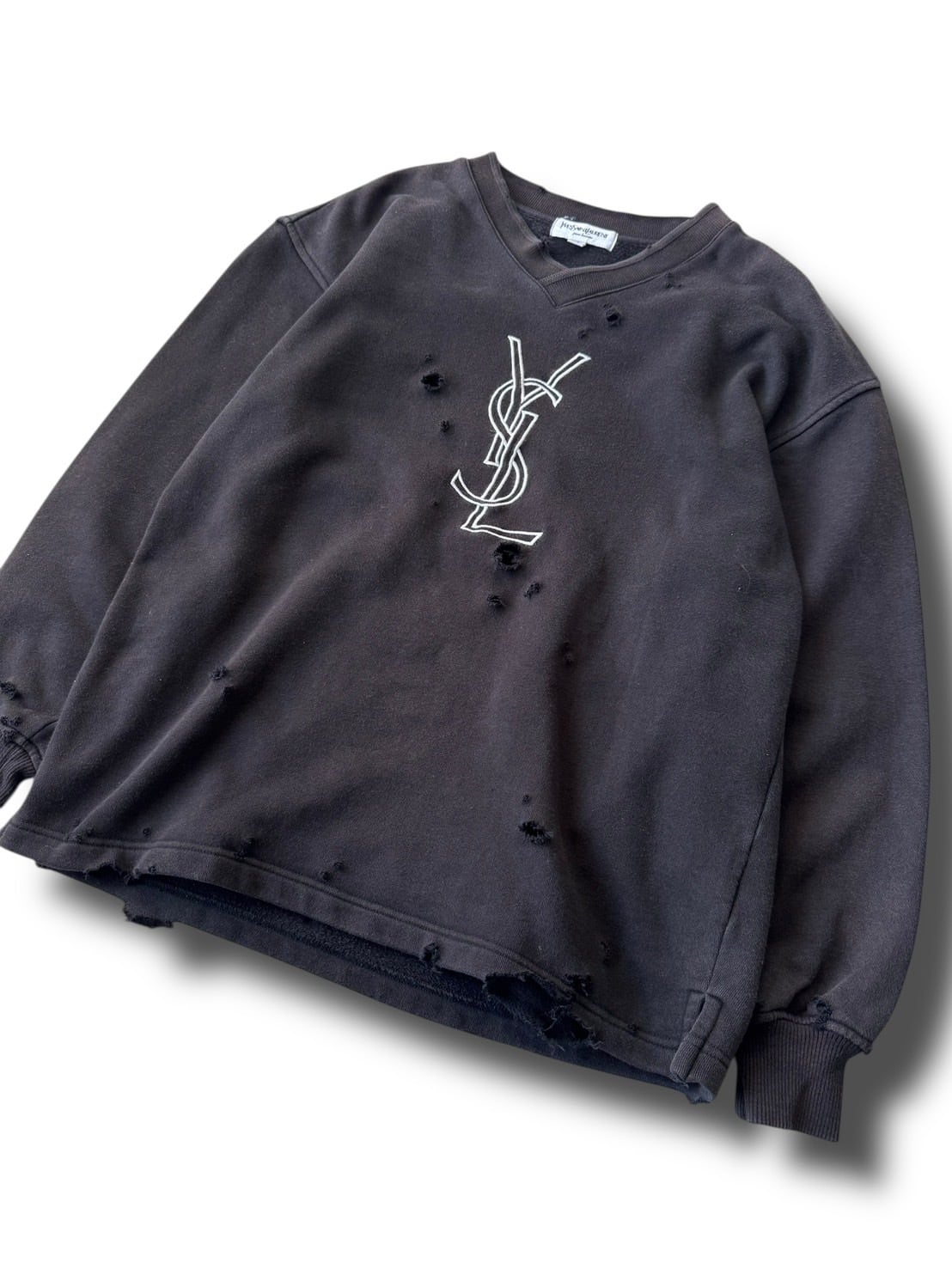 ♾YVES SAINT LAURENT♾ crash design "YSL" embroidered sweatshirt size XS