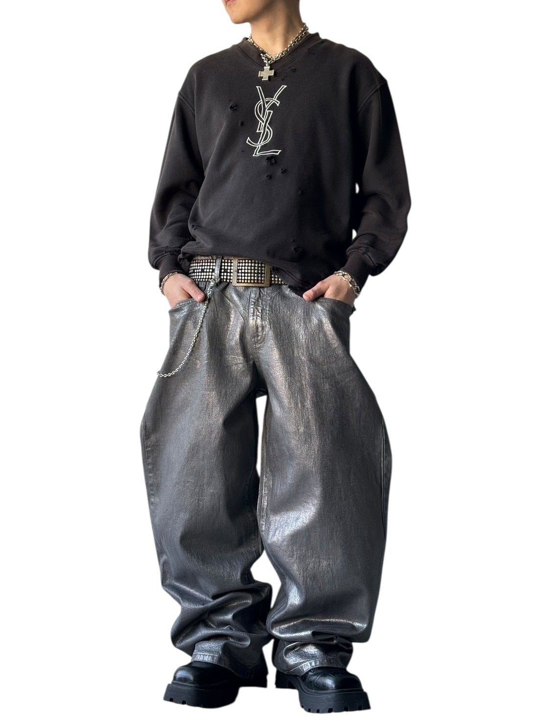 crash design "YSL" embroidered sweatshirt