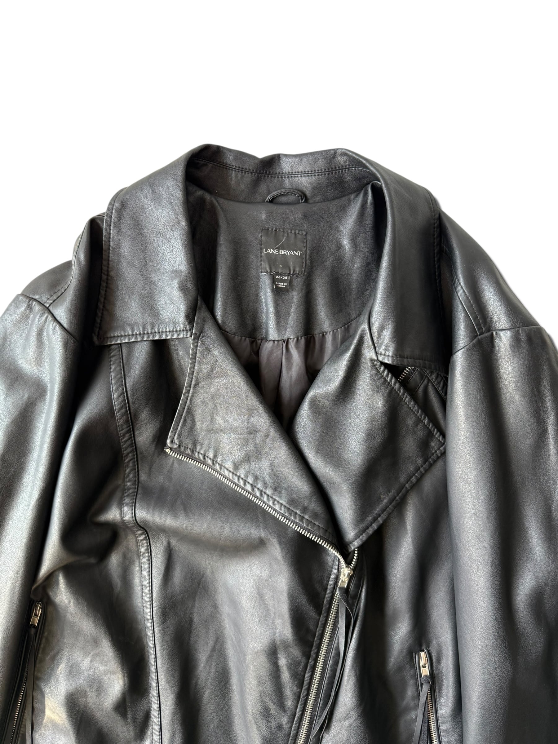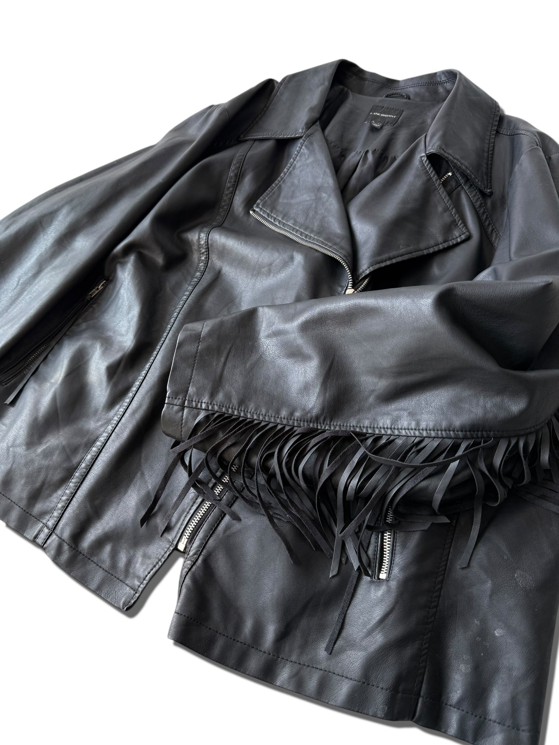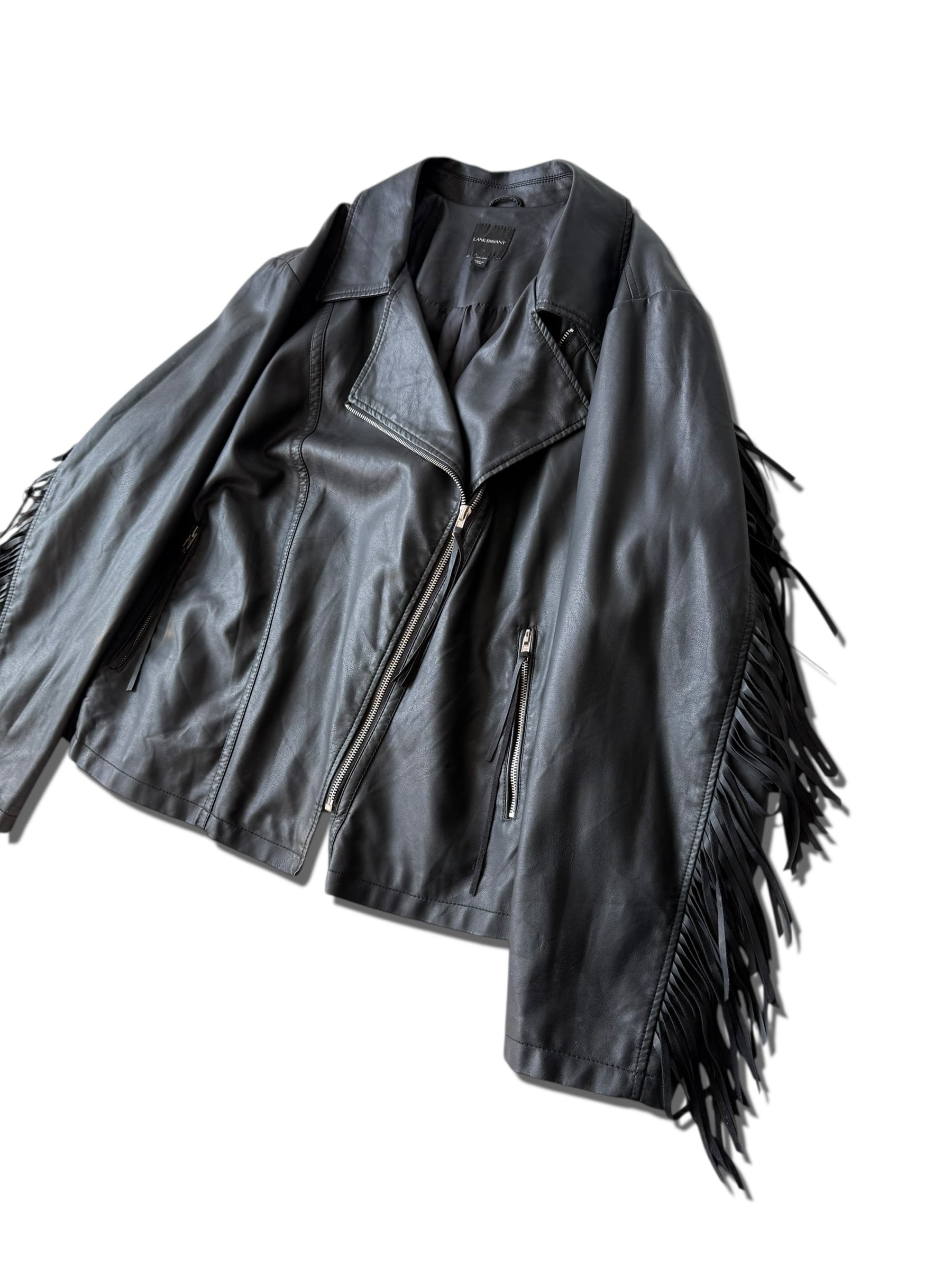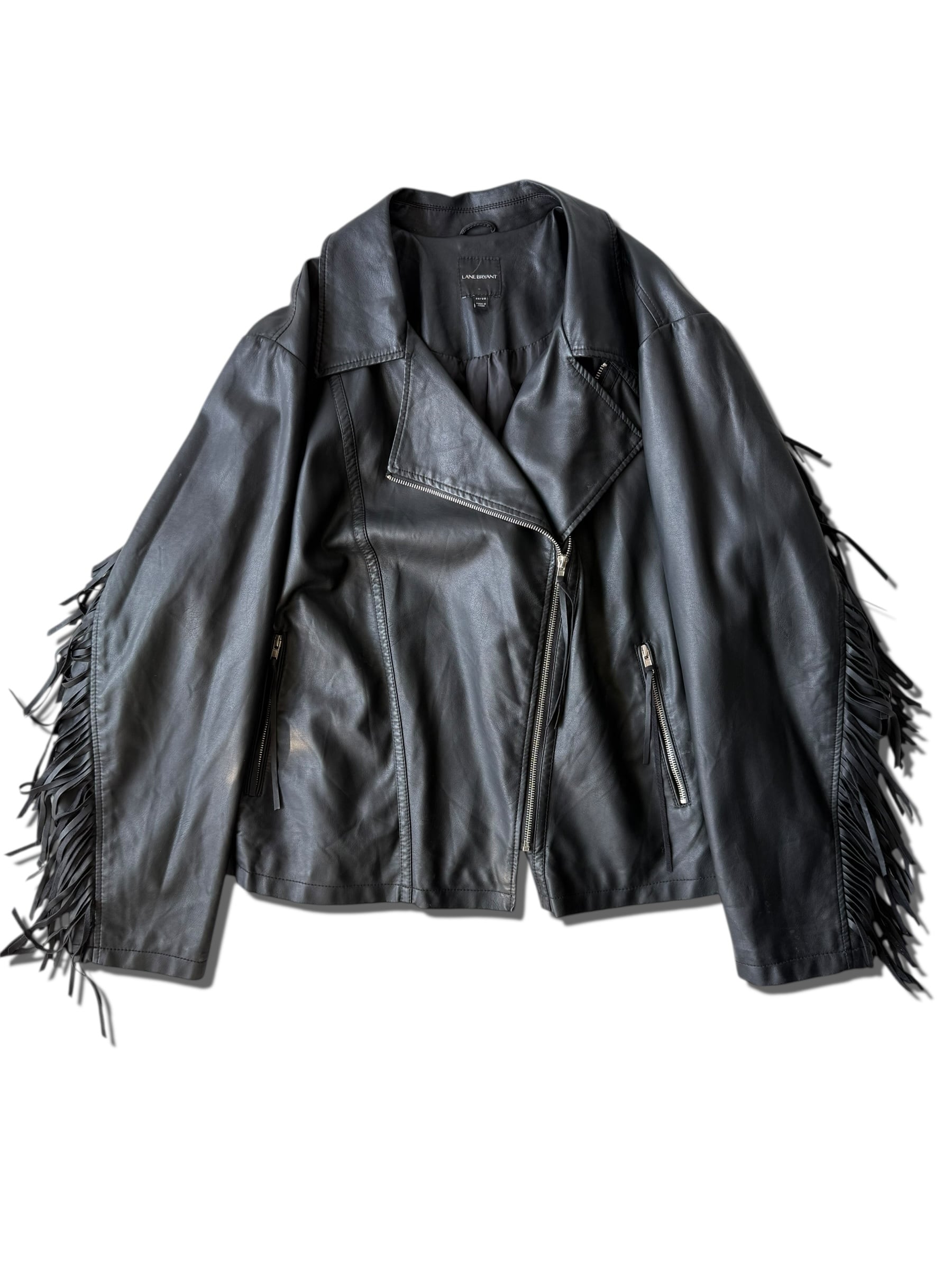 【LANE BRYANT】 Design fringed "PU LEATHER" Riders jacket