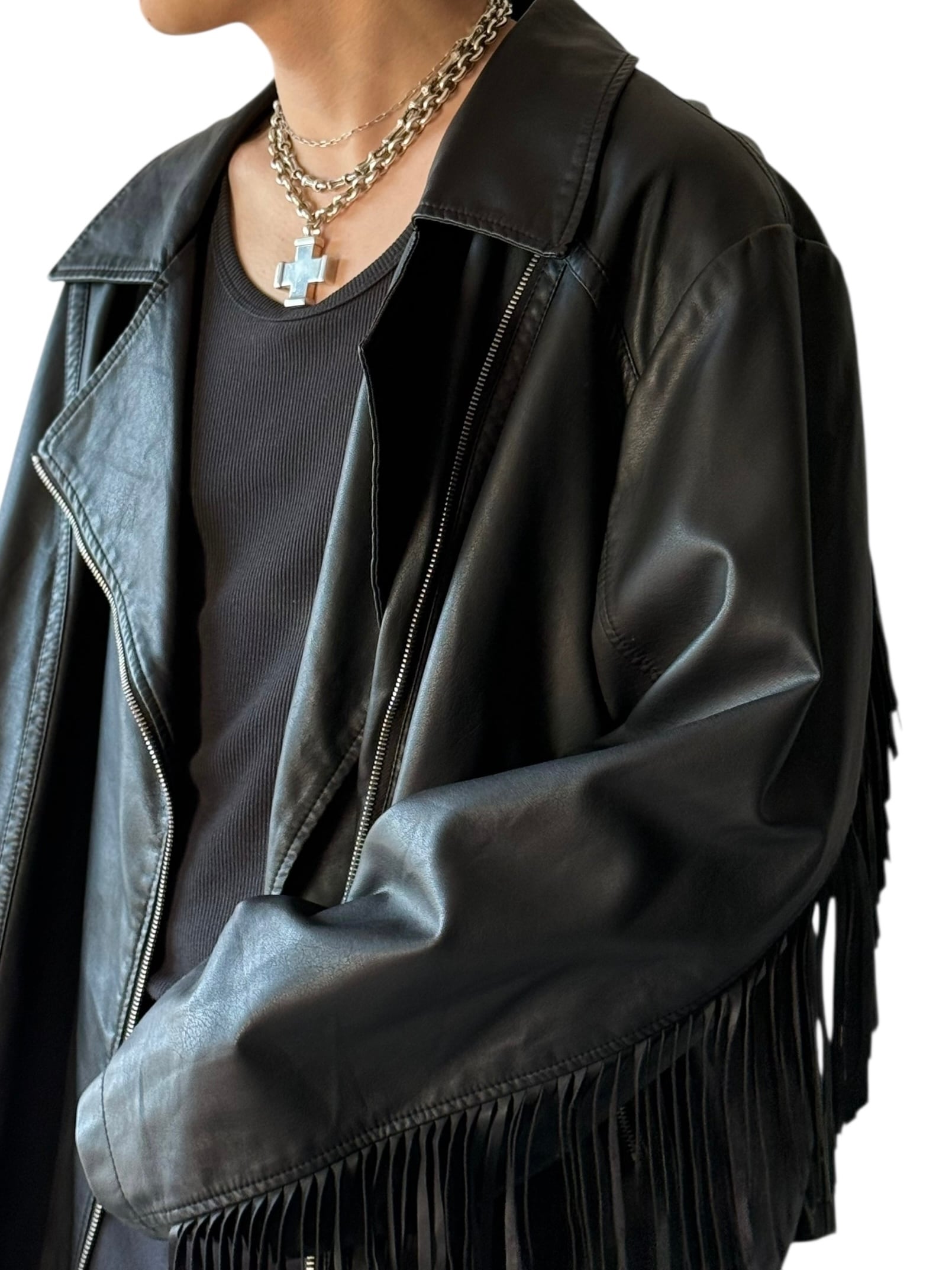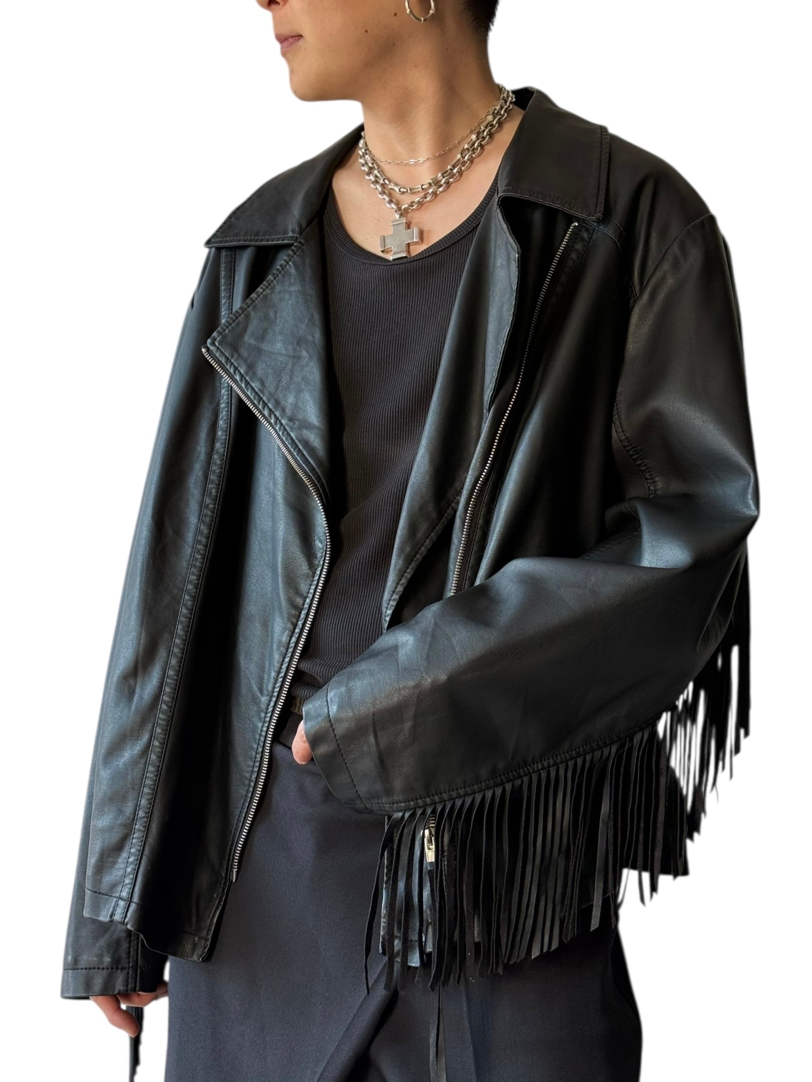 Design fringed "PU LEATHER" Riders jacket