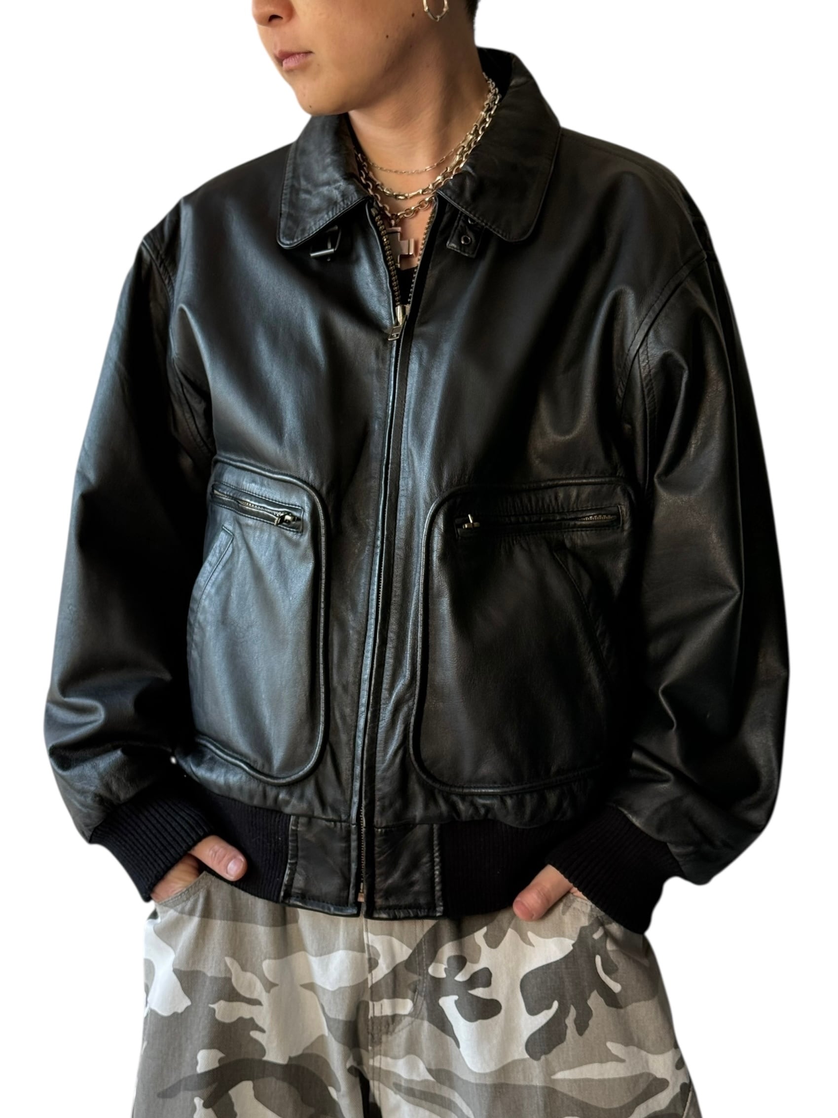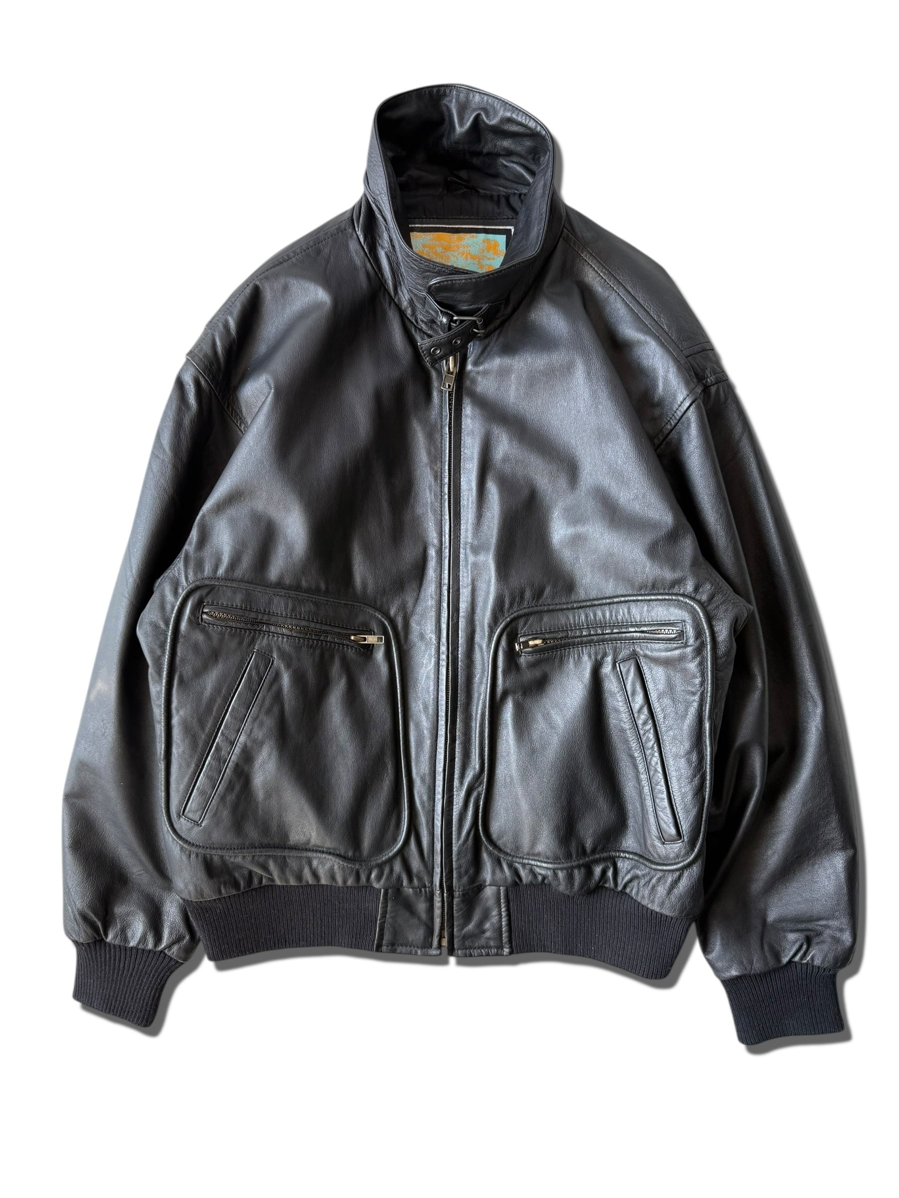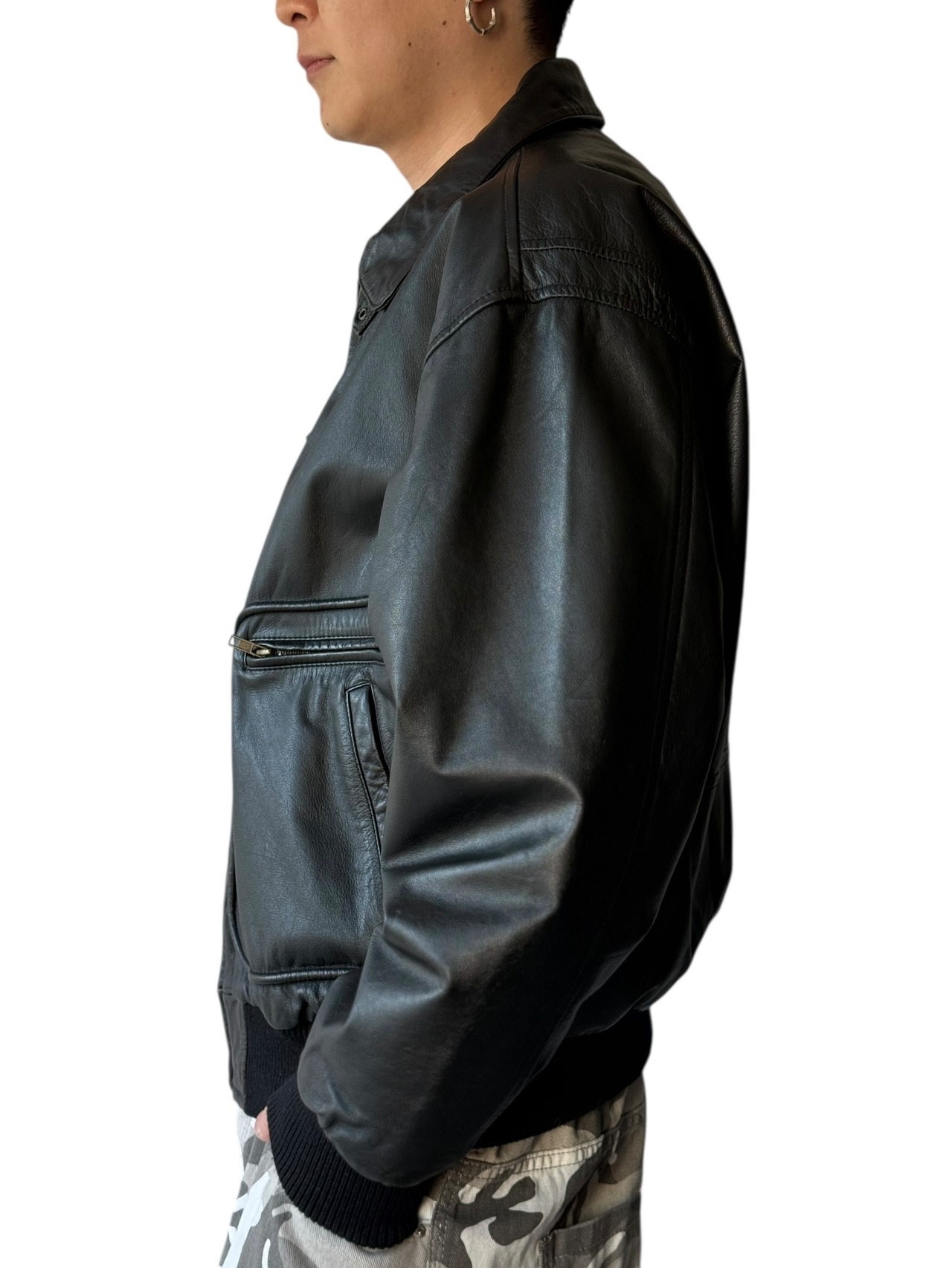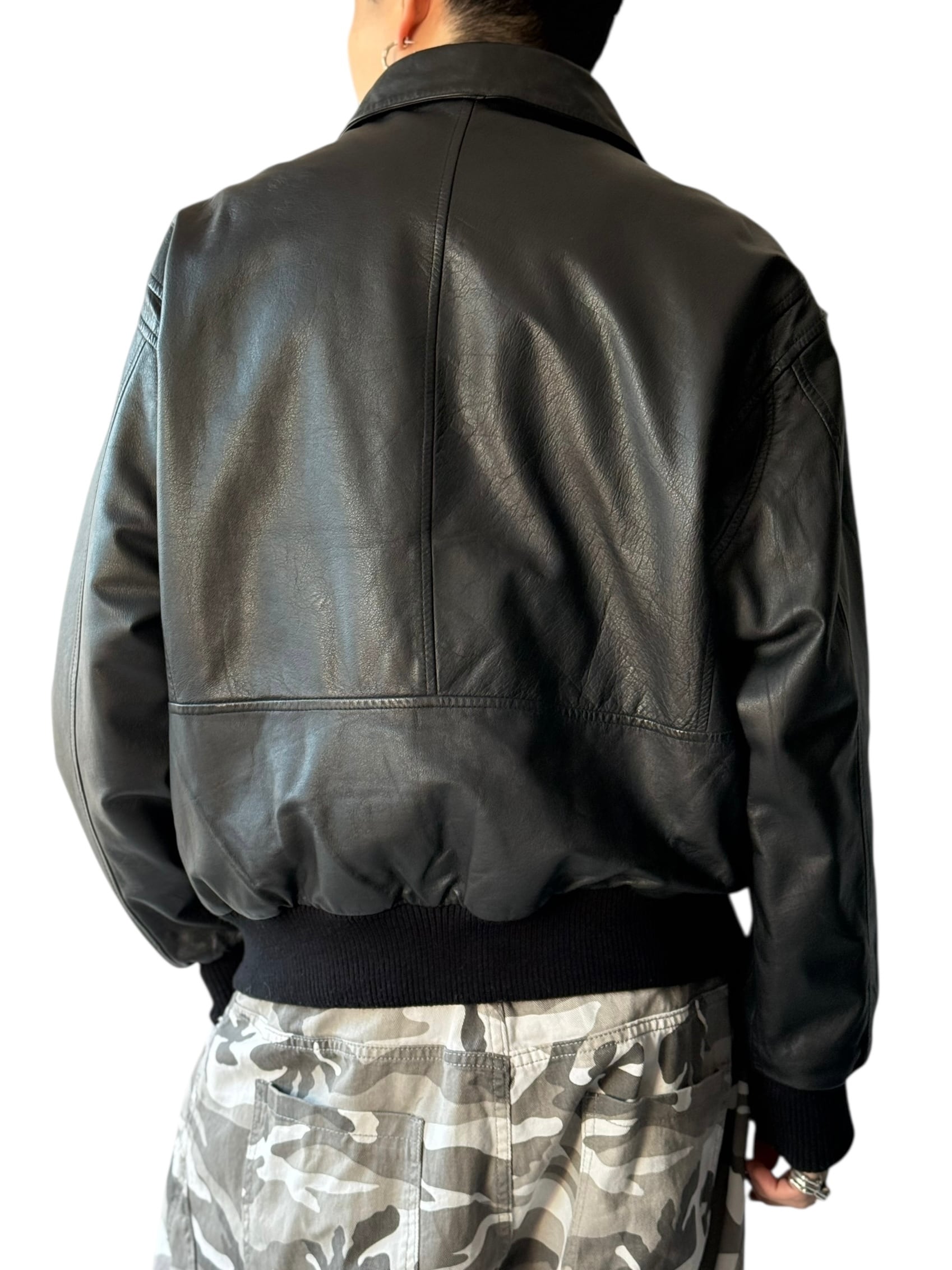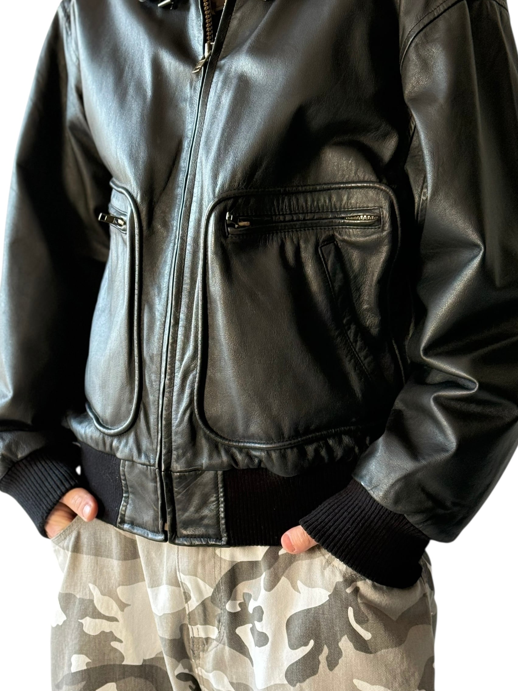 リアルフライトジャケットであるA-2デザイン現代的に着やすくサンプリングしたようなヴィンテージのブラックレザージャケット✨