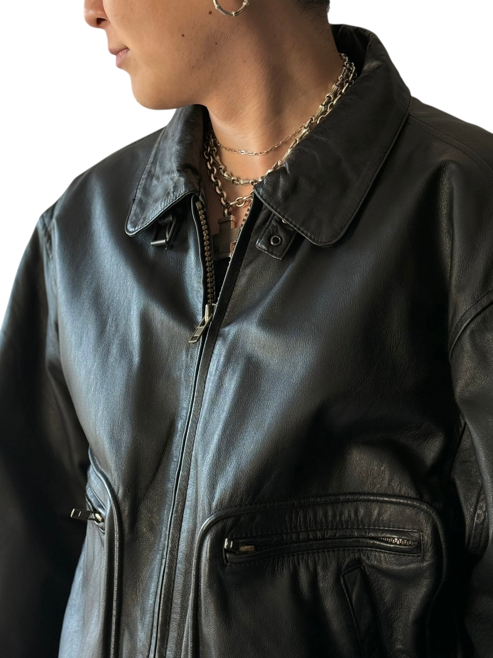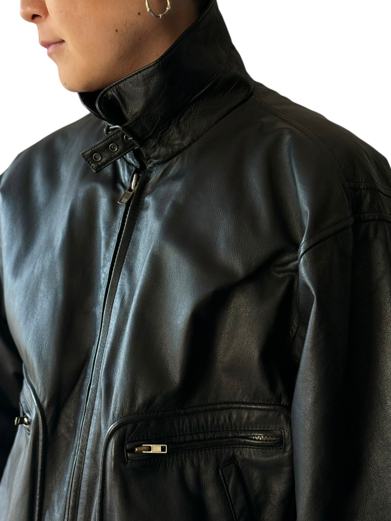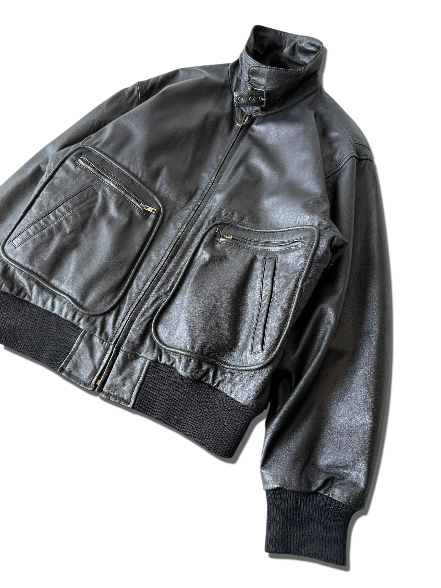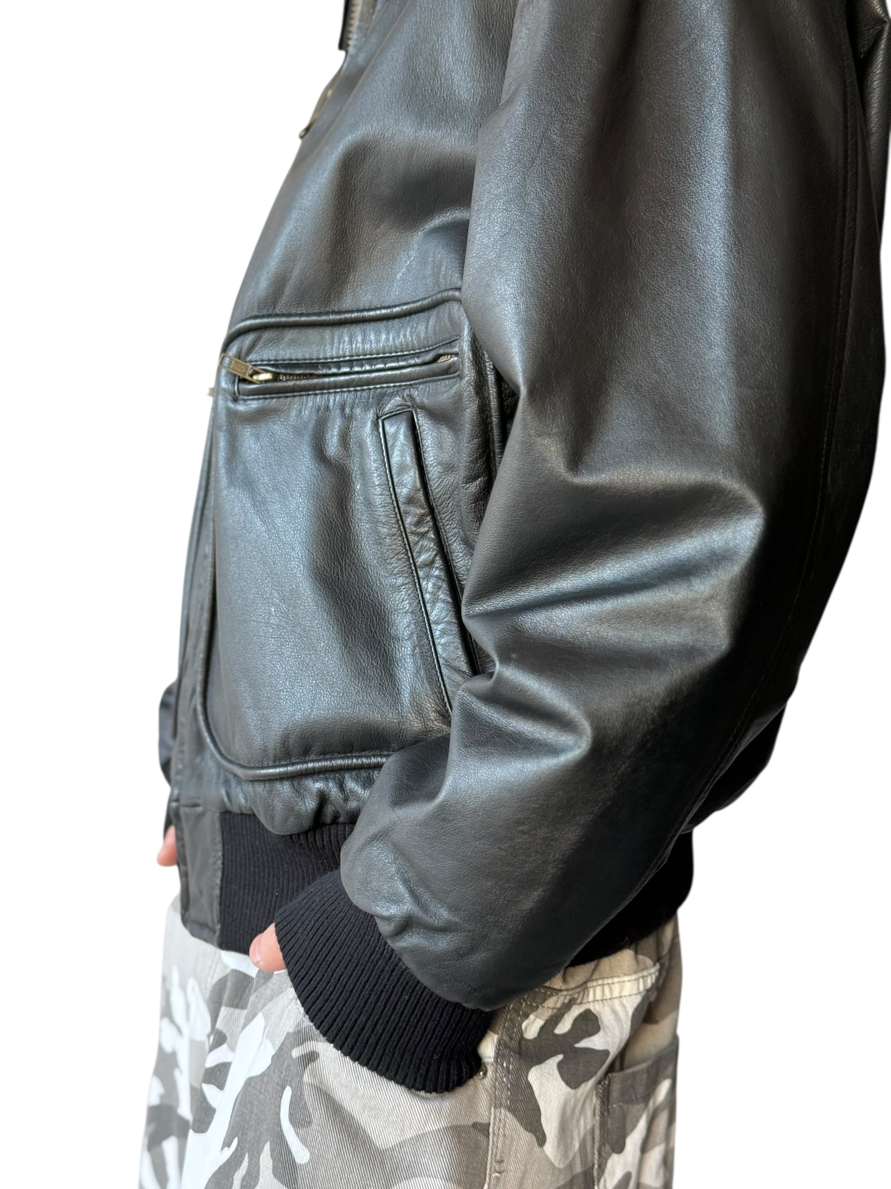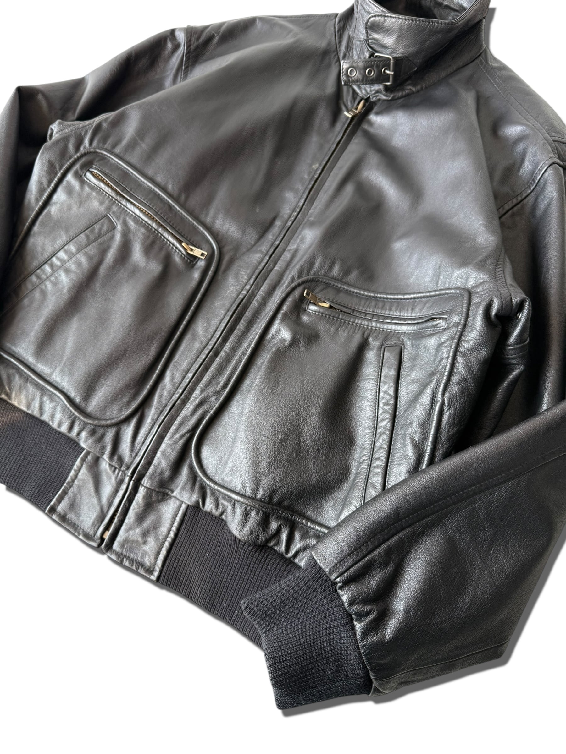 リアルフライトジャケットであるA-2デザイン現代的に着やすくサンプリングしたようなヴィンテージのブラックレザージャケット✨