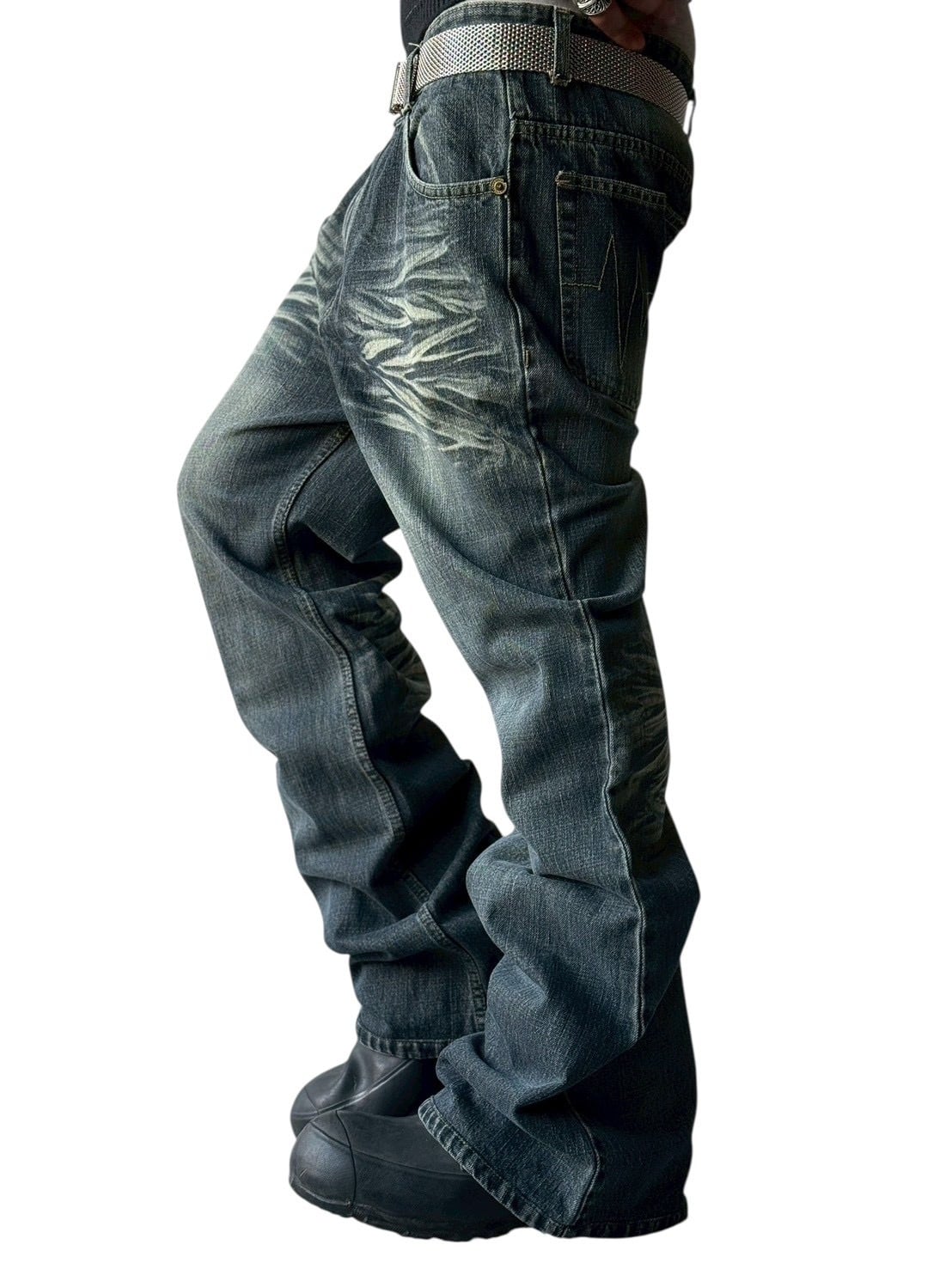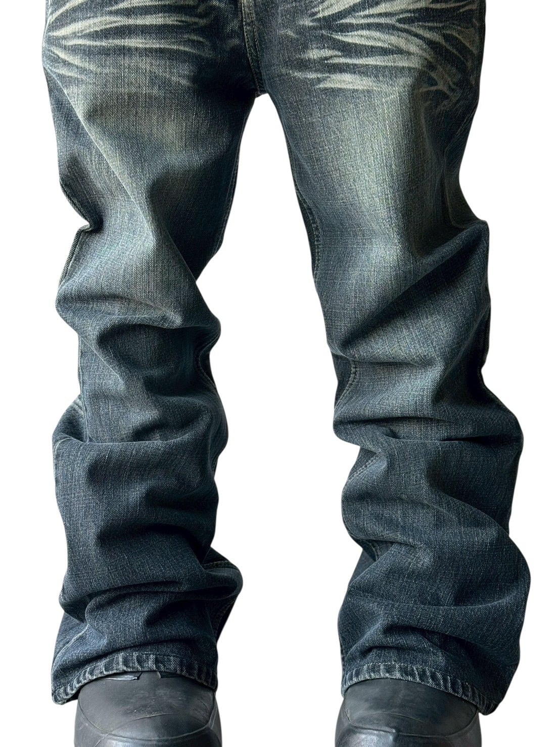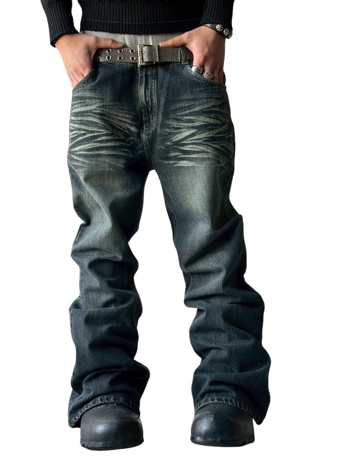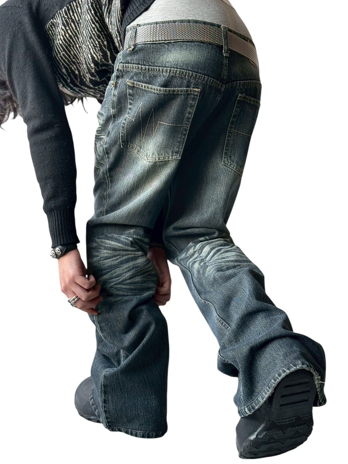 ♾️Teakwood ♾️ Washed claw-marked dark blue flared pants