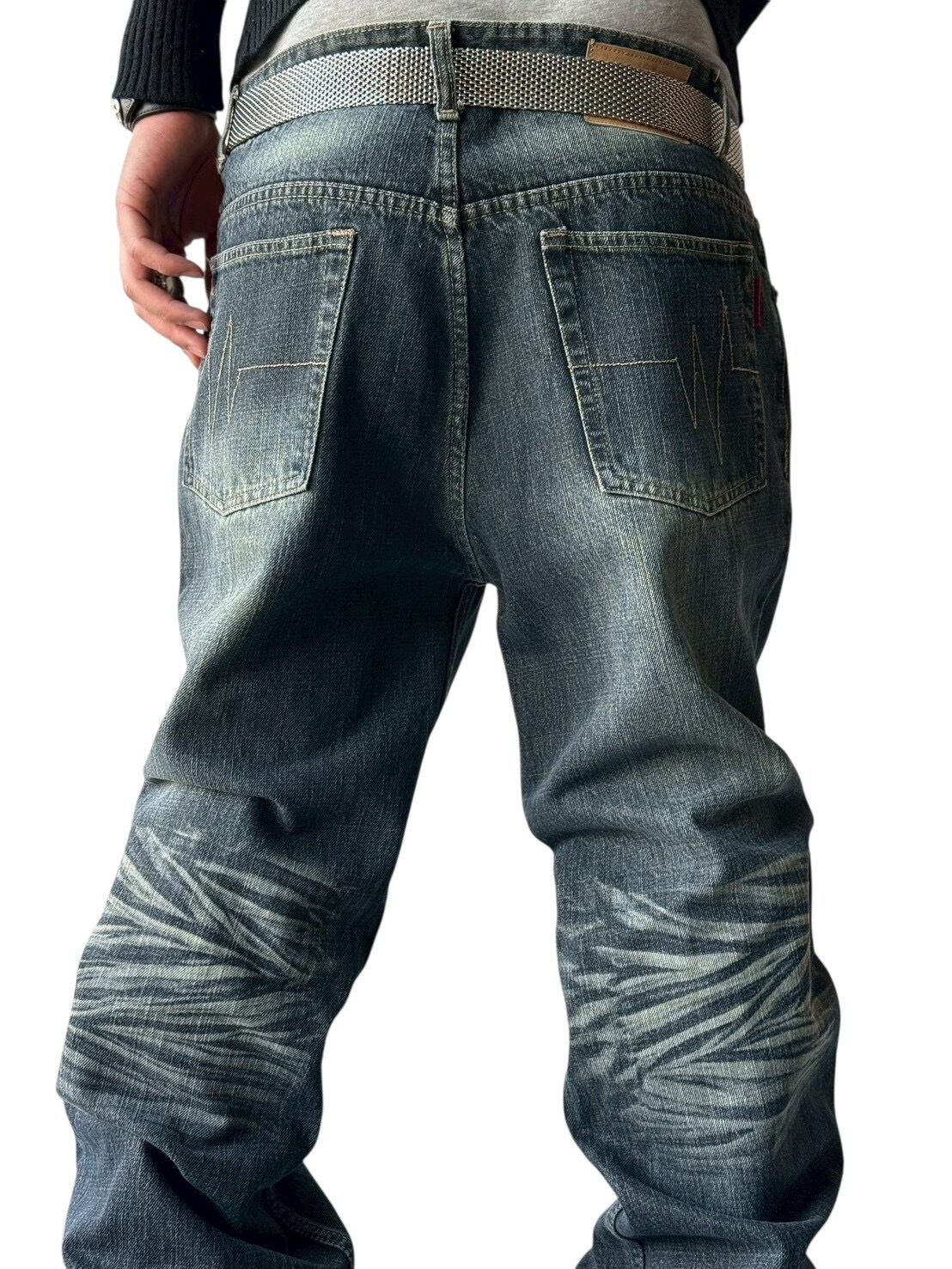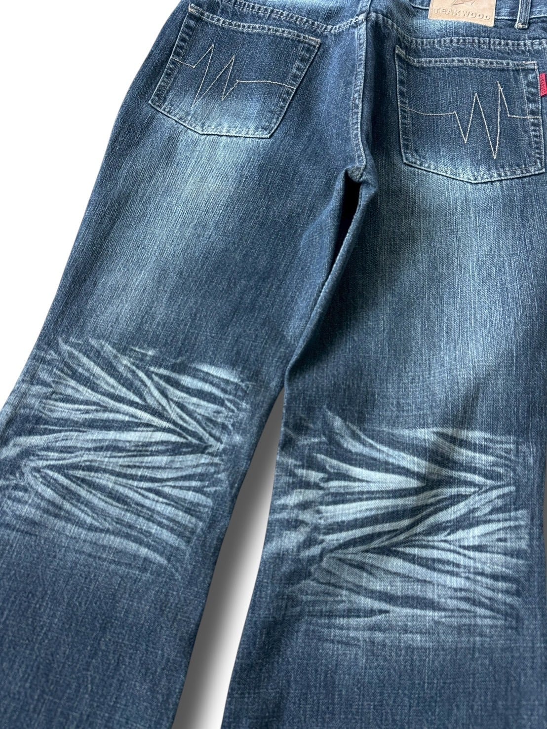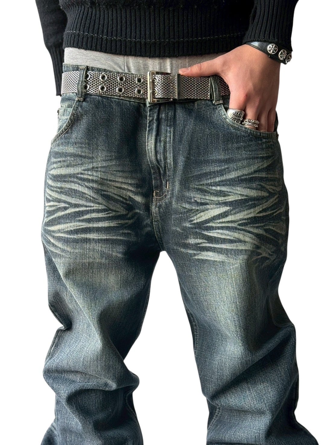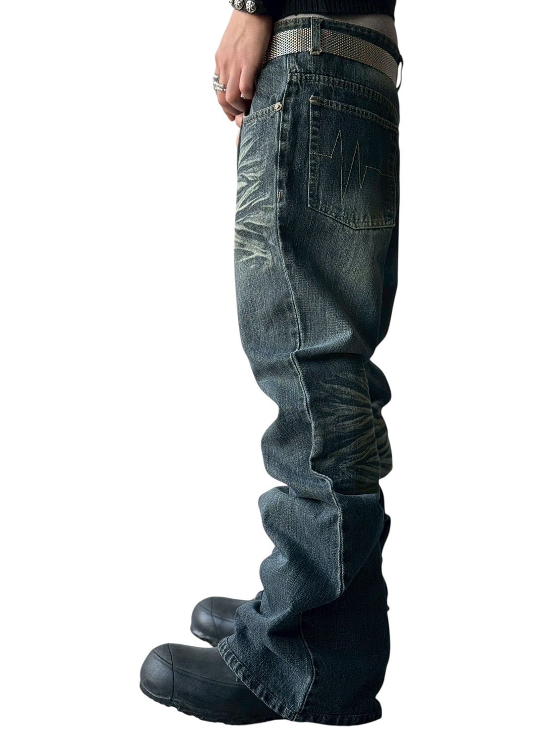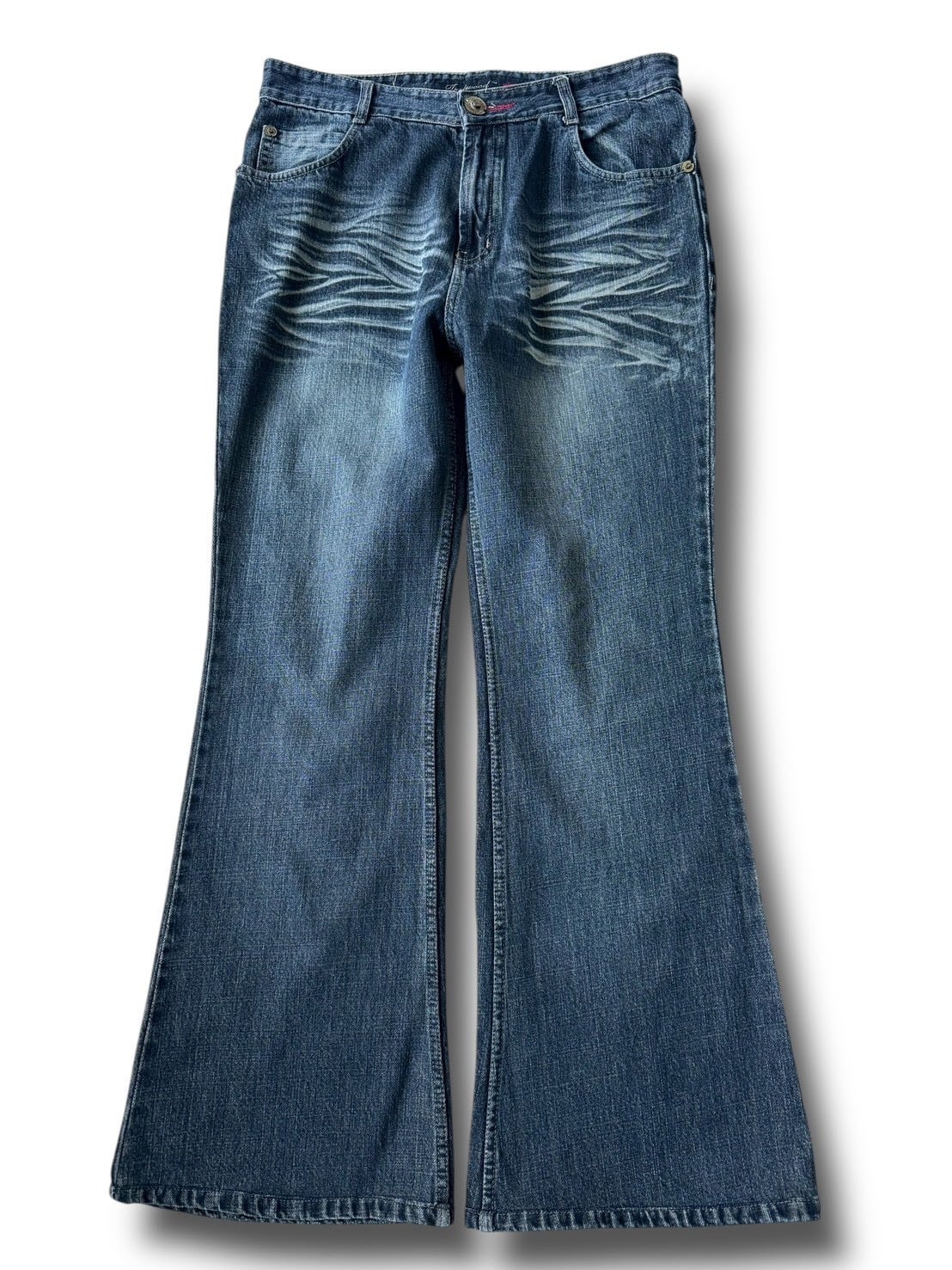 ♾️Teakwood ♾️ Washed claw-marked dark blue flared pants