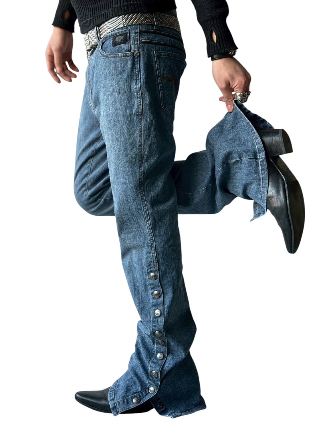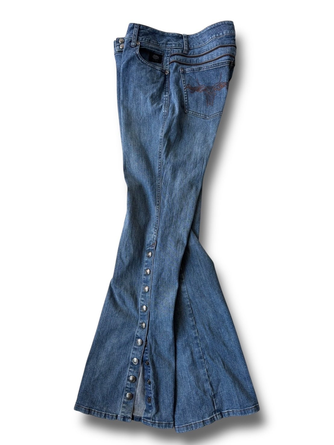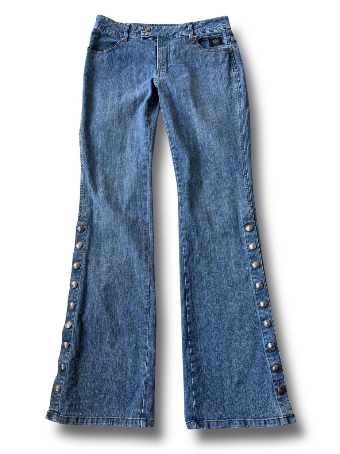 ♾Harley-Davidson♾ Side snap flare silhouette denim pants