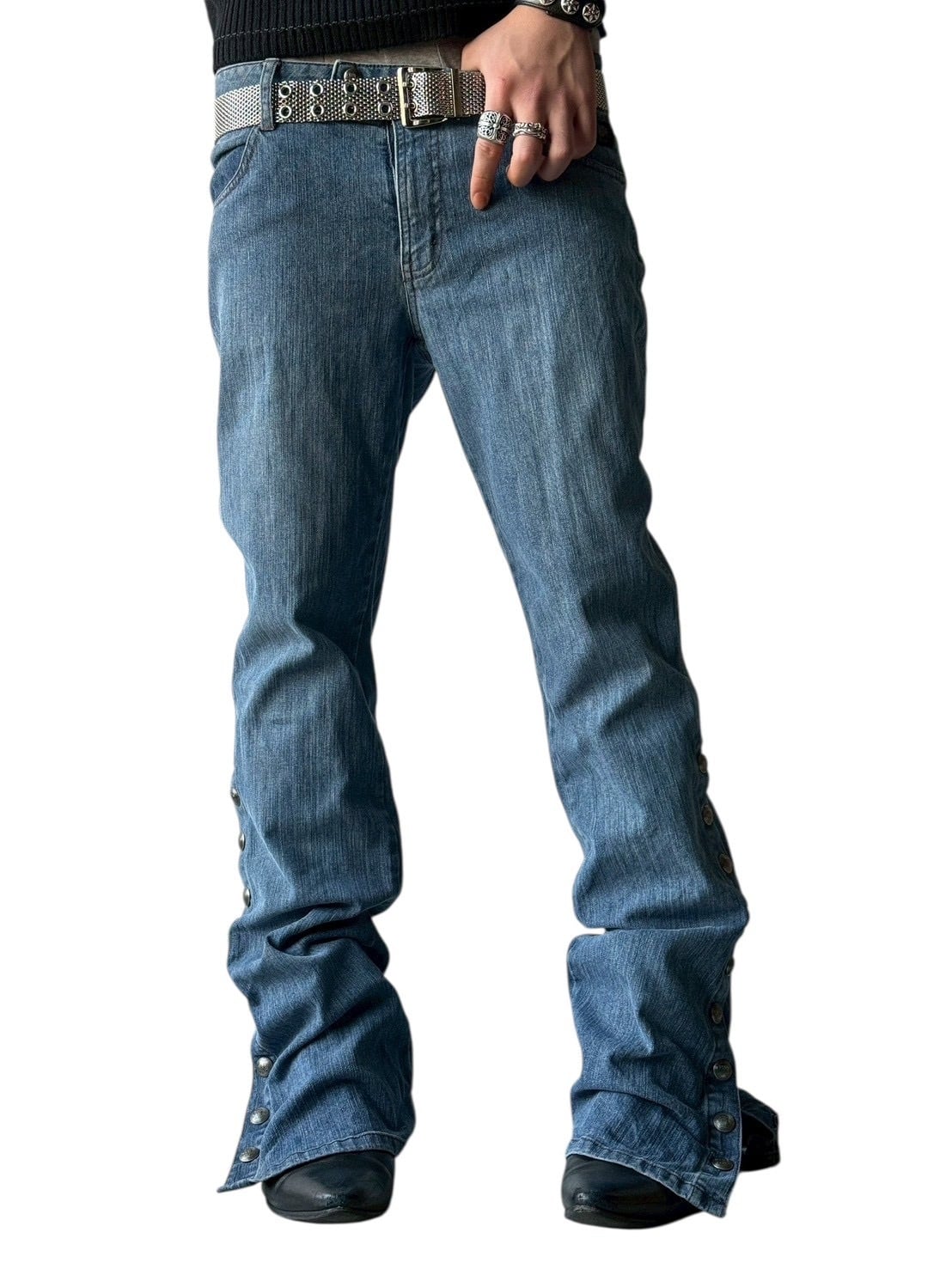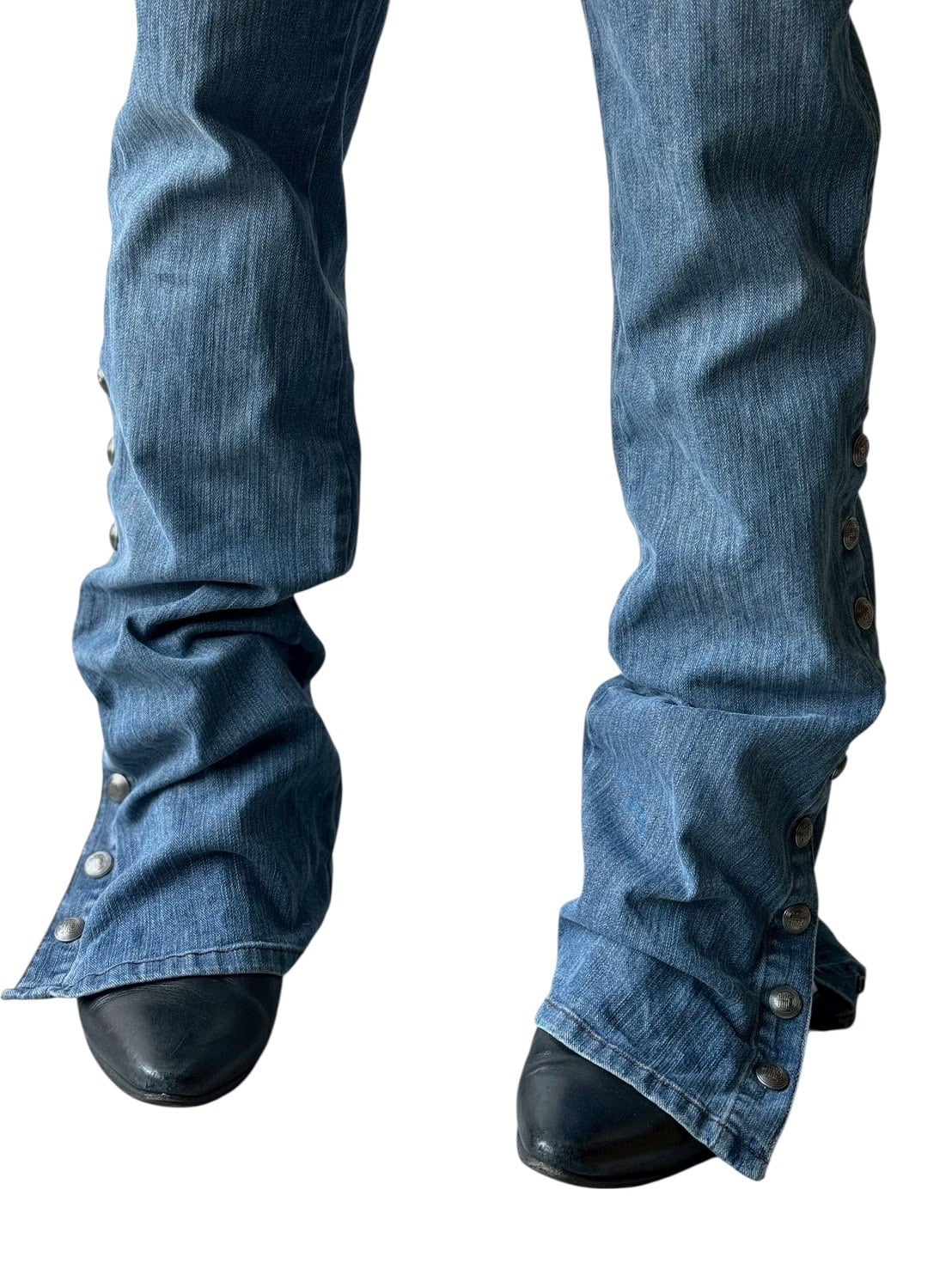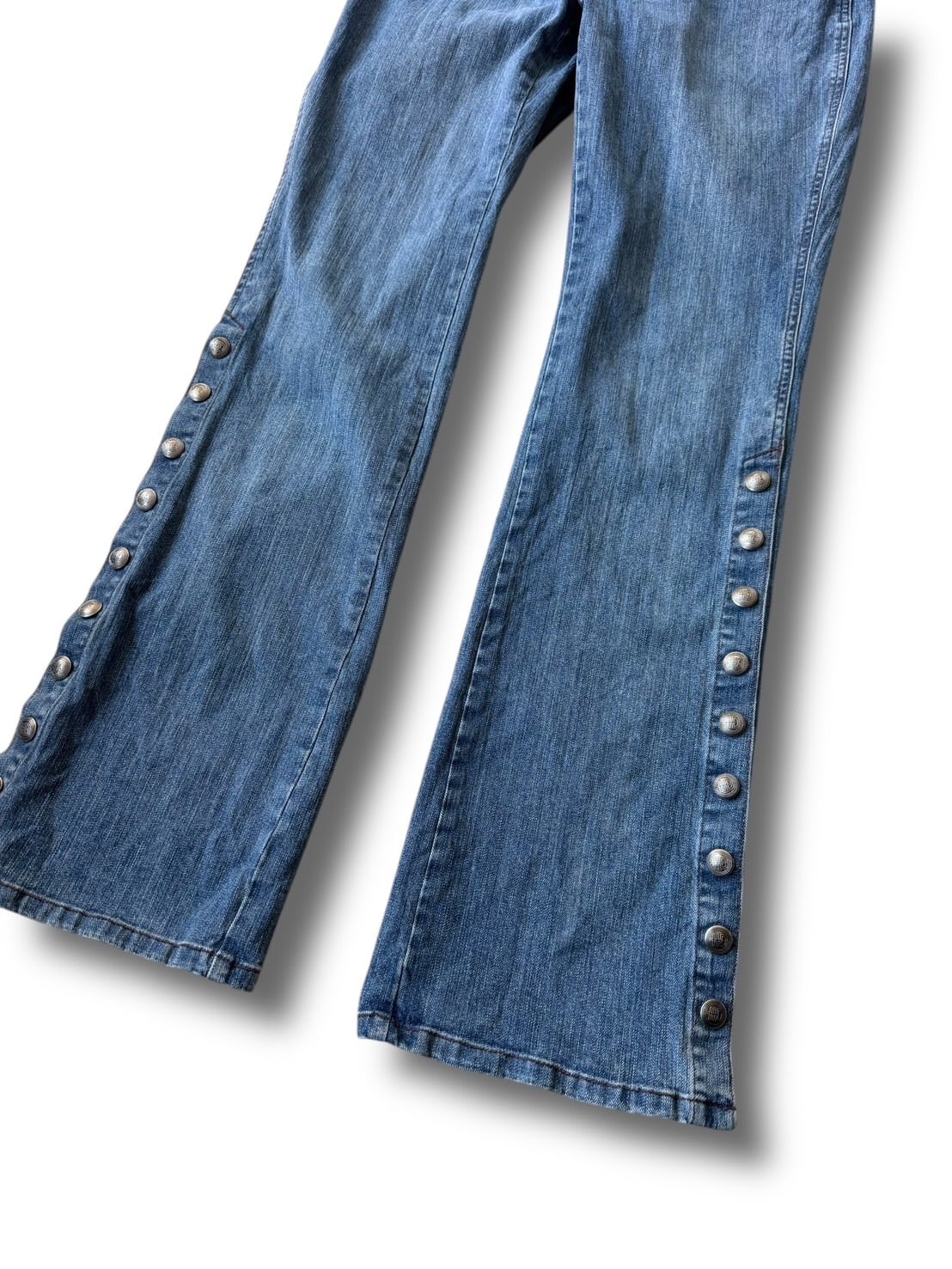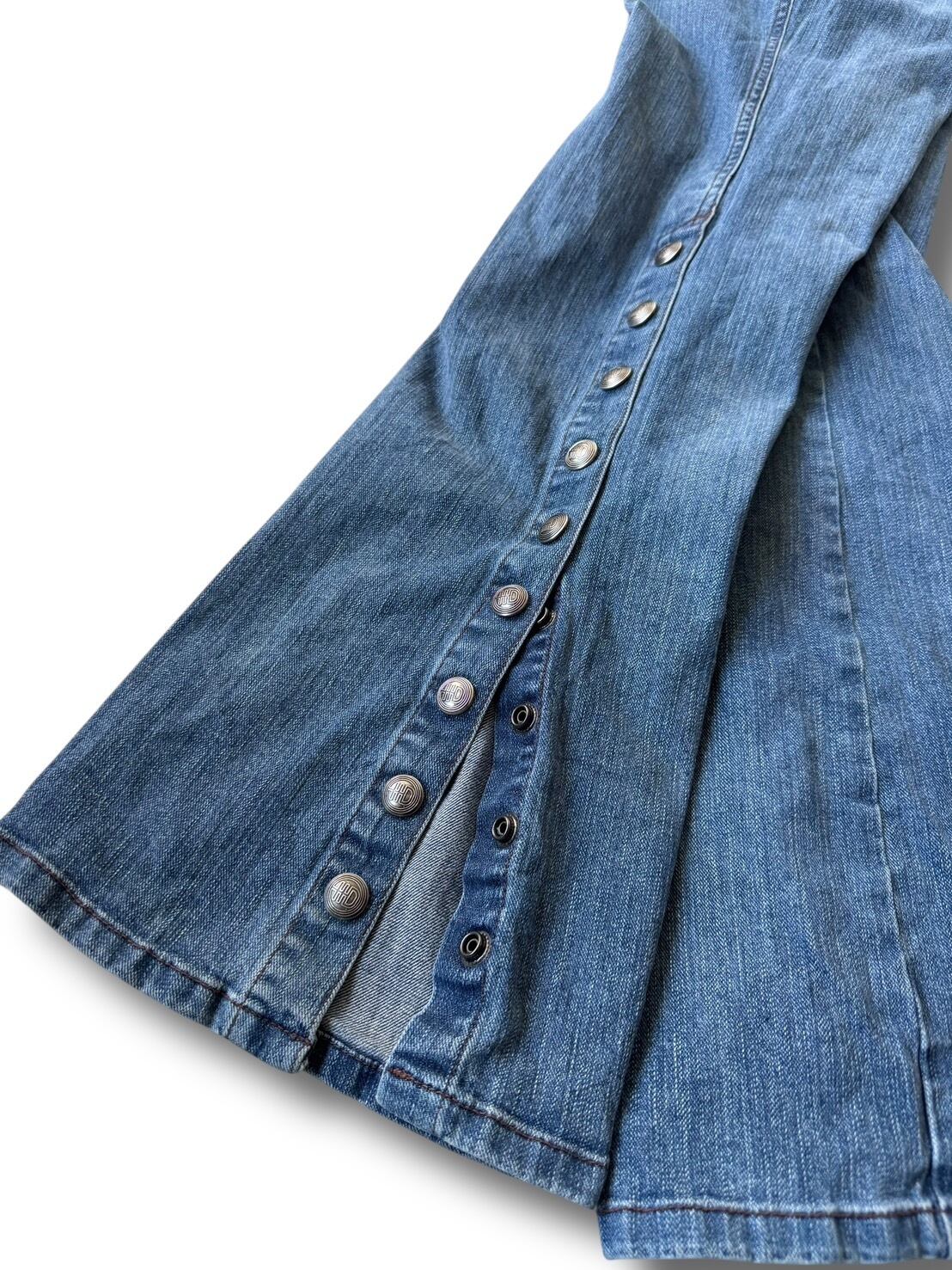 Side snap flare silhouette denim pants