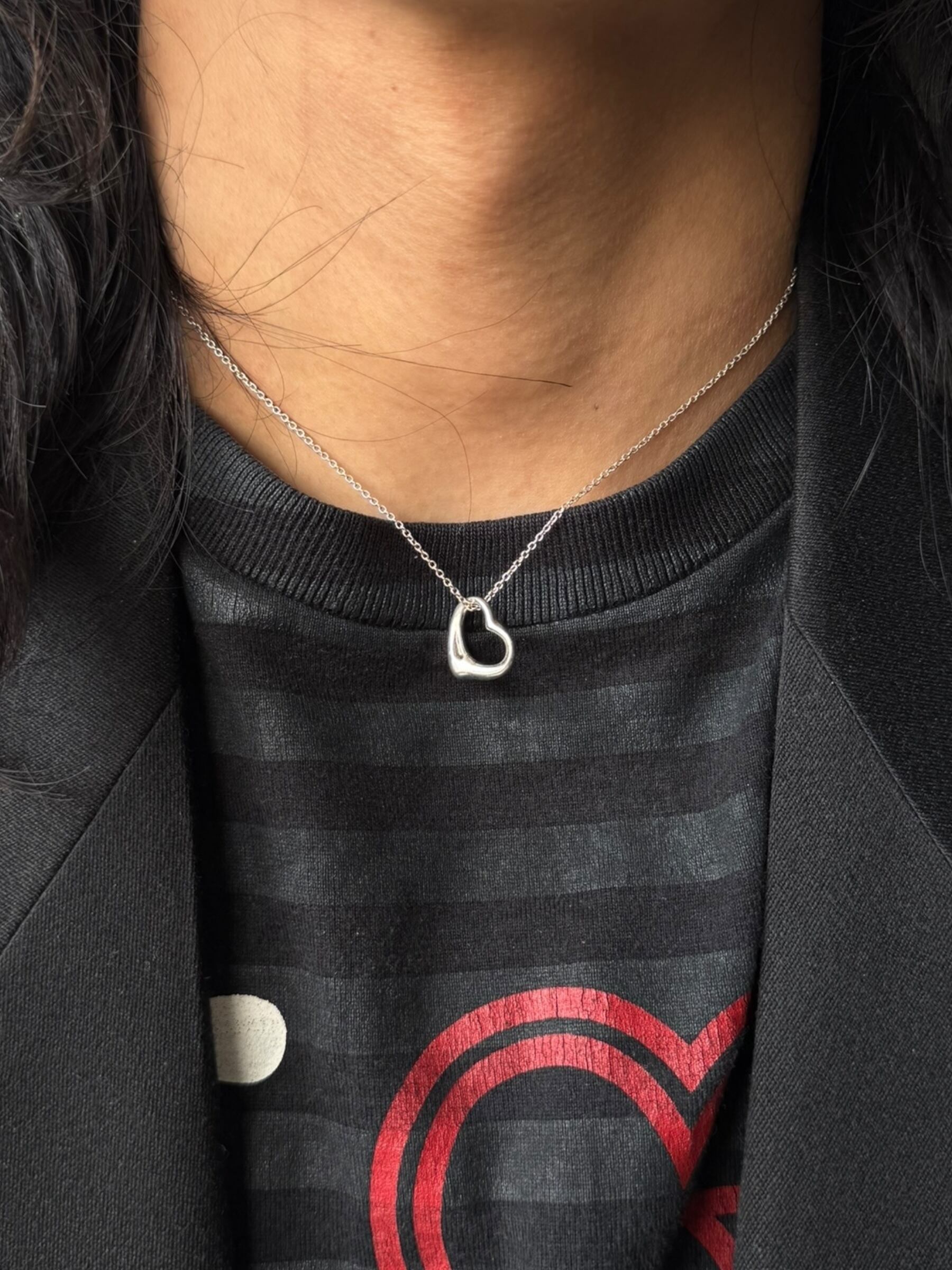 ぷっくりとした流線的なハートモチーフのデザインが可愛らしいシルバーネックレス✨️