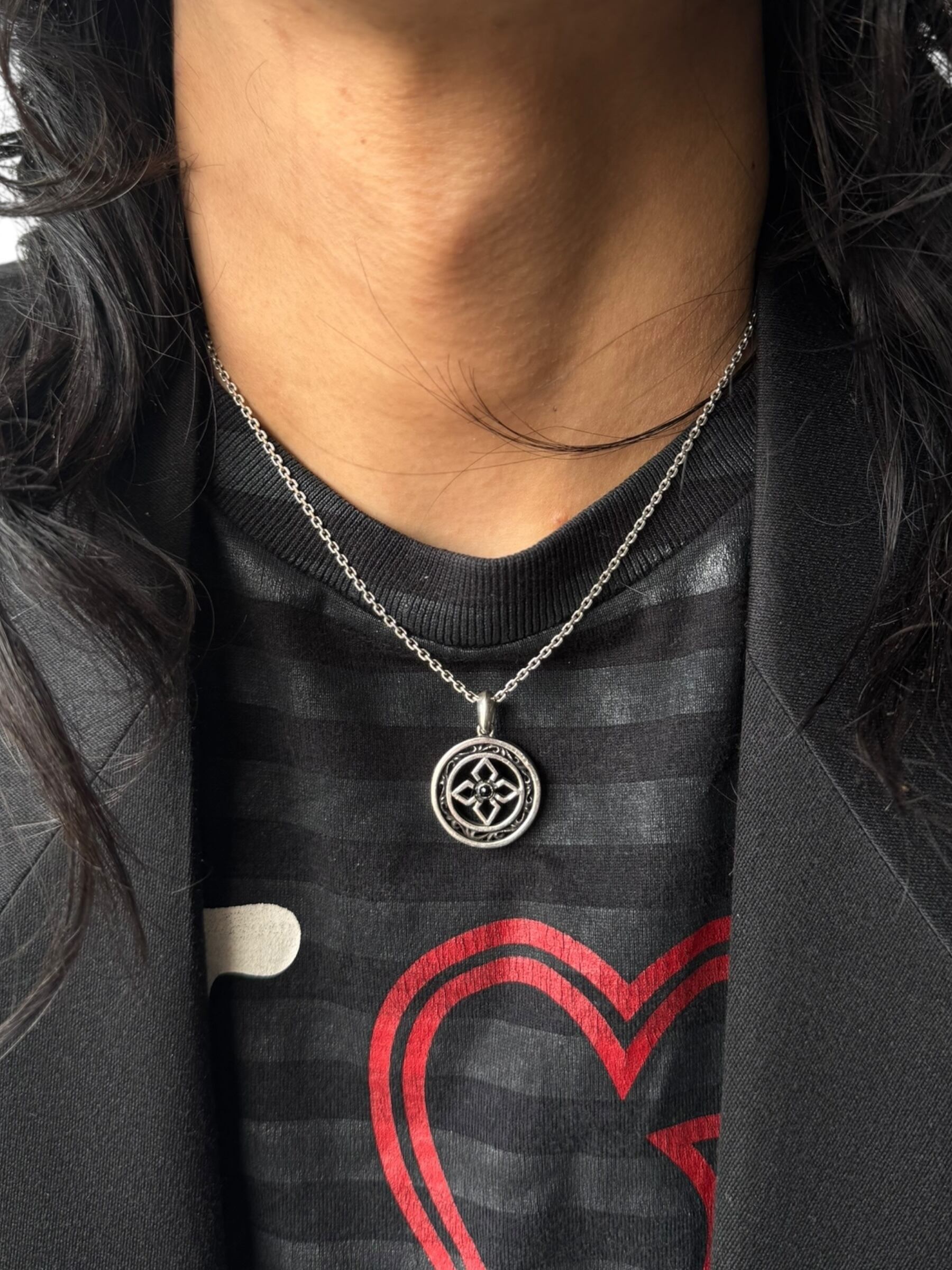 円の中心にクロスのモチーフがクールなデザインシルバーネックレス✨️
