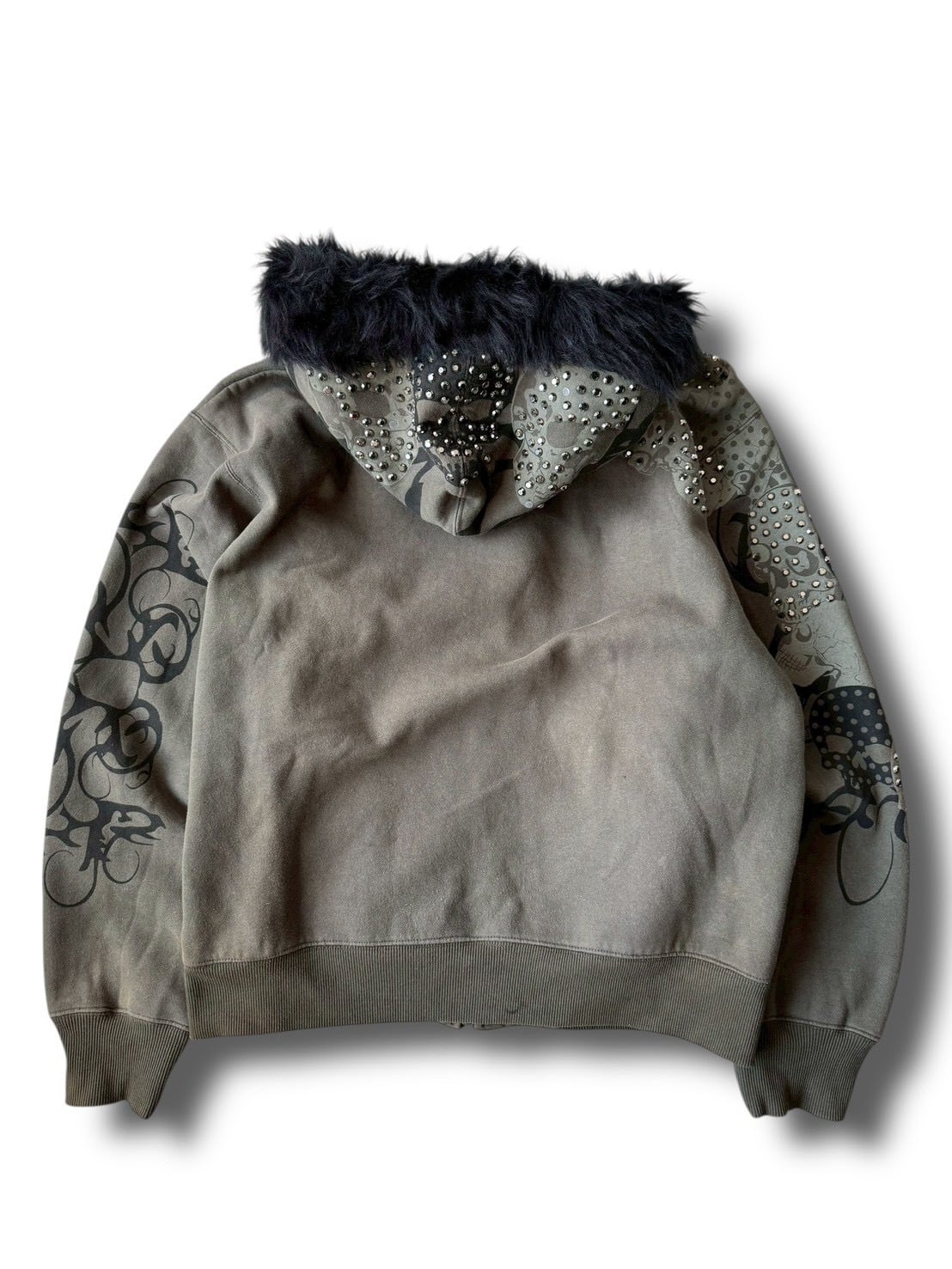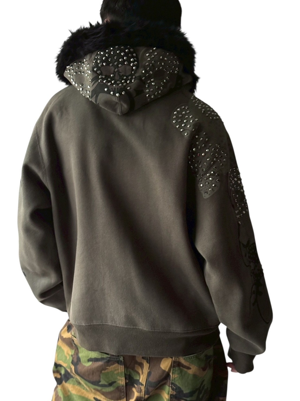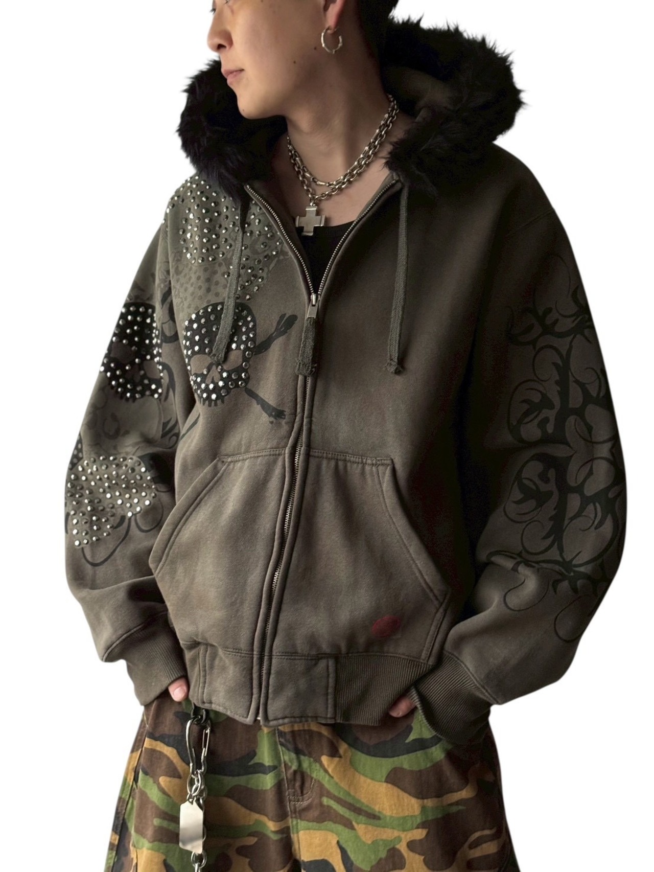 スカルモチーフにギラッギラなラインストーンが目を引くデザインジップアップフーディーの入荷‼️
