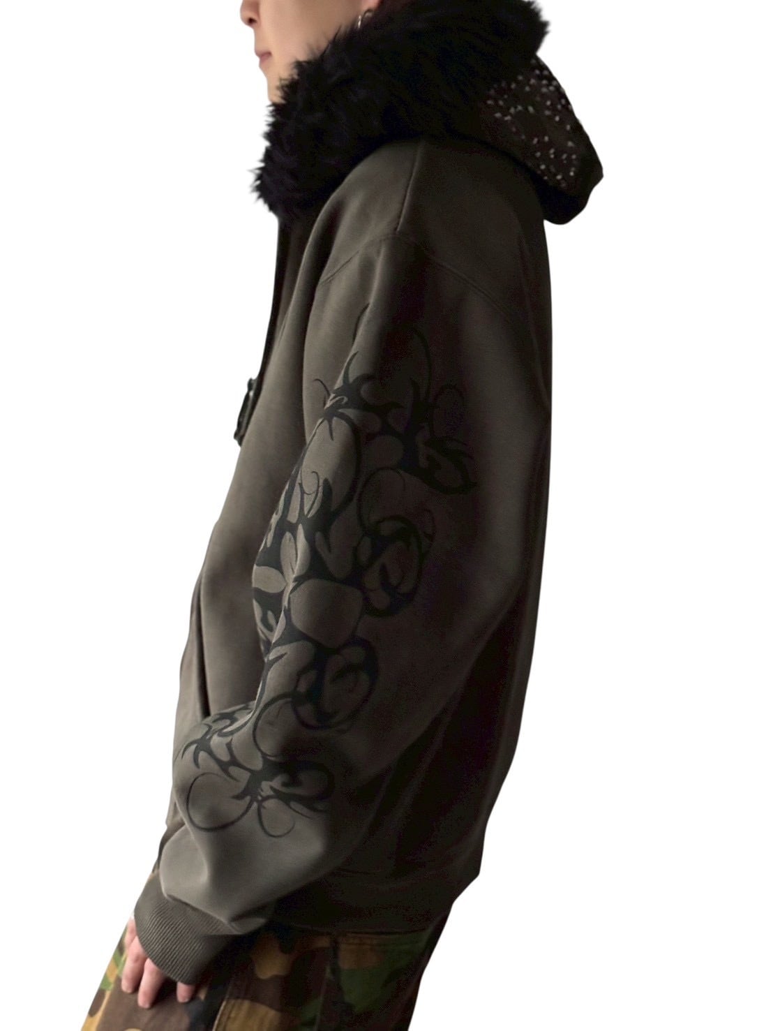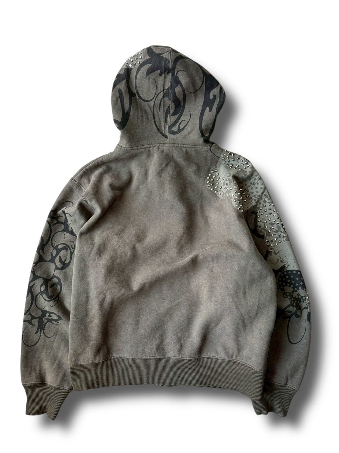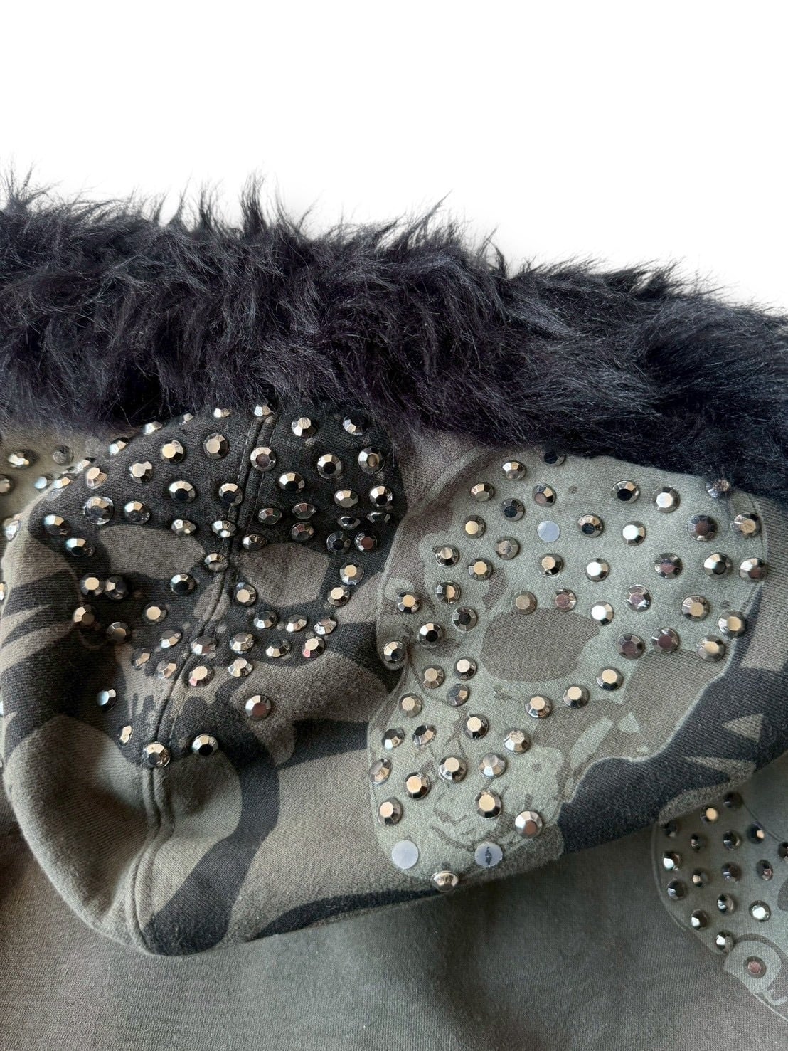 スカルモチーフにギラッギラなラインストーンが目を引くデザインジップアップフーディーの入荷‼️