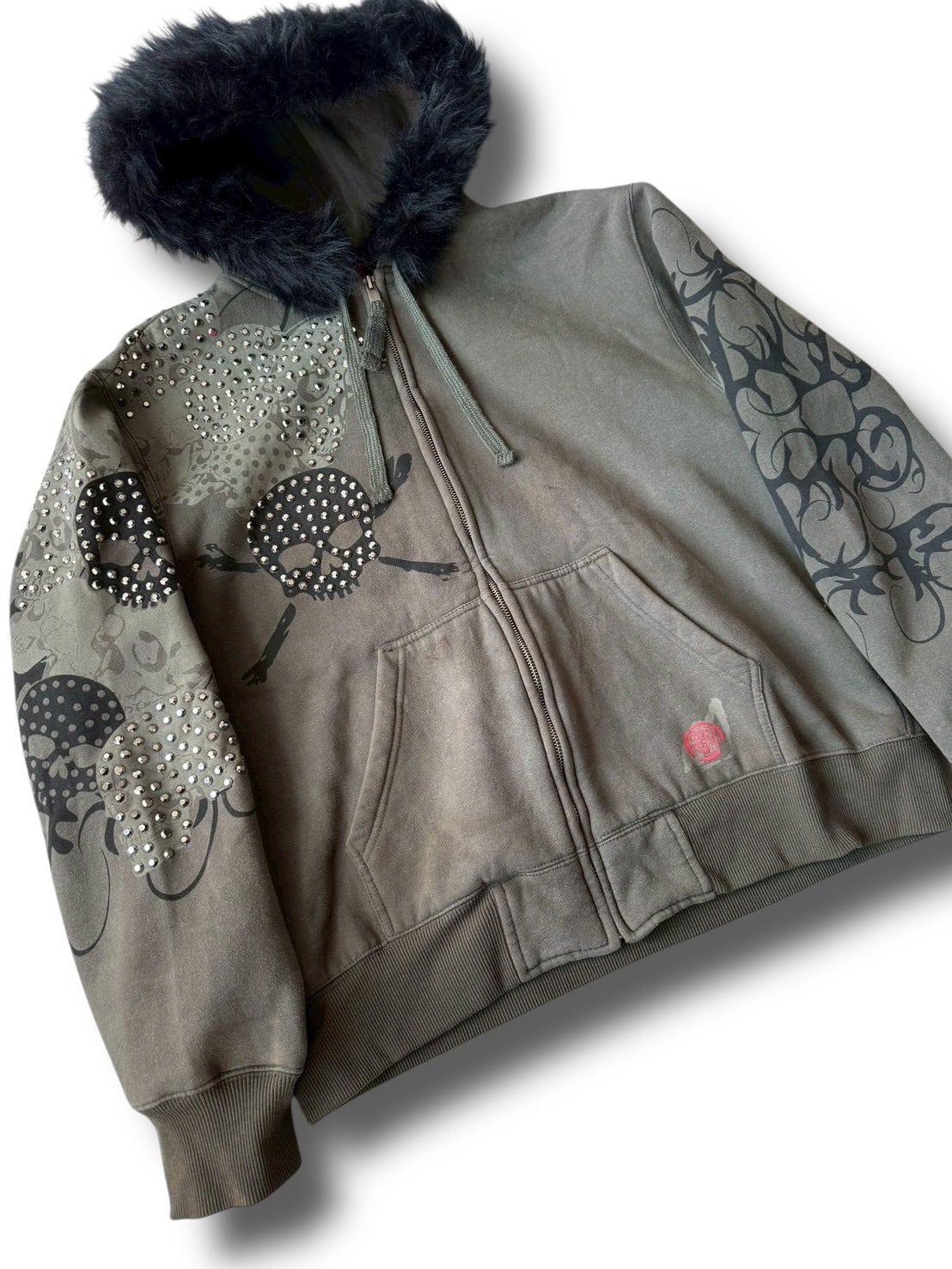 ♾Muka♾ skull motif rhinestone design zip up hoodie sizeL