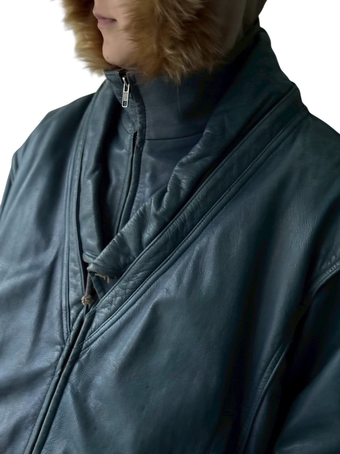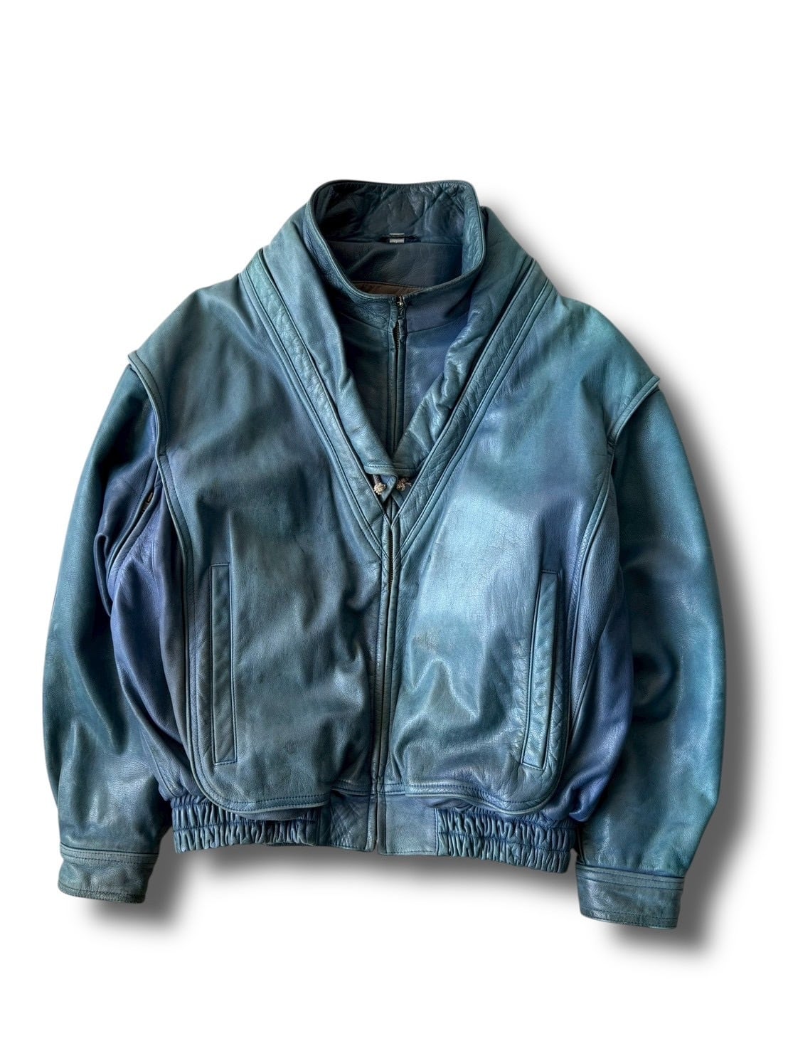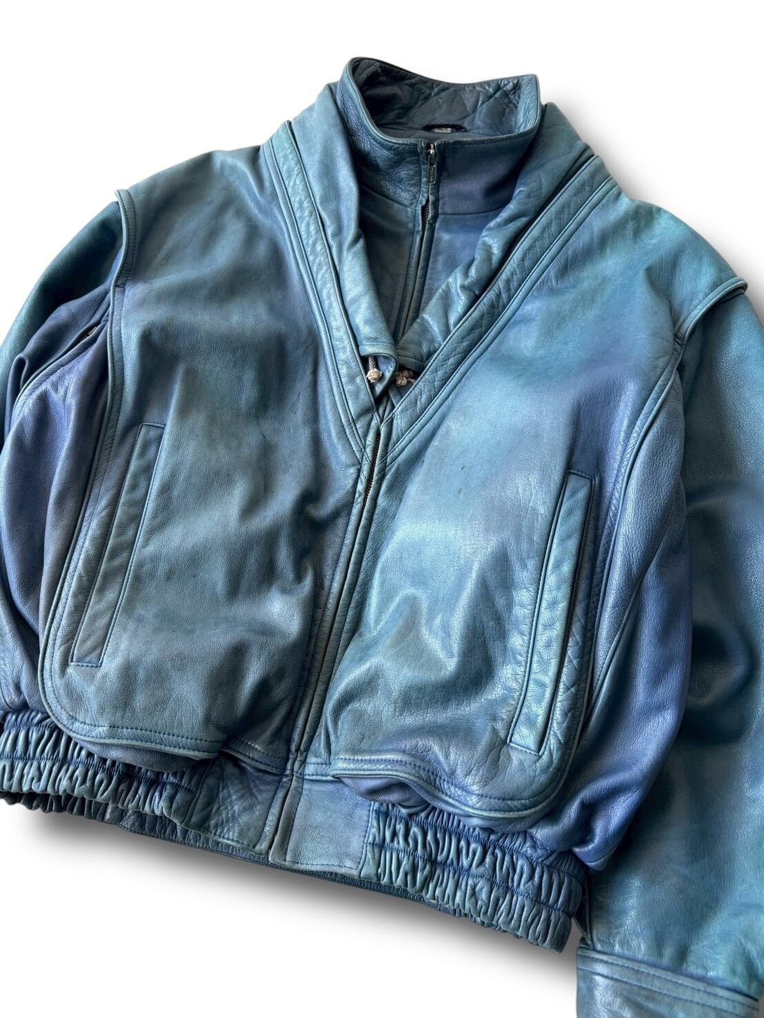 ♾Robert Comstoch♾ fake layered docking design leather jacket size40