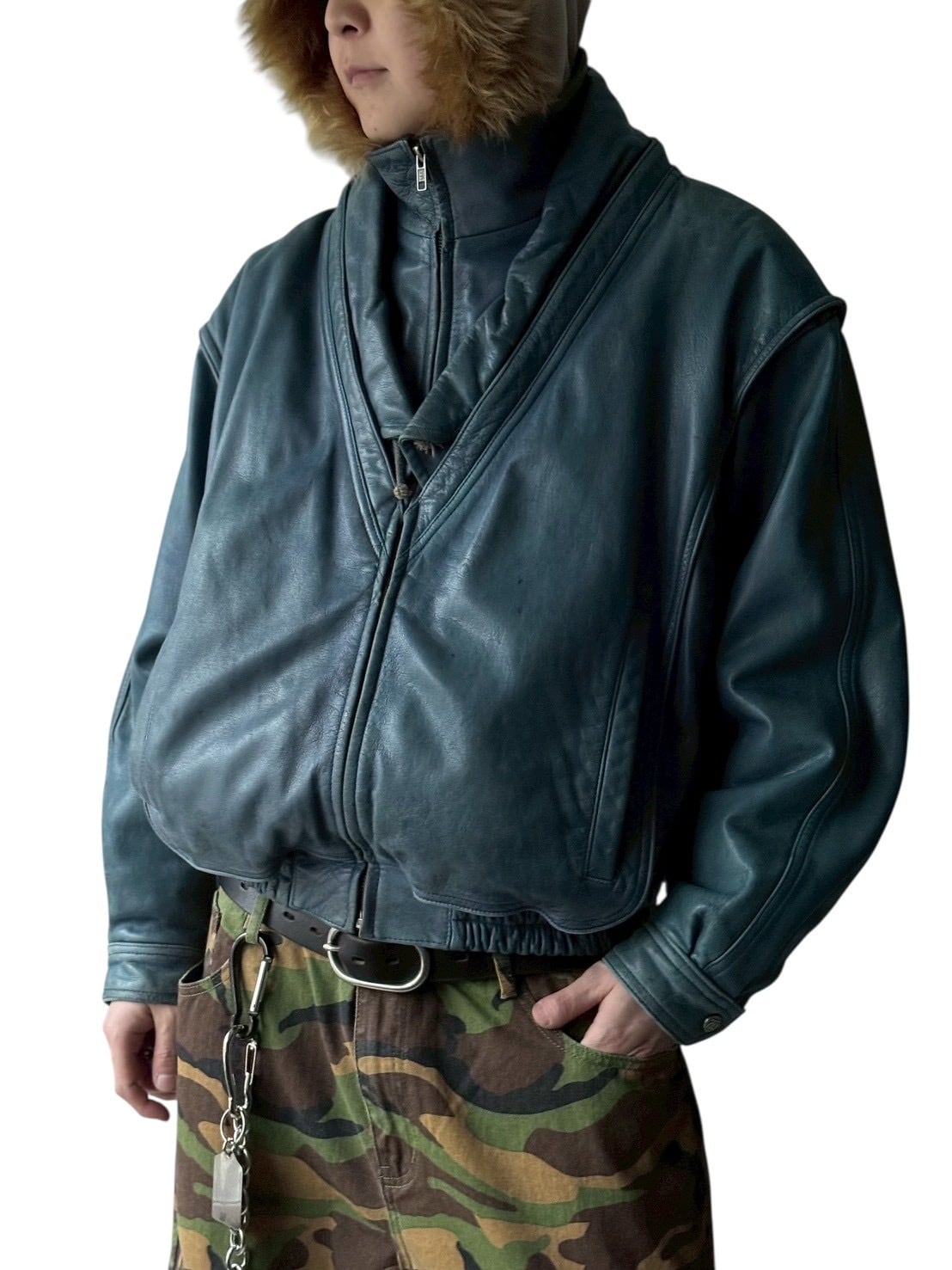 レイヤードされた部分のZIPの内側にはフードが収納されており気分でかぶれちゃうのも良い‼️