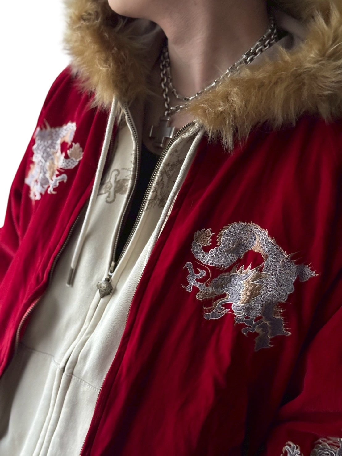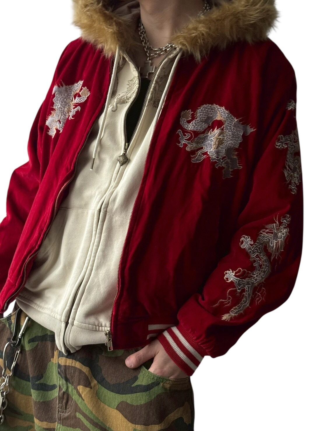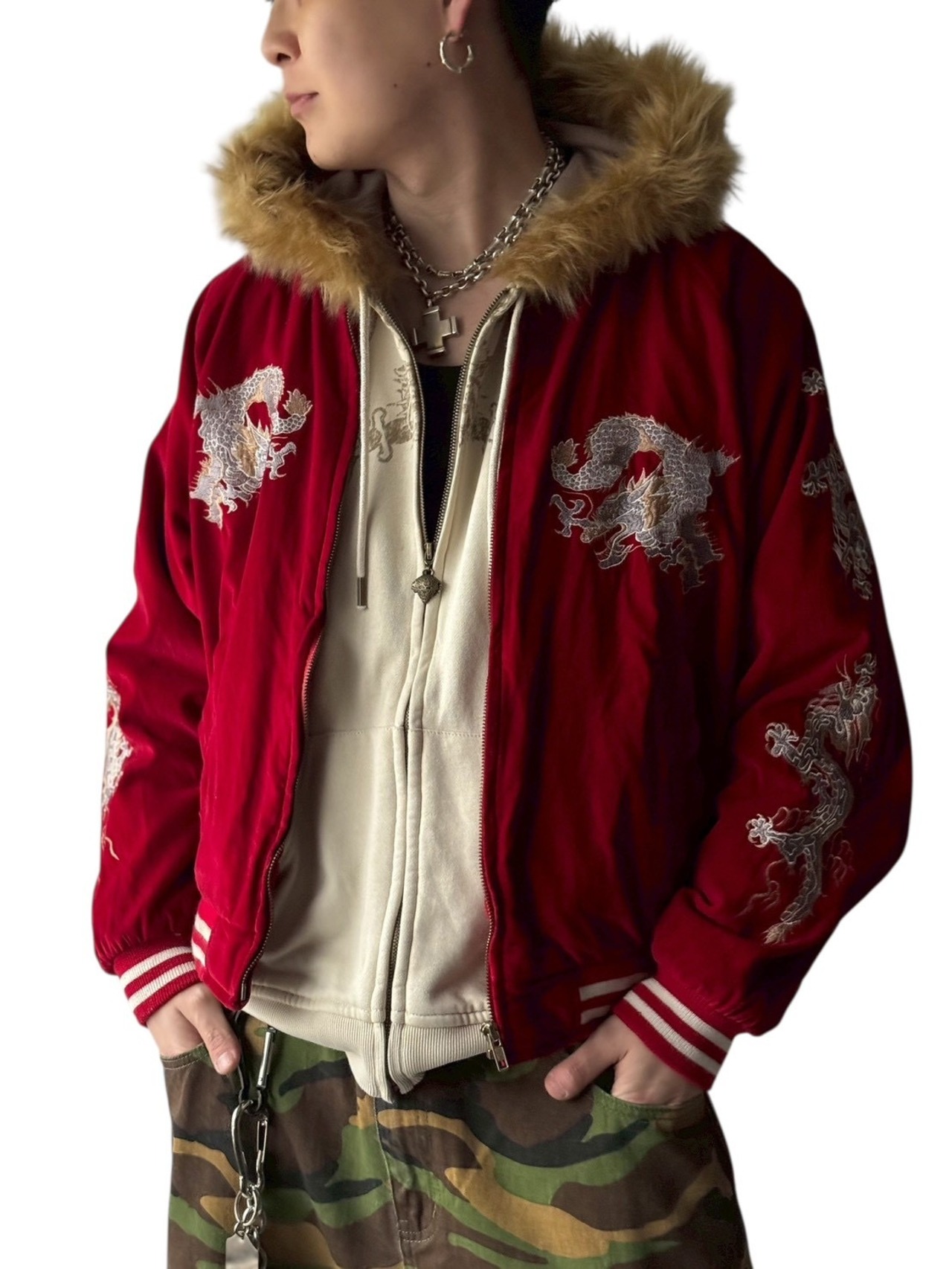 dragonmotif embroidery design velours souvenir jacket