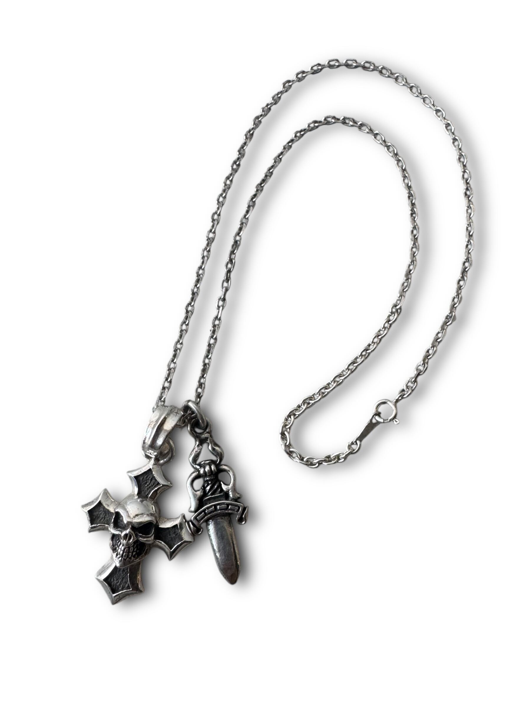 ‼️Special‼️ ♾vintage silver jewelry♾ skull cross dagger motif design double top necklace sv925