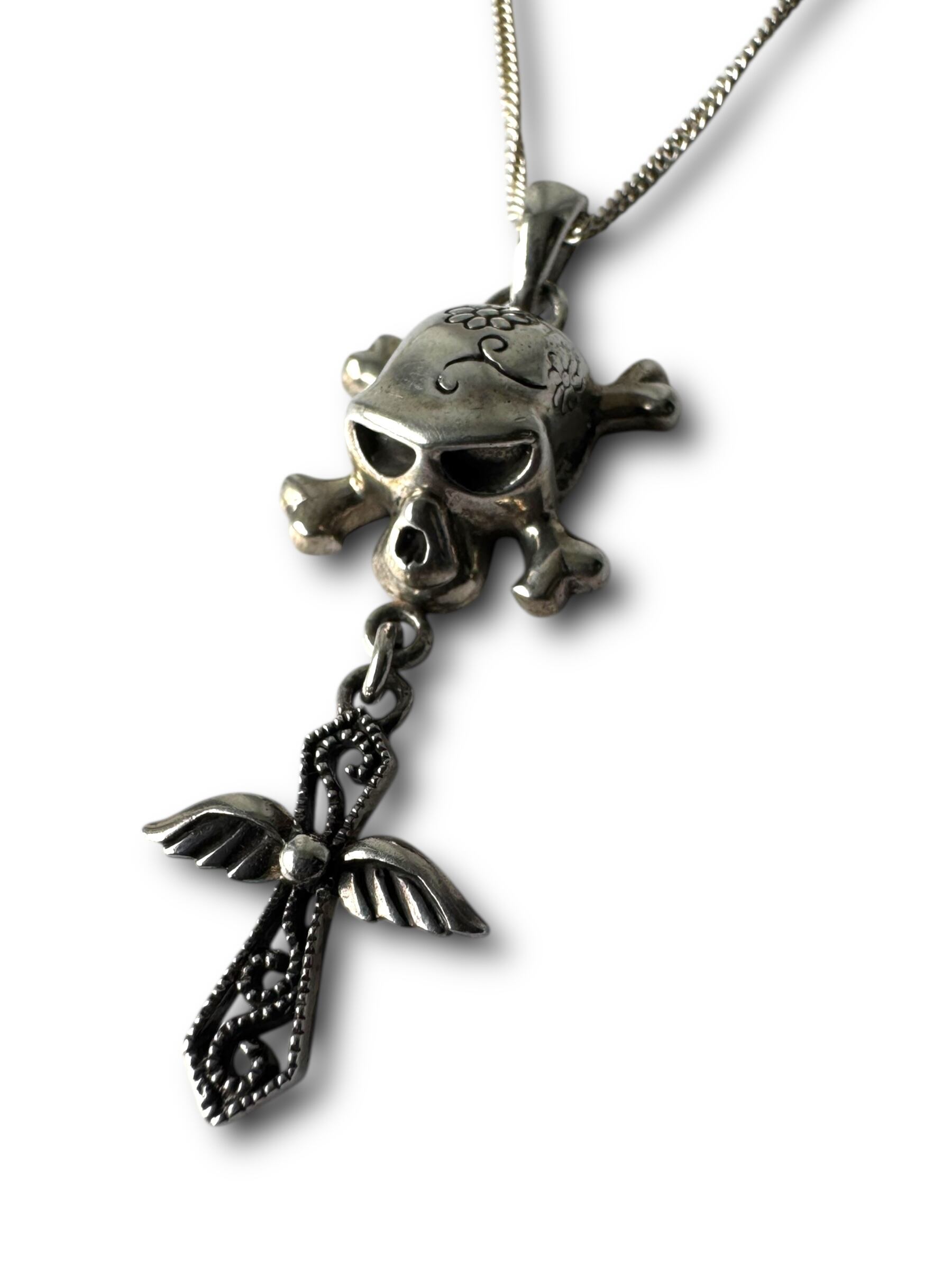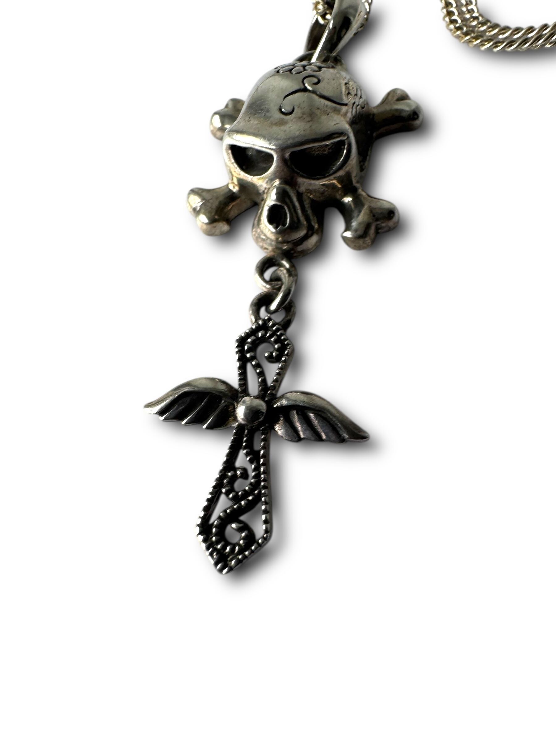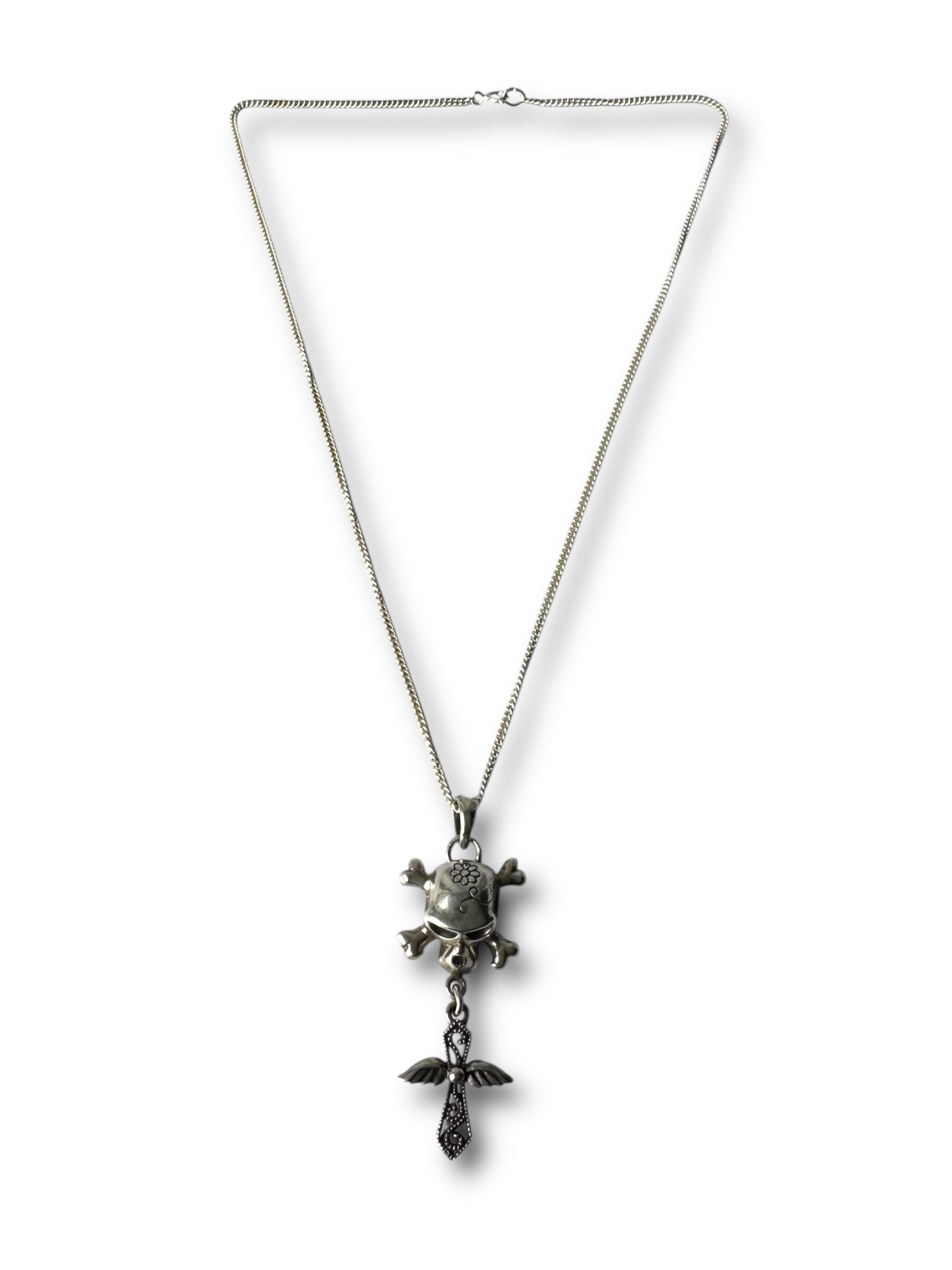♾vintage silver jewelry♾ skull cross motif design necklace sv925 ・