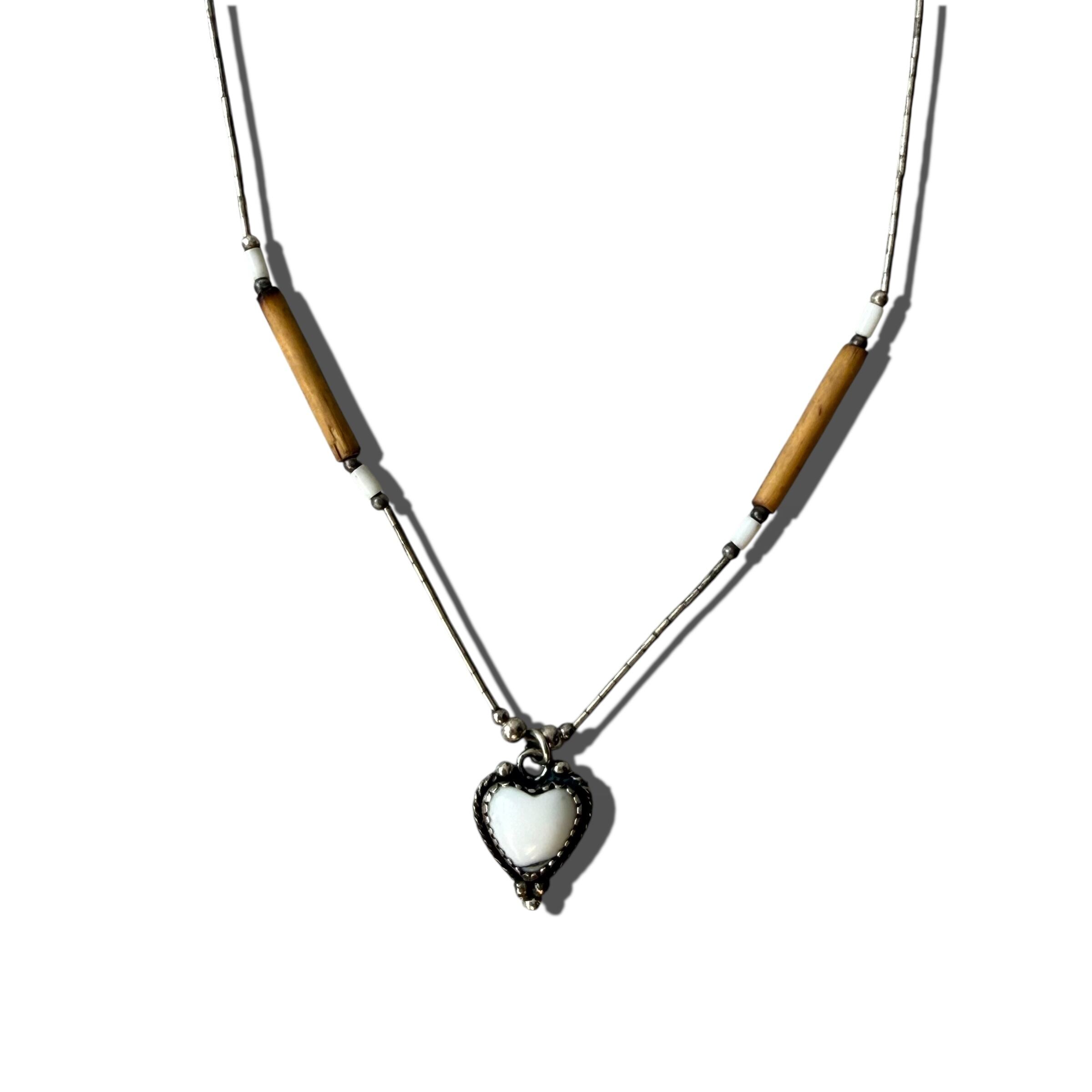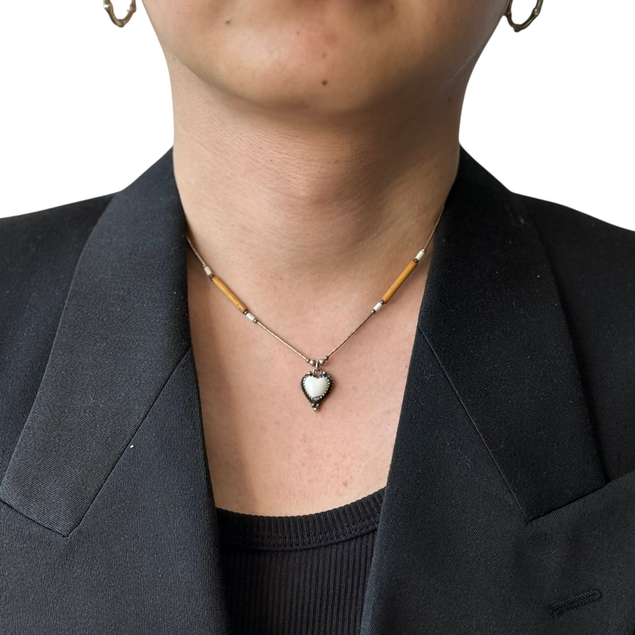 【Vintage Silver Jewelry】 sv925 heart stone design necklace