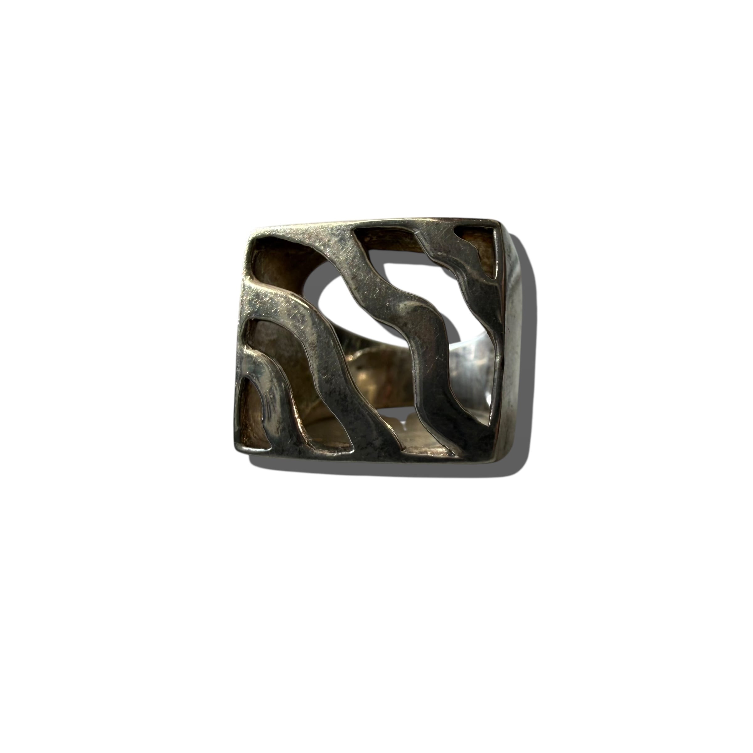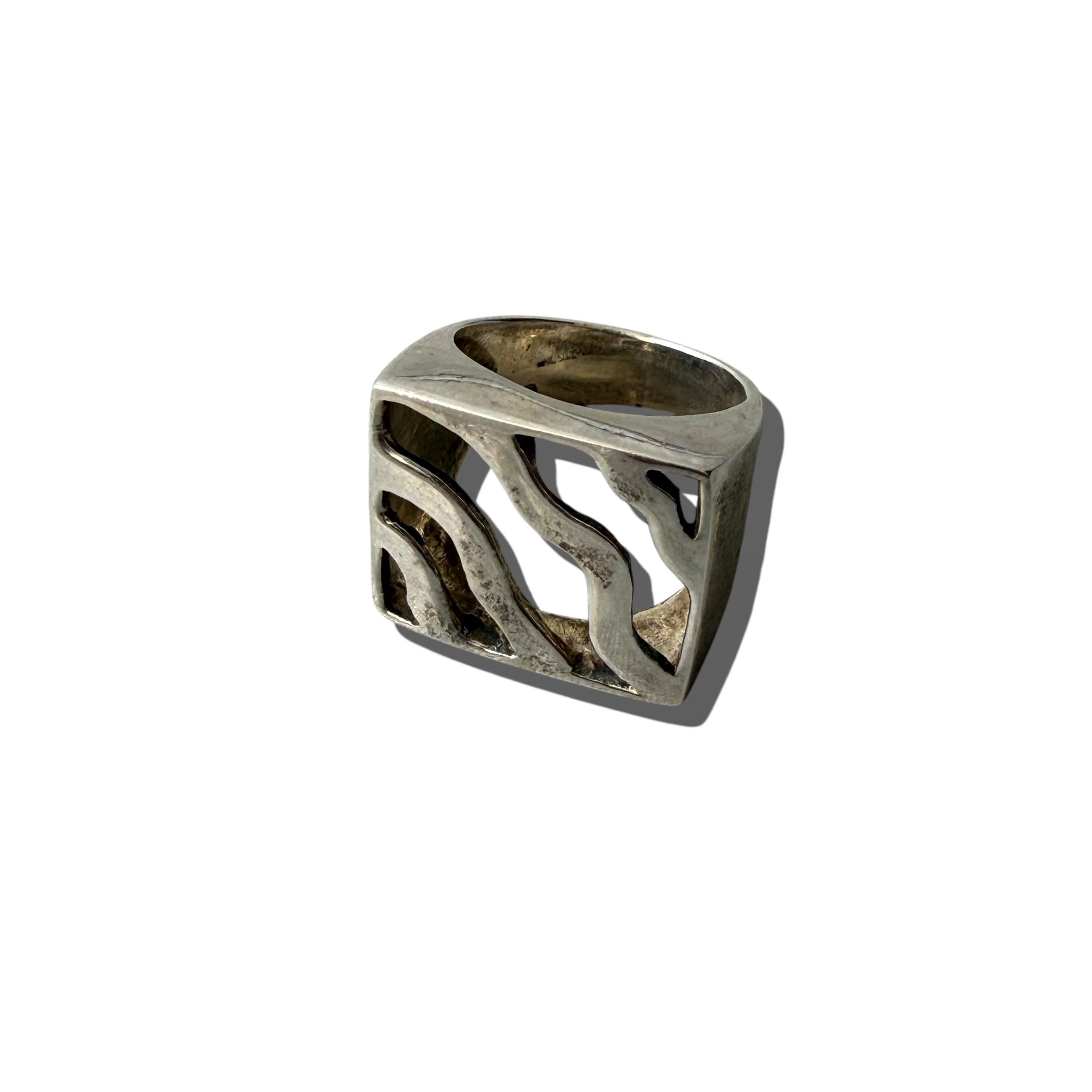 【Sterling silver】 sv925 vintage zebra art design square ring size 12号
