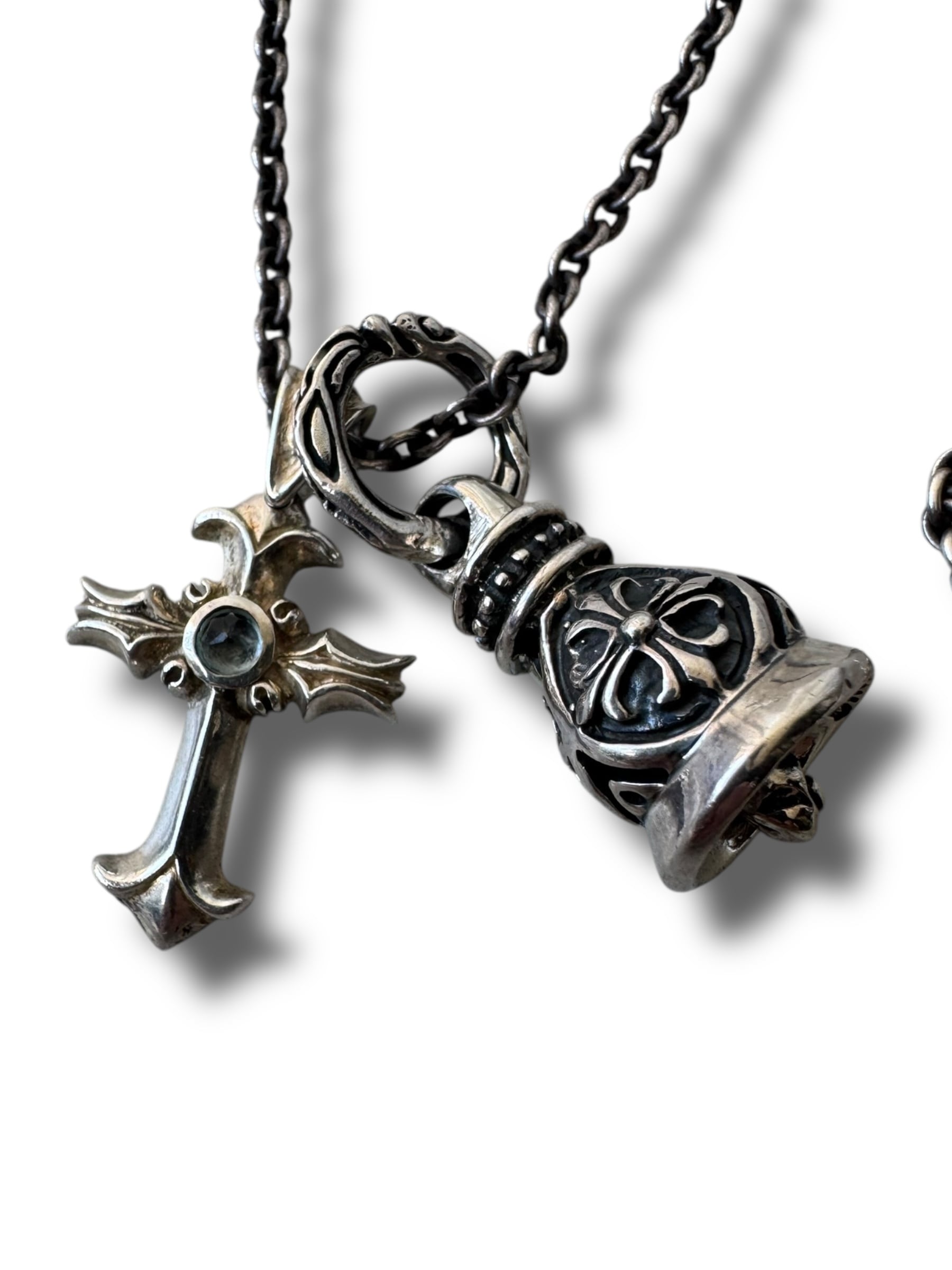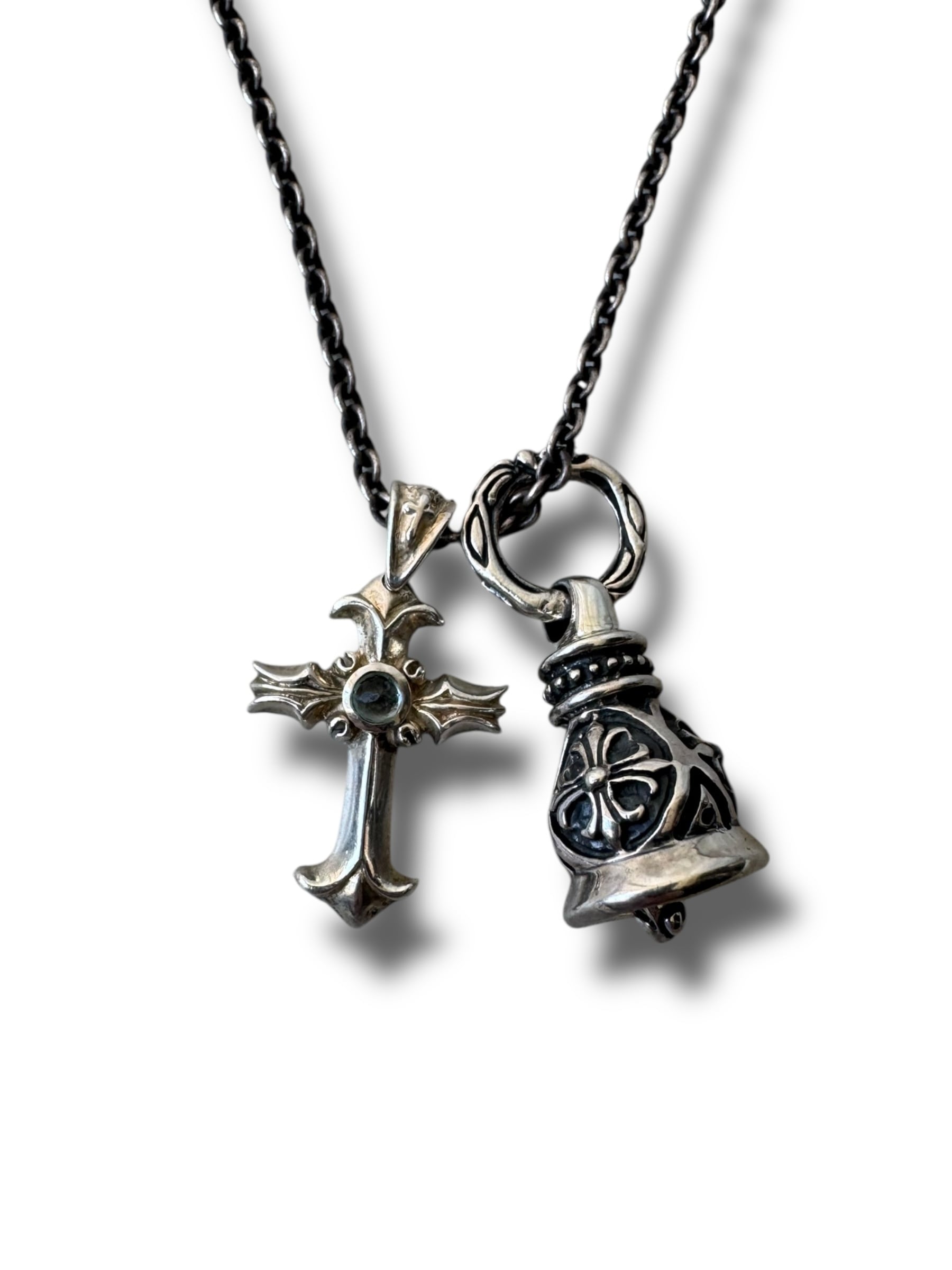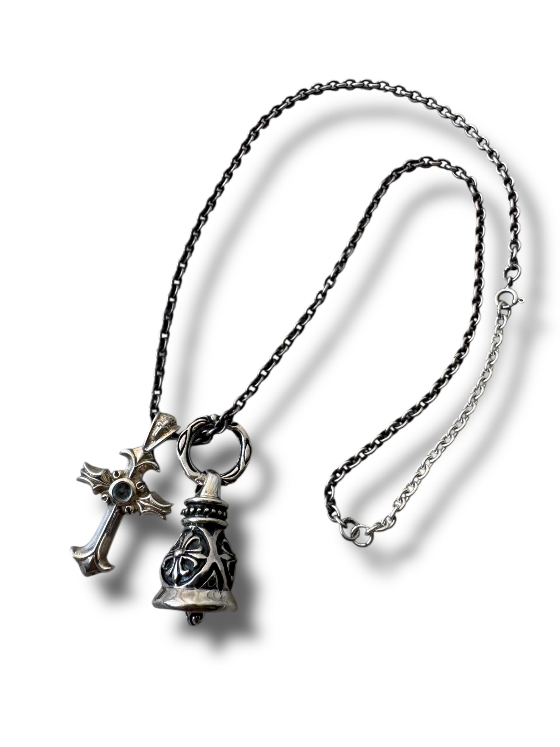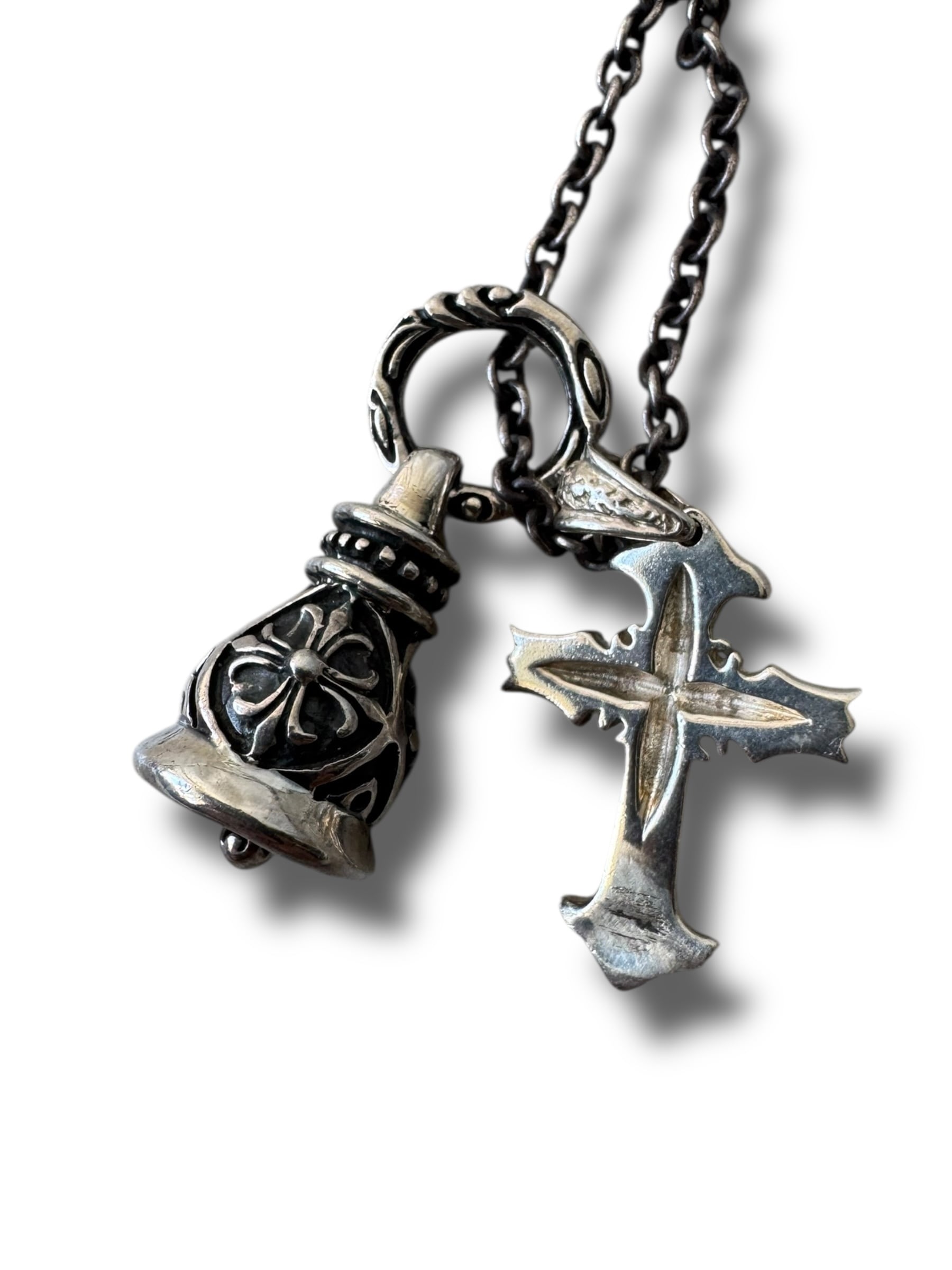 ♾Vtg sv jewelry♾ cross motif bell w top design necklace sv925
