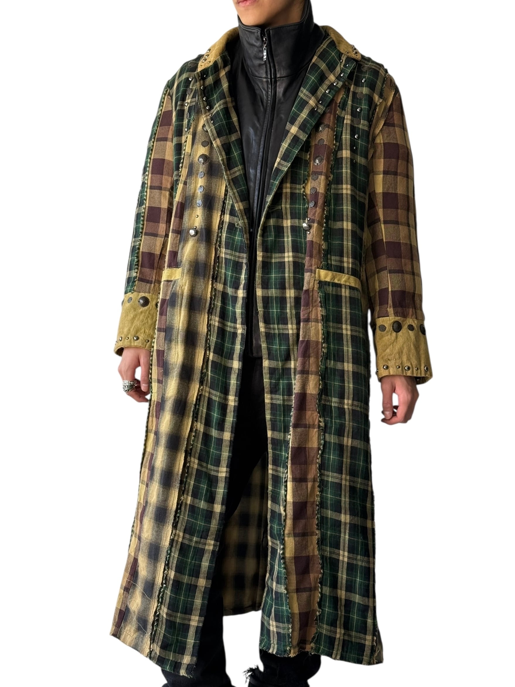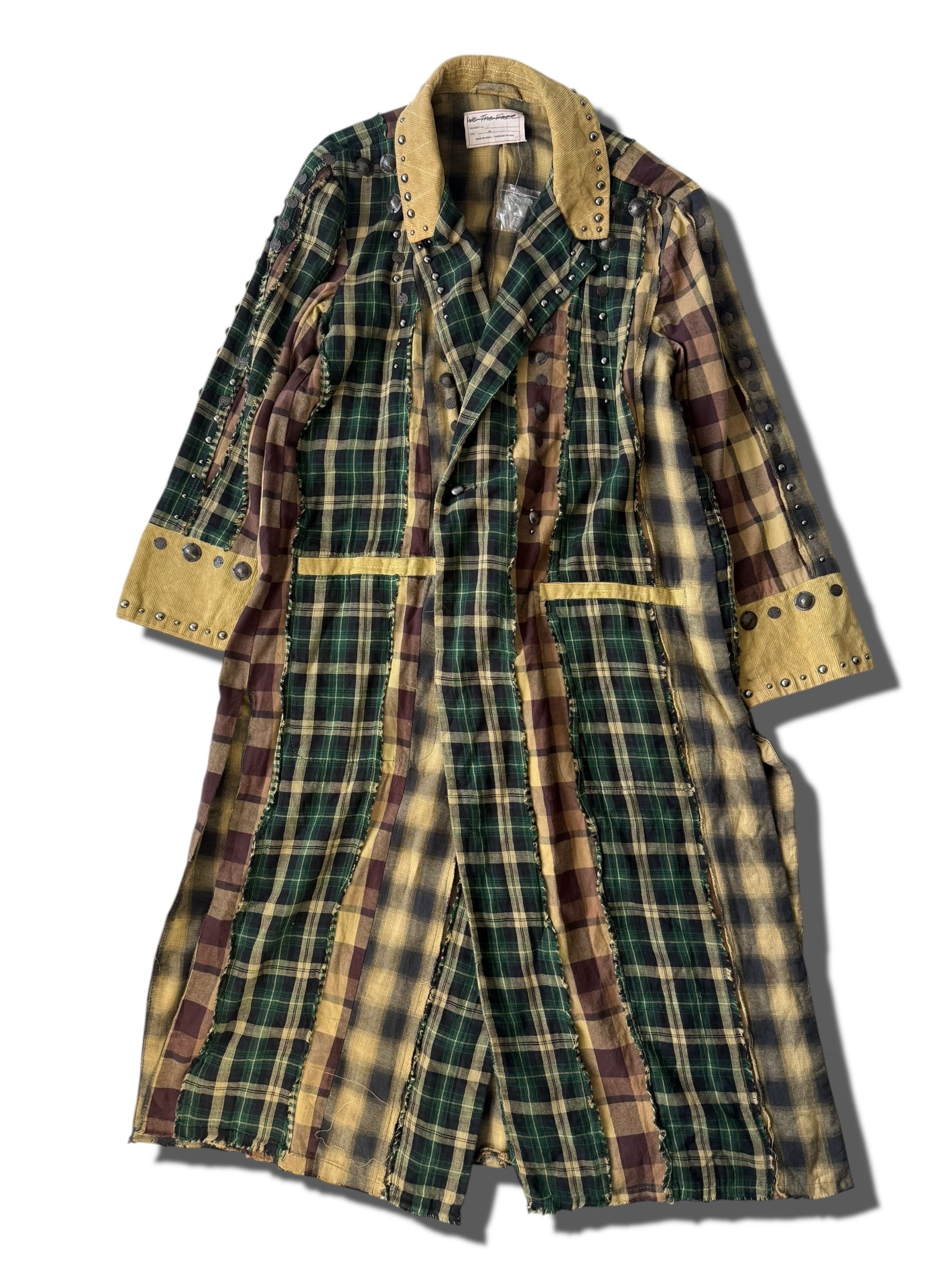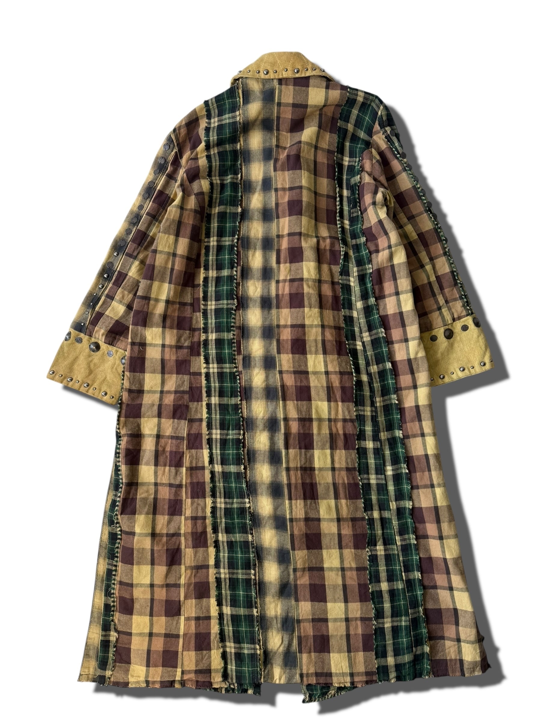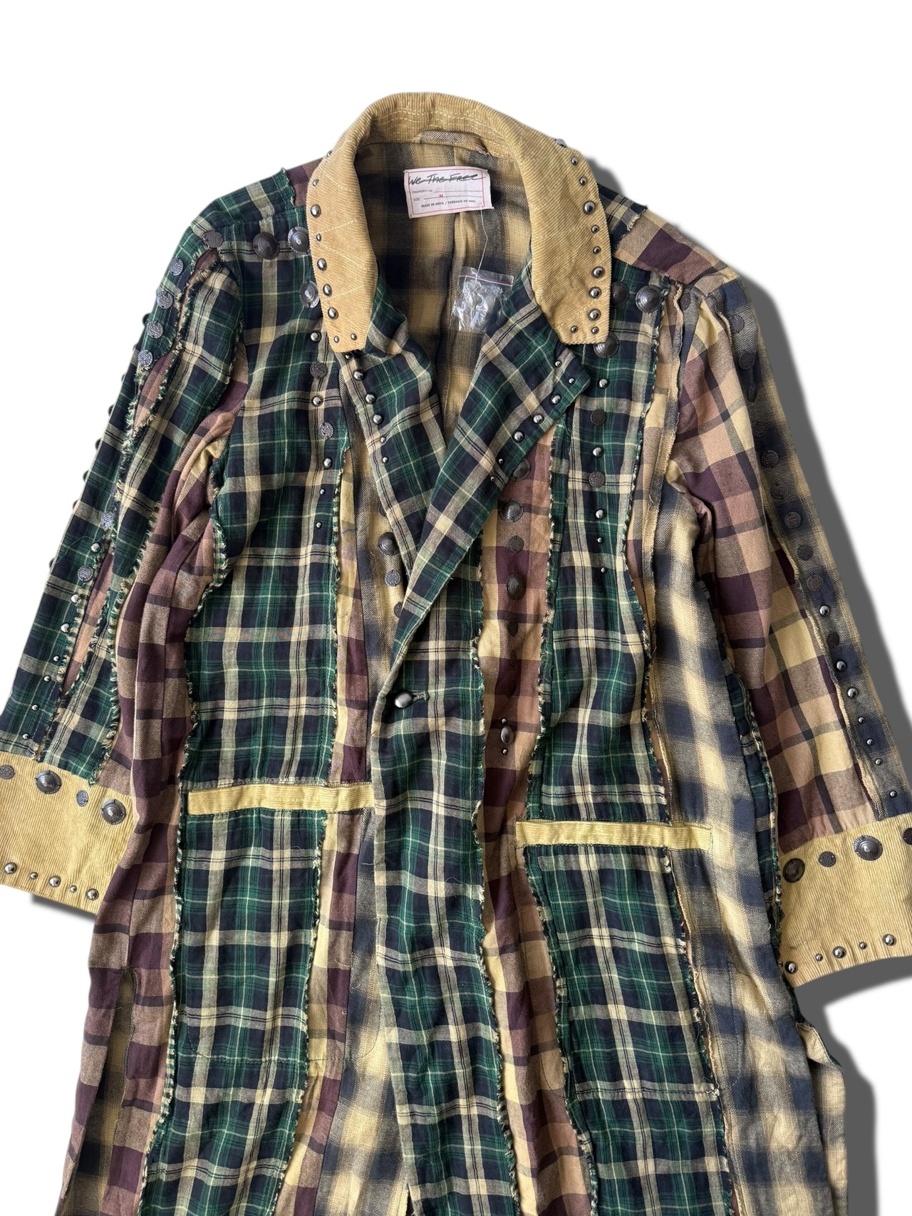 【WE THE FREE】Multi-fabric patchwork stud and coin decoration check long coat -MADE in INDIA-