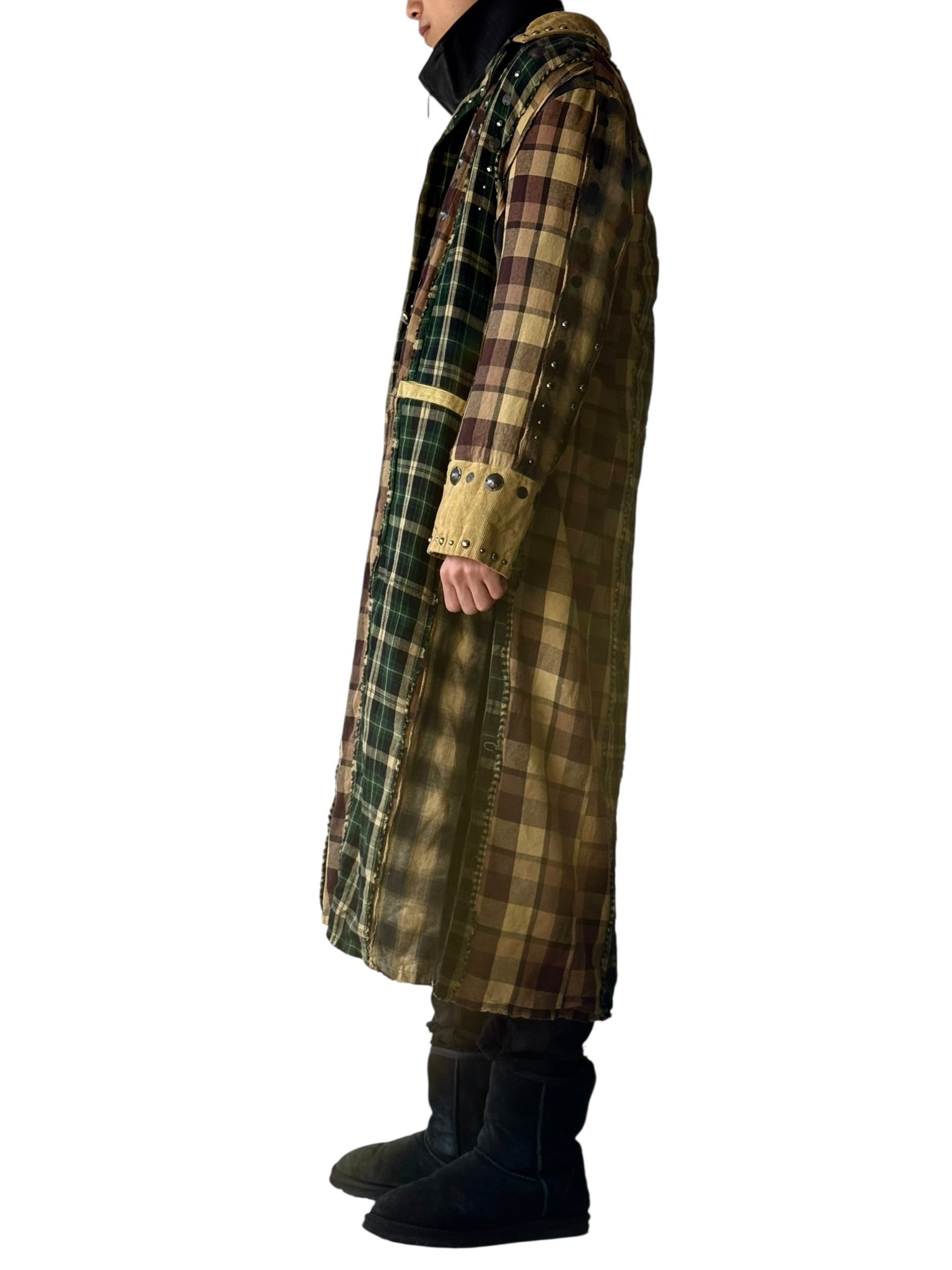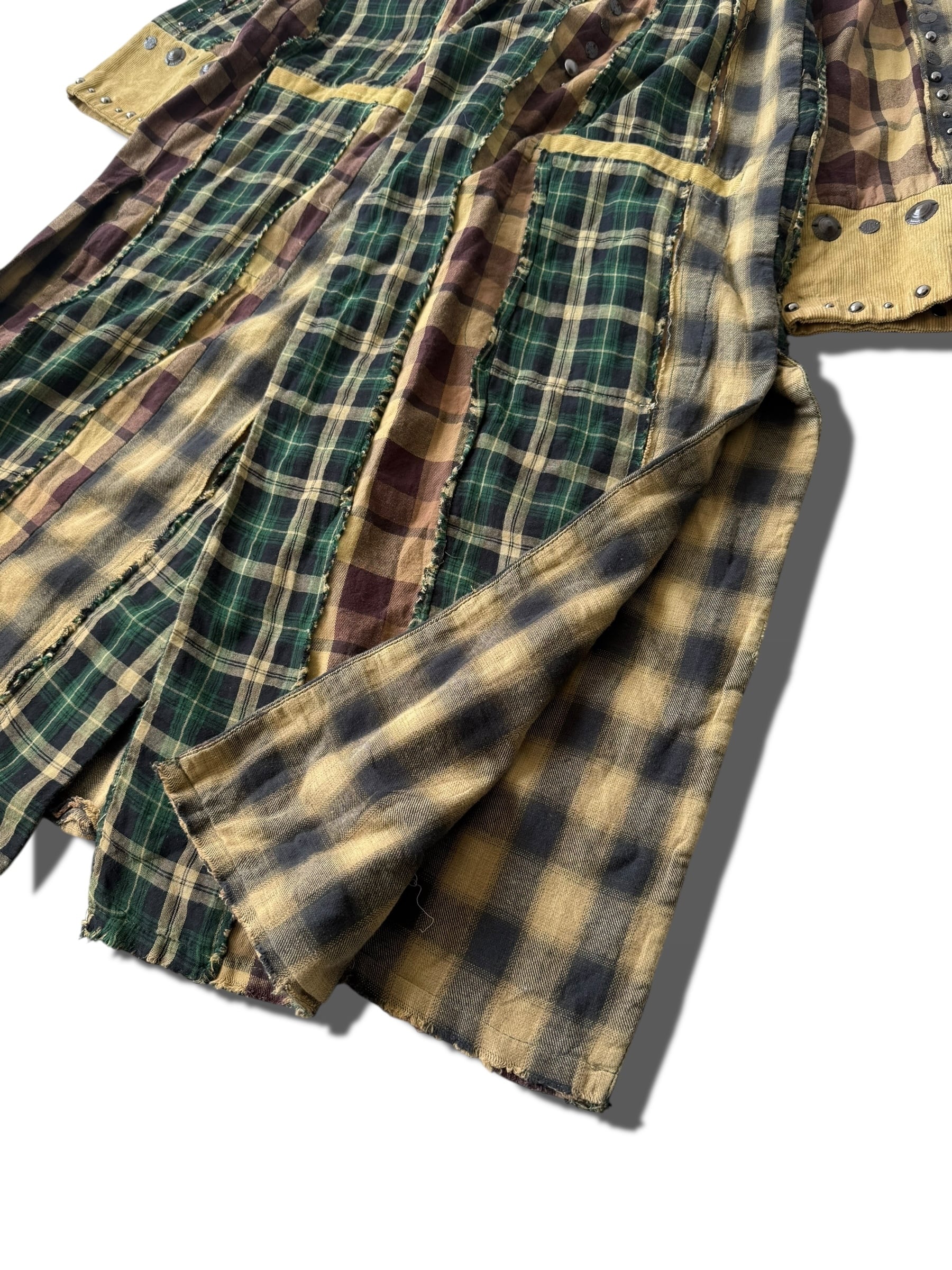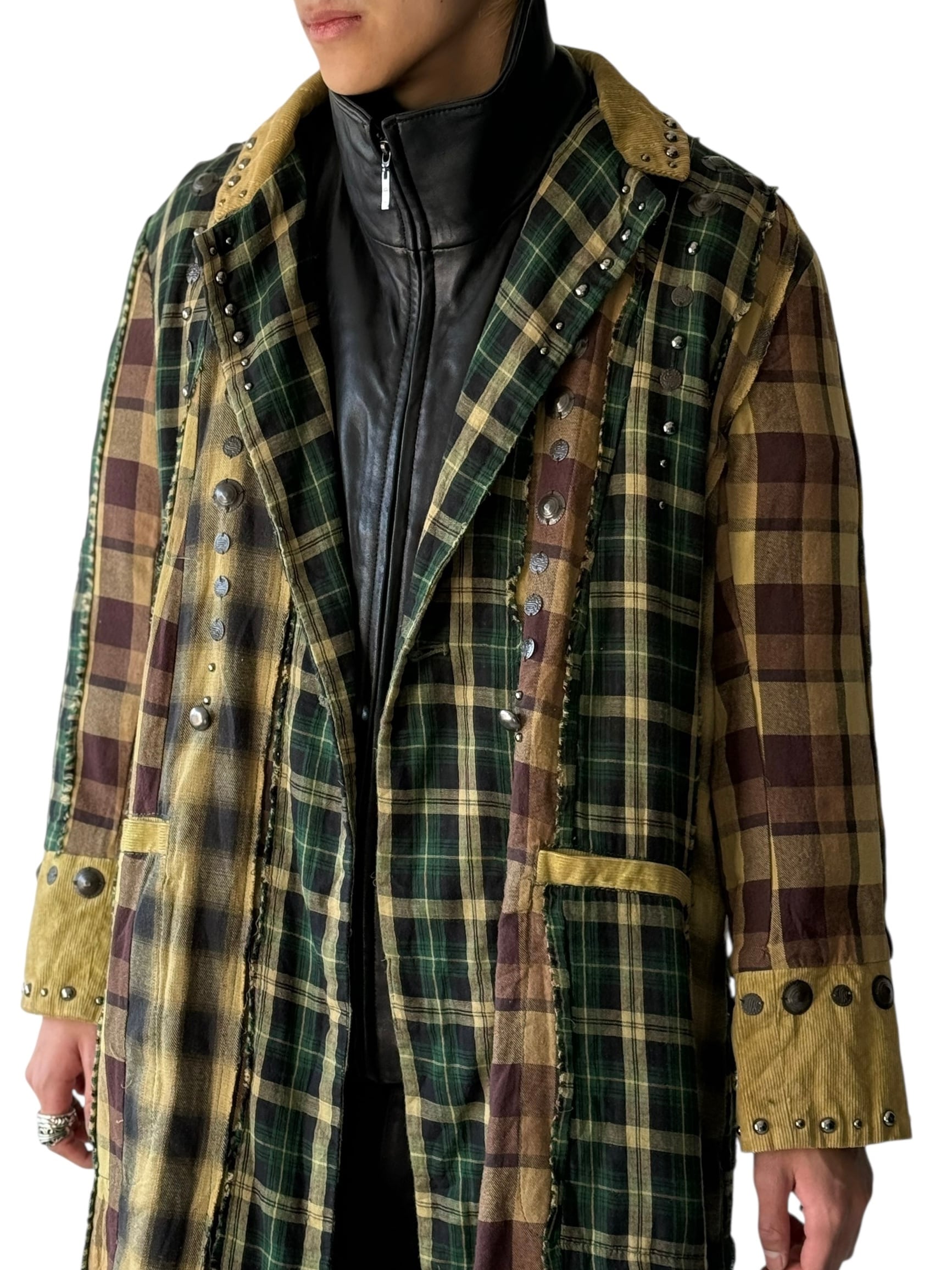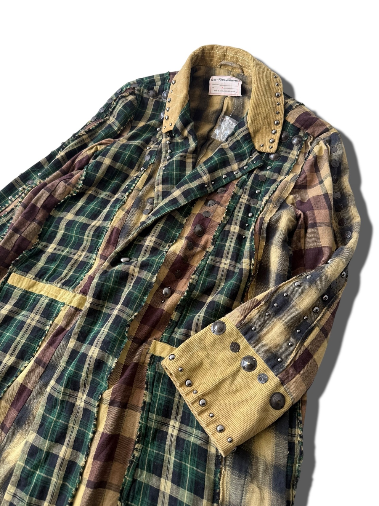 【WE THE FREE】Multi-fabric patchwork stud and coin decoration check long coat -MADE in INDIA-