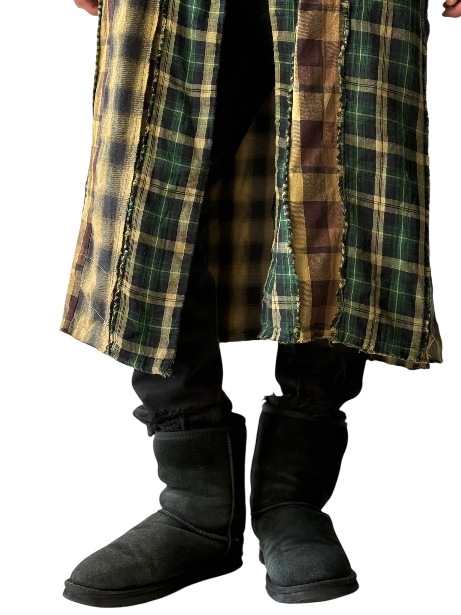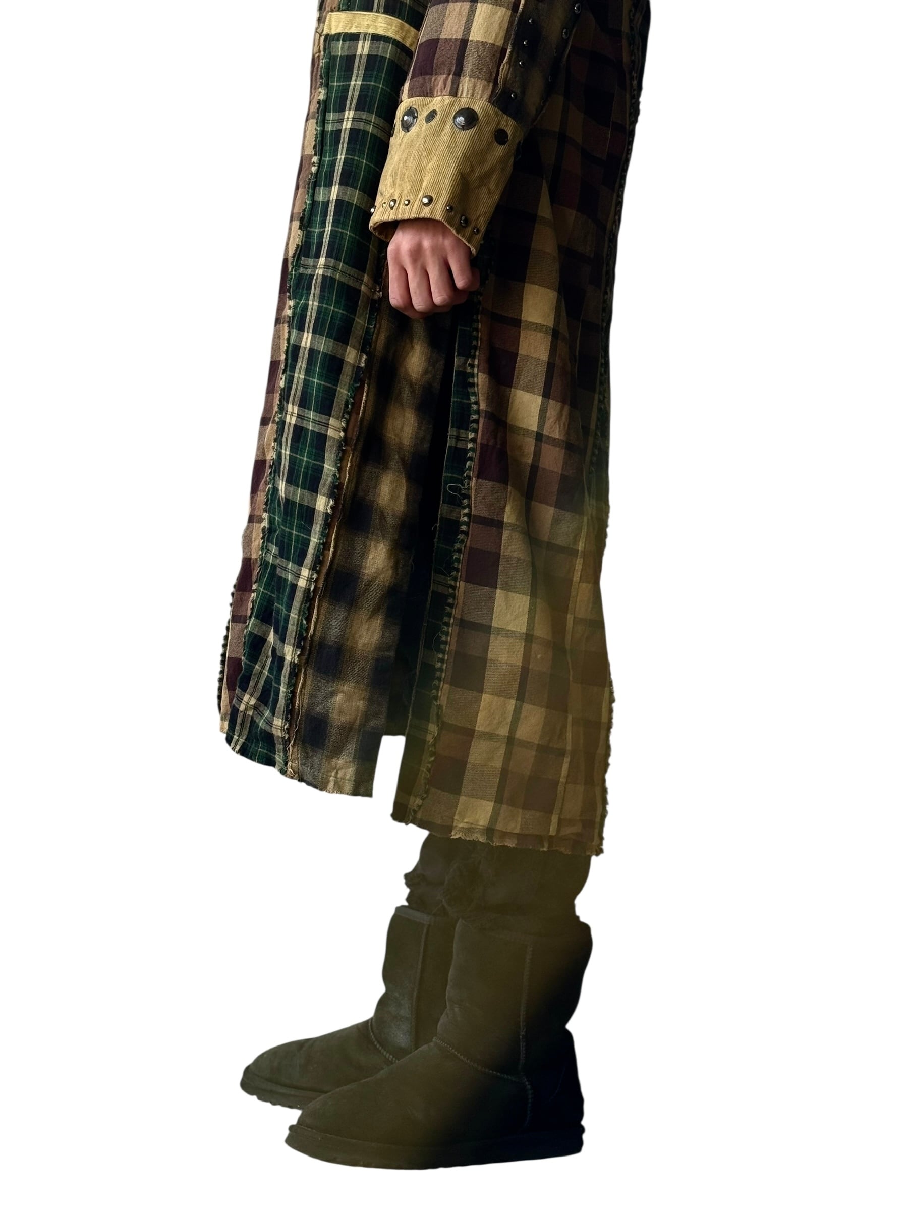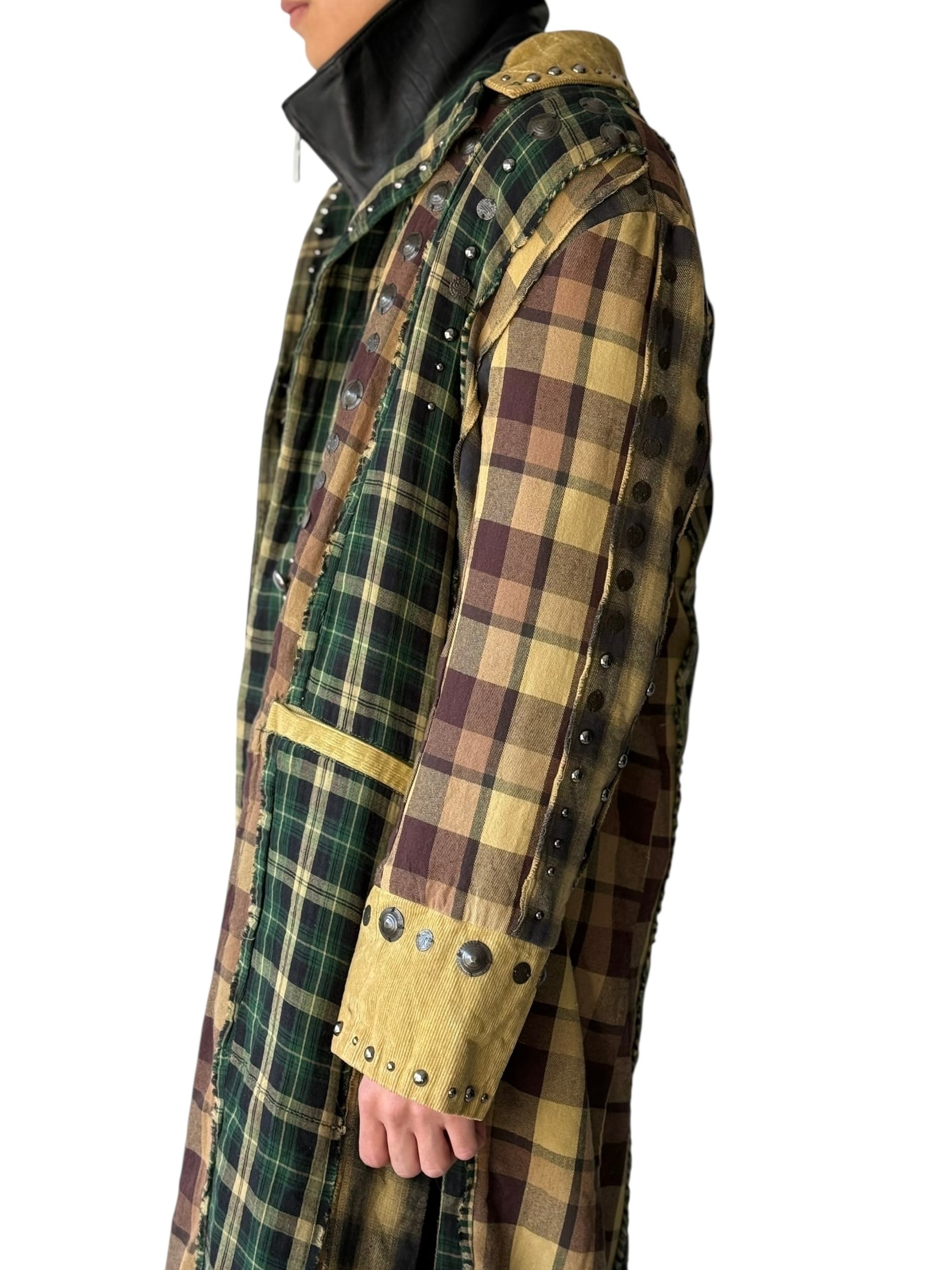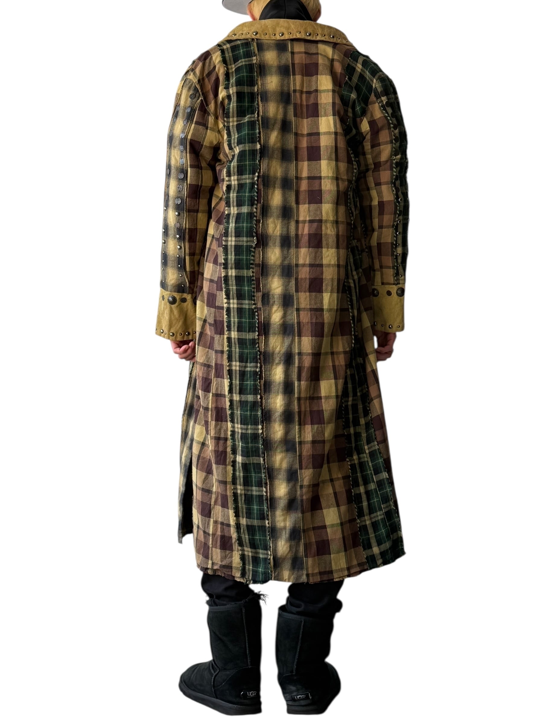 【WE THE FREE】Multi-fabric patchwork stud and coin decoration check long coat -MADE in INDIA-