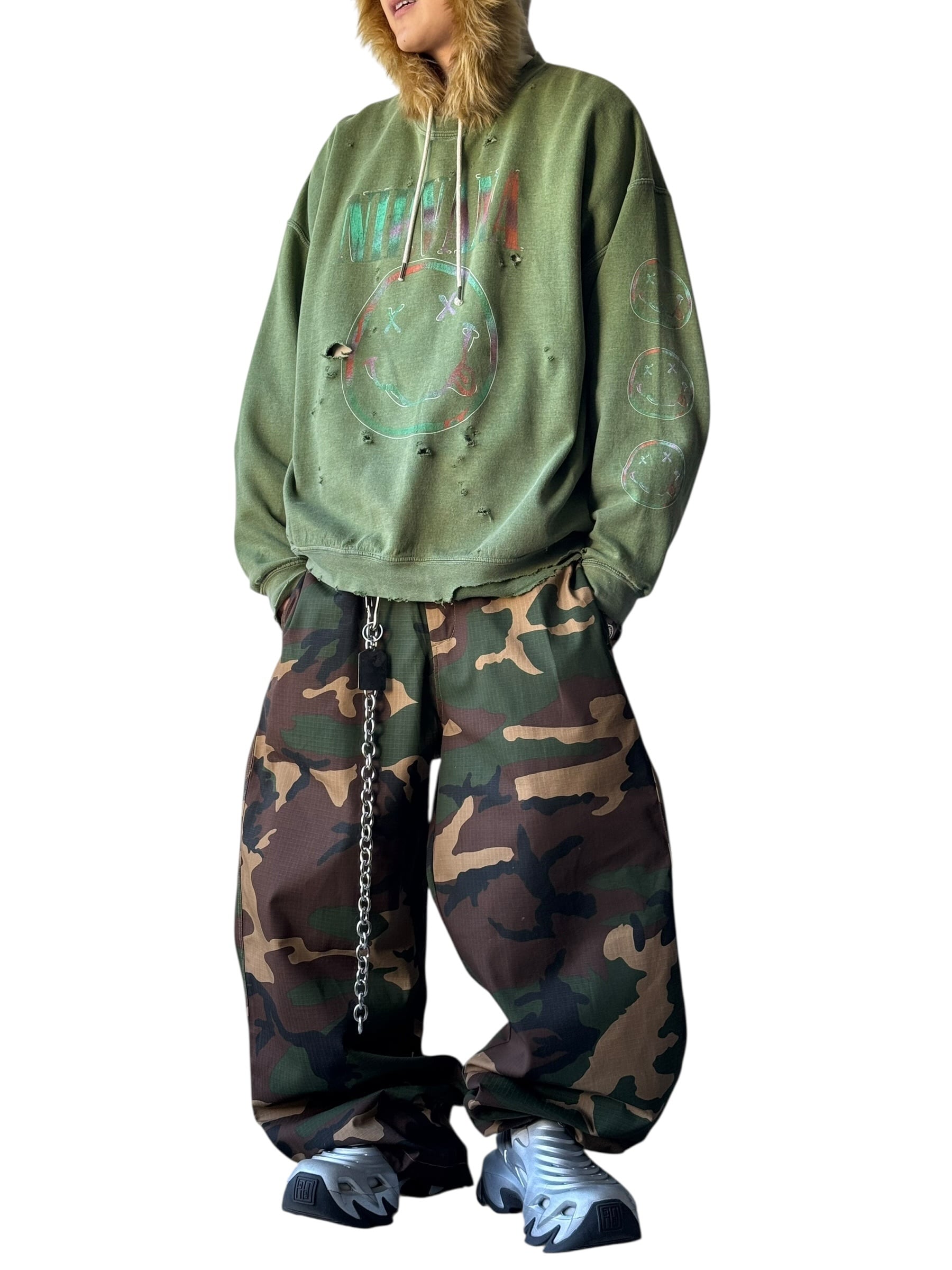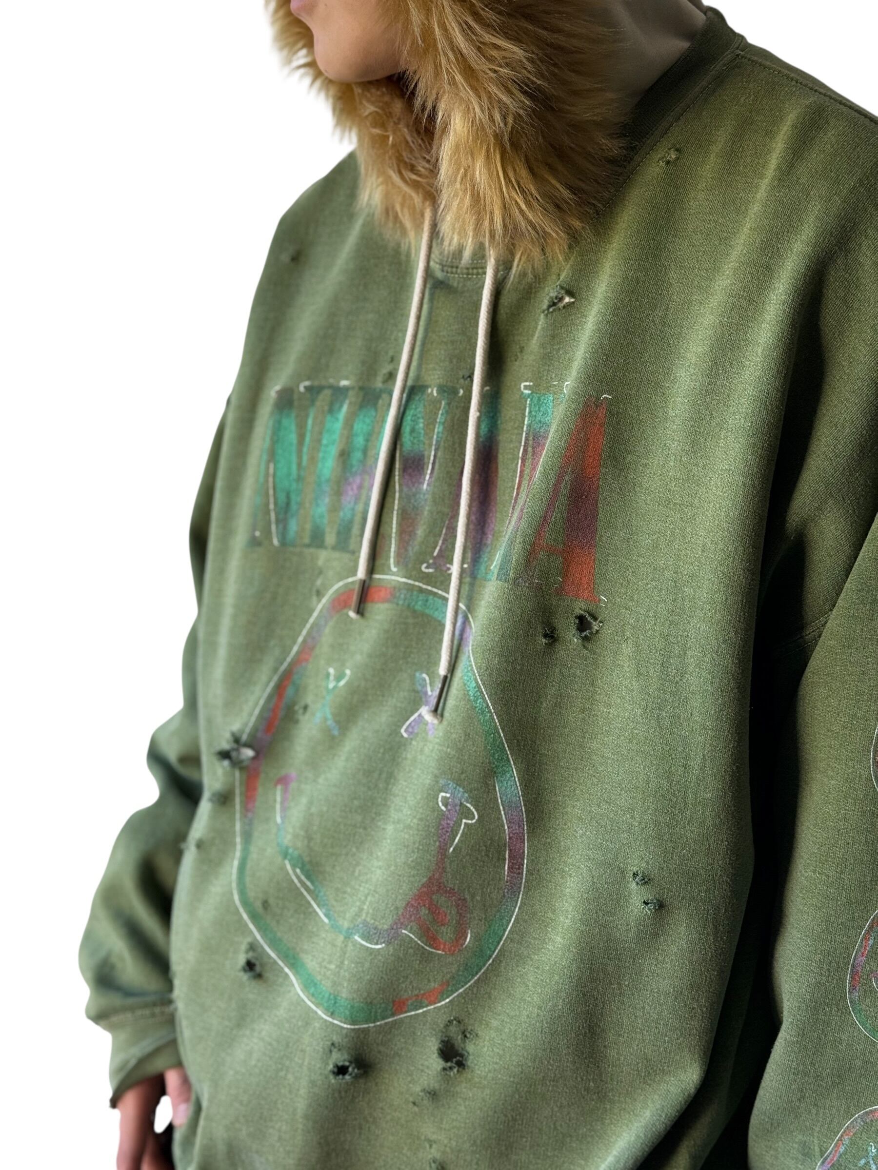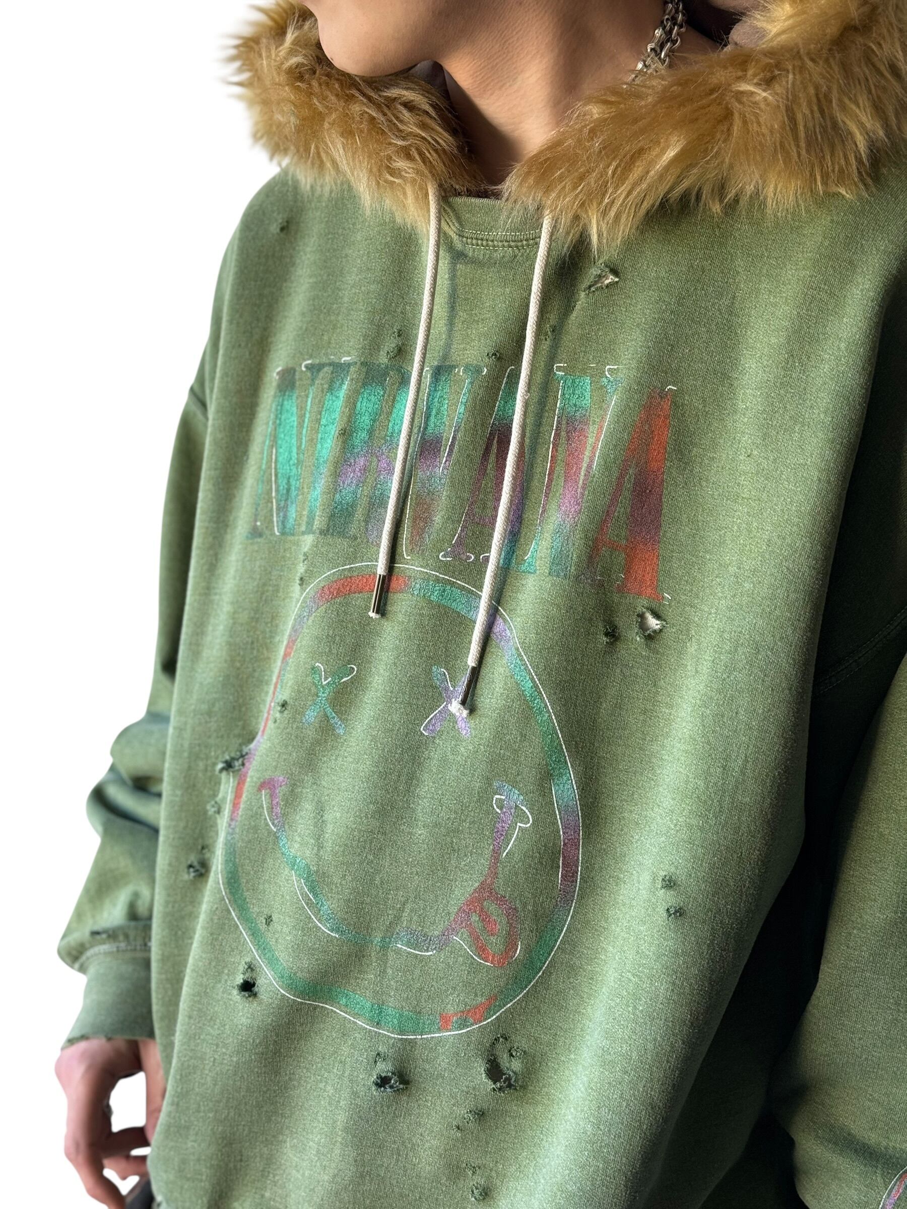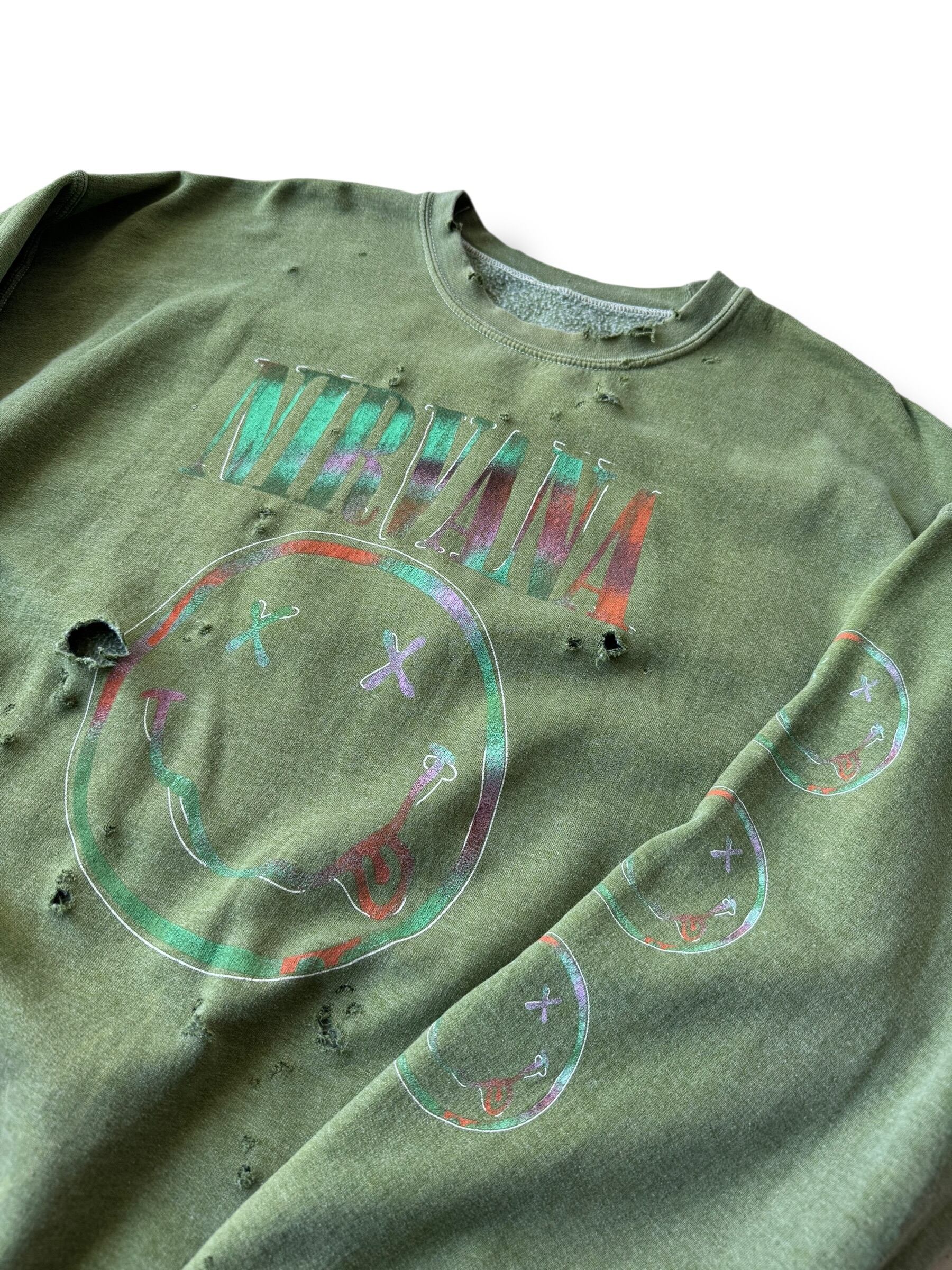 フロントにぐったりとしたスマイリーが描かれたNIRVANAといえばのモチーフが映えるグランジデザインスウェット‼️