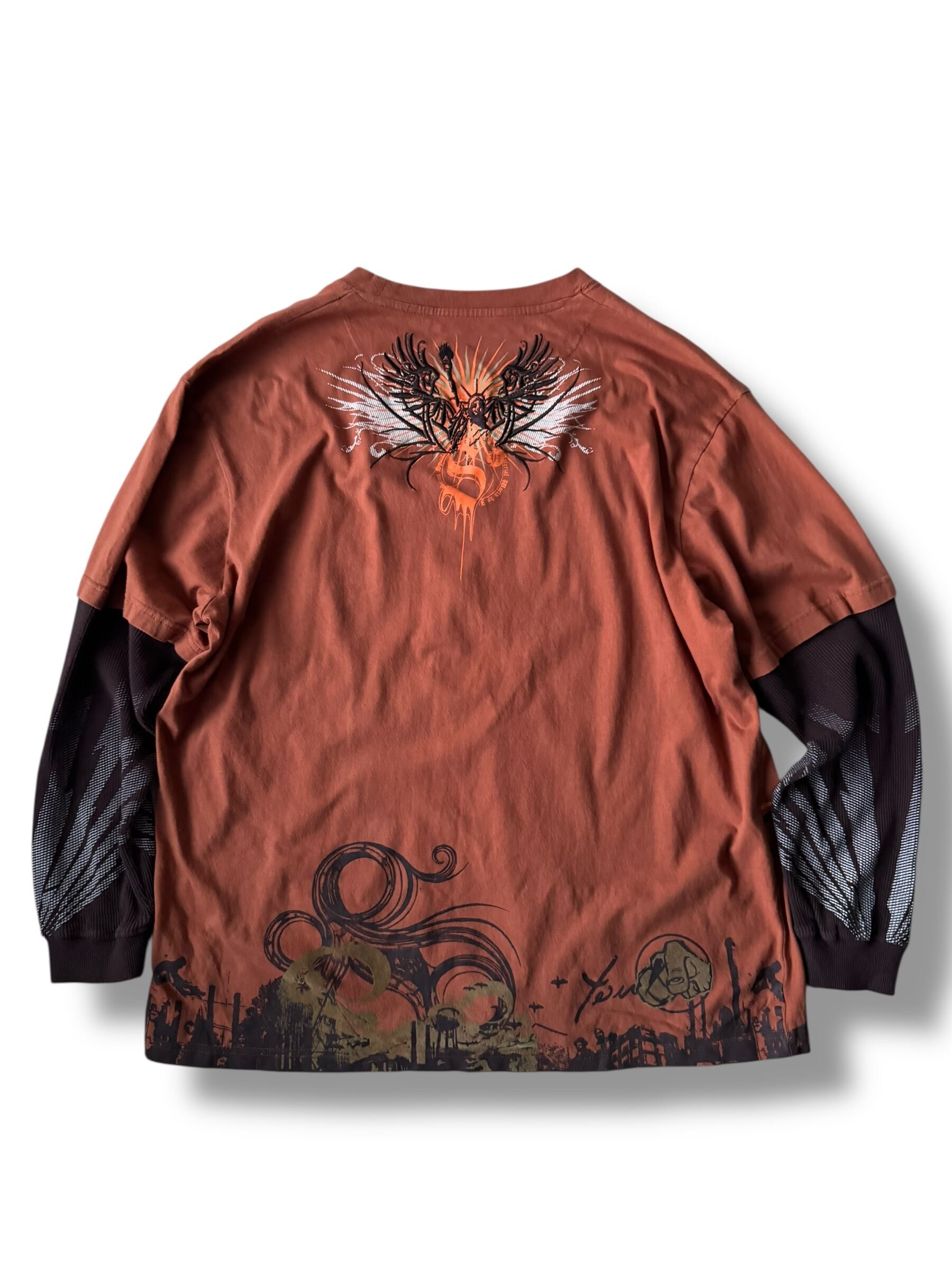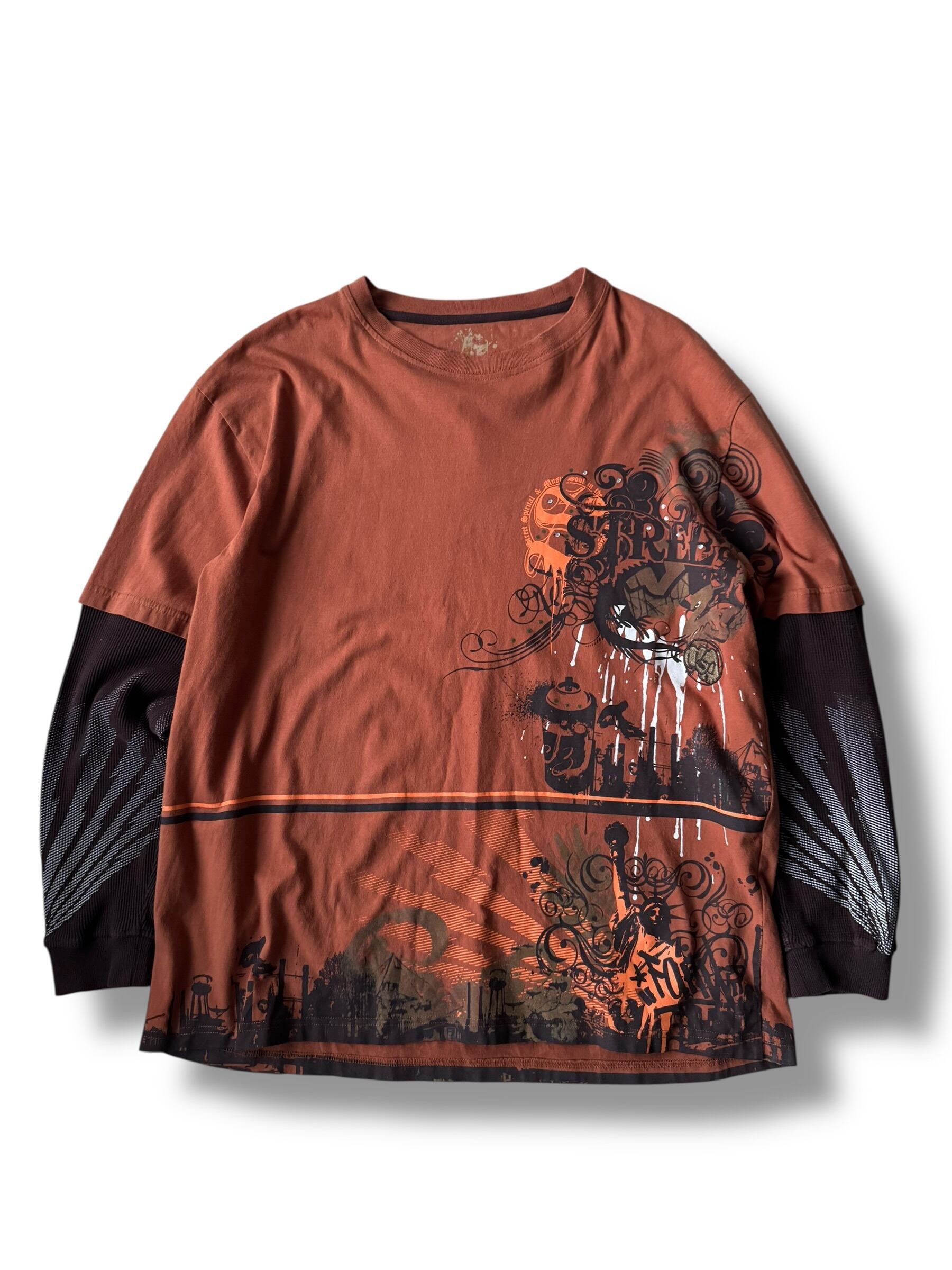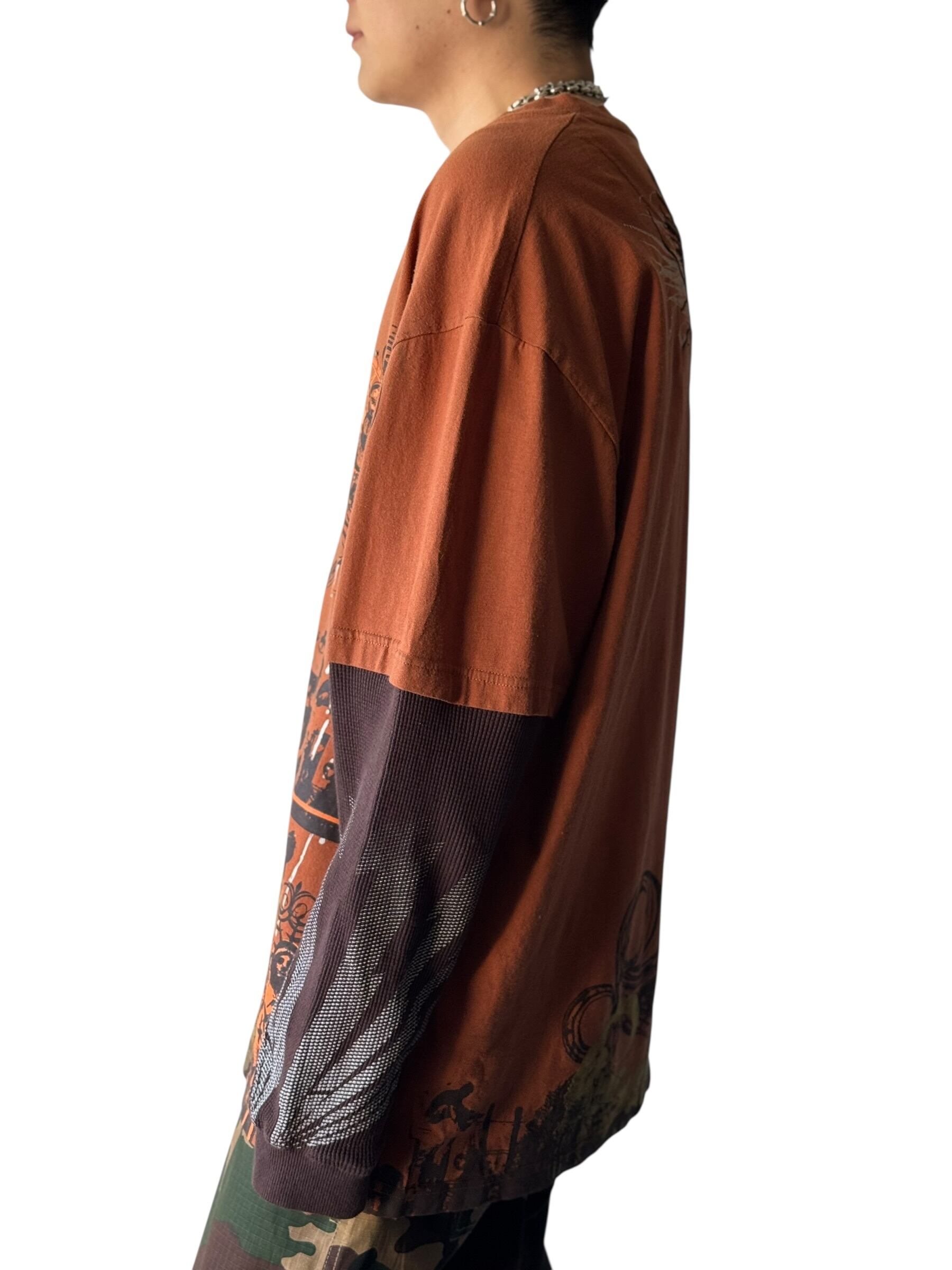 刺繍とグラフィックプリントデザインTeeにサーマルスリーブがドッキングしたレイヤードロングスリーブTEE‼️