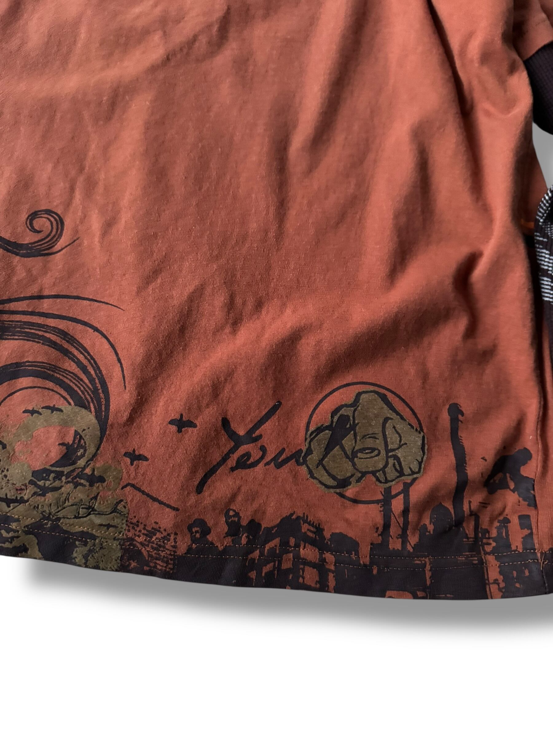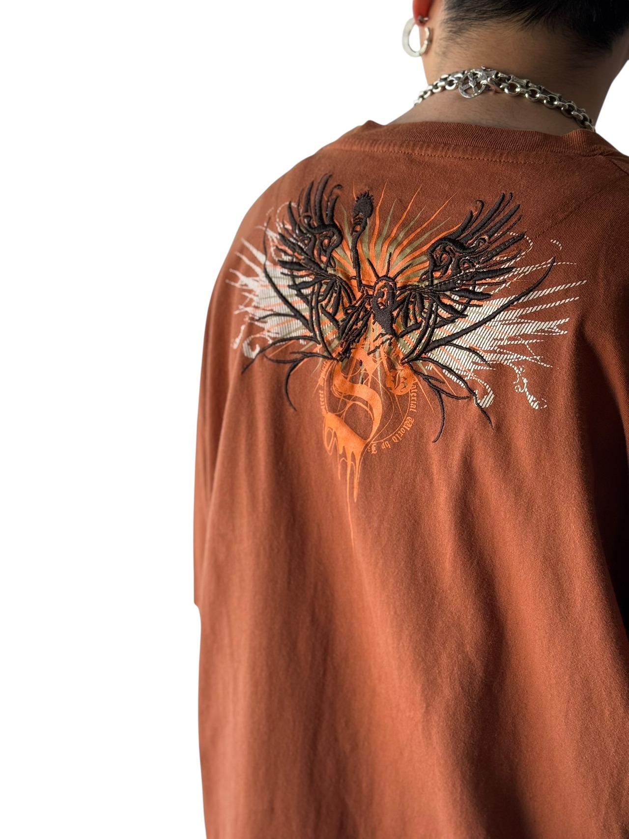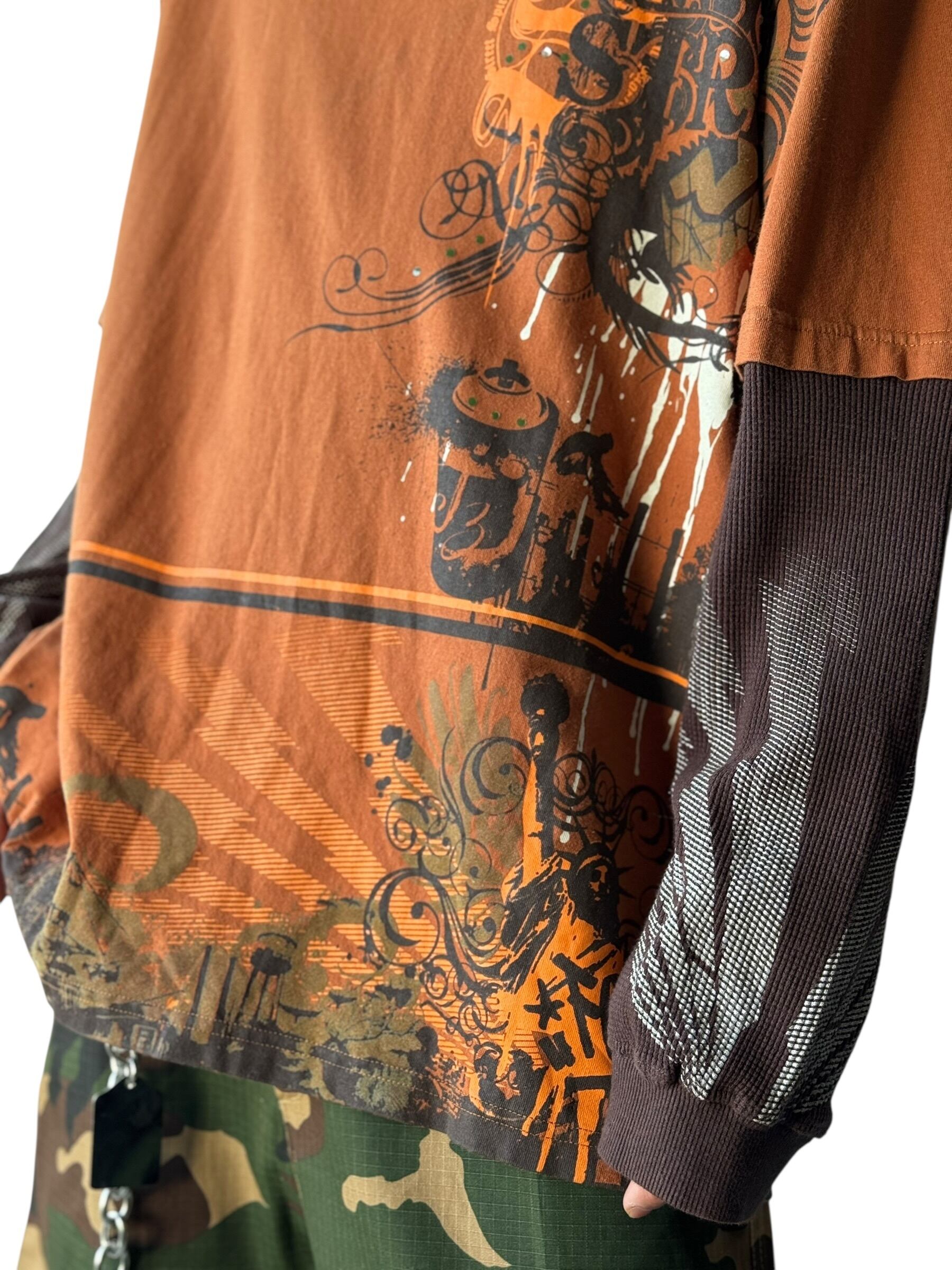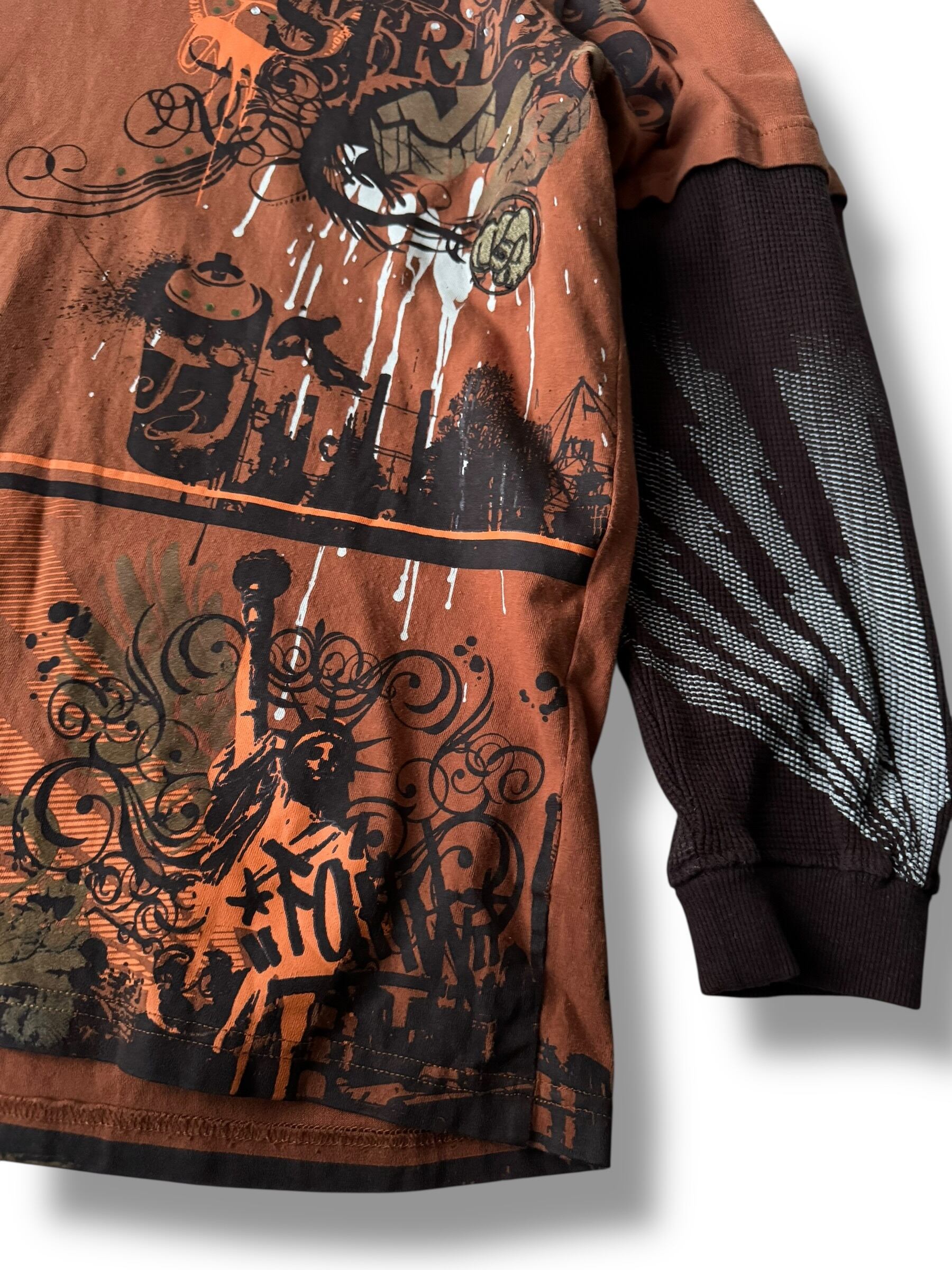 刺繍とグラフィックプリントデザインTeeにサーマルスリーブがドッキングしたレイヤードロングスリーブTEE‼️