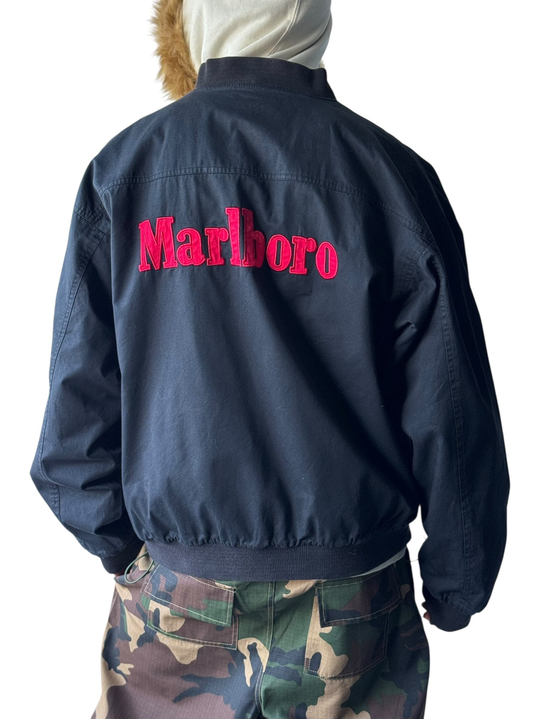 ♾90's Marlboro♾ logo motif double face design zip up jacket sizeL