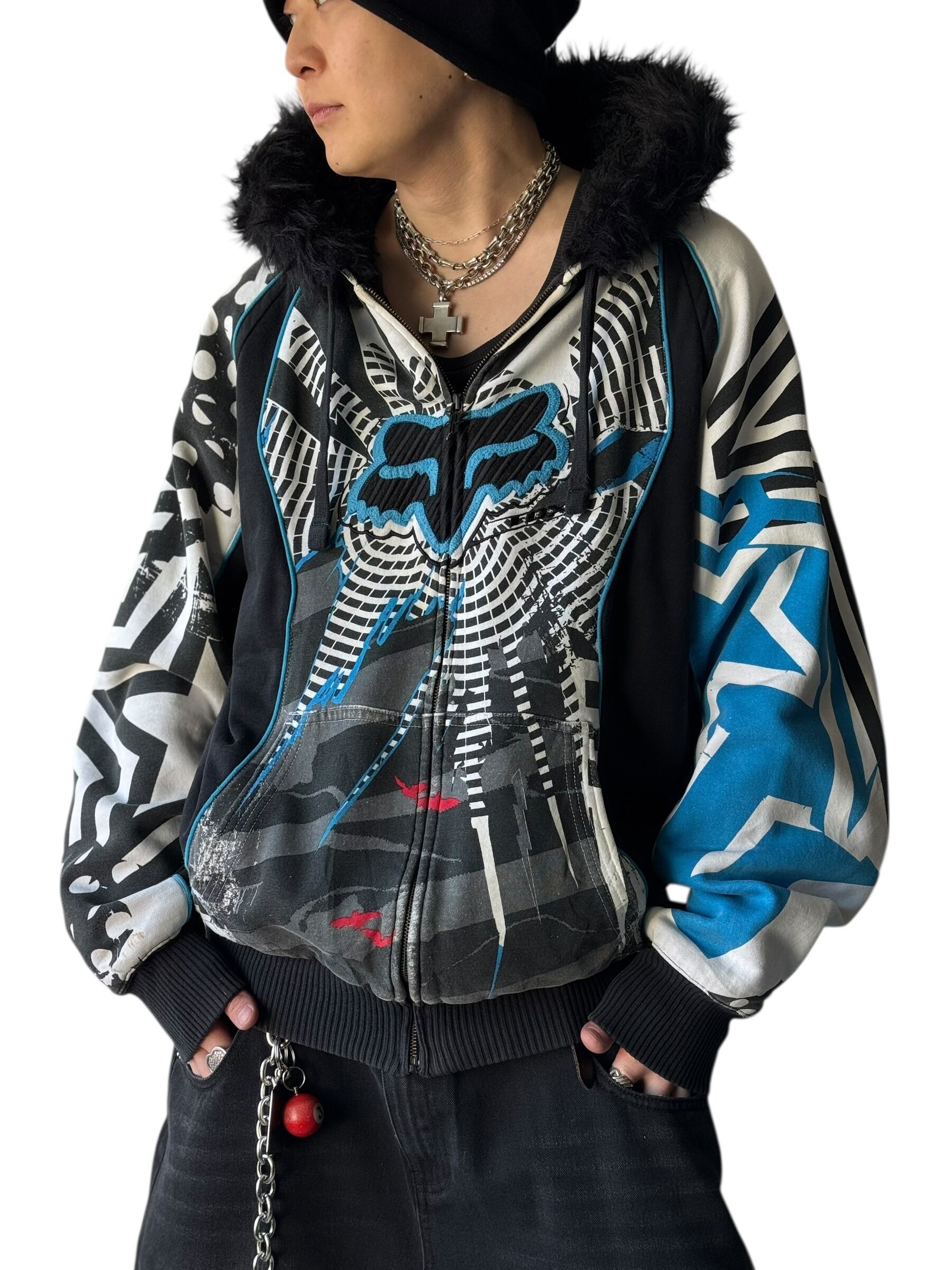 ♾FOX RACING♾ 00's design zip up hoodie size X-Large