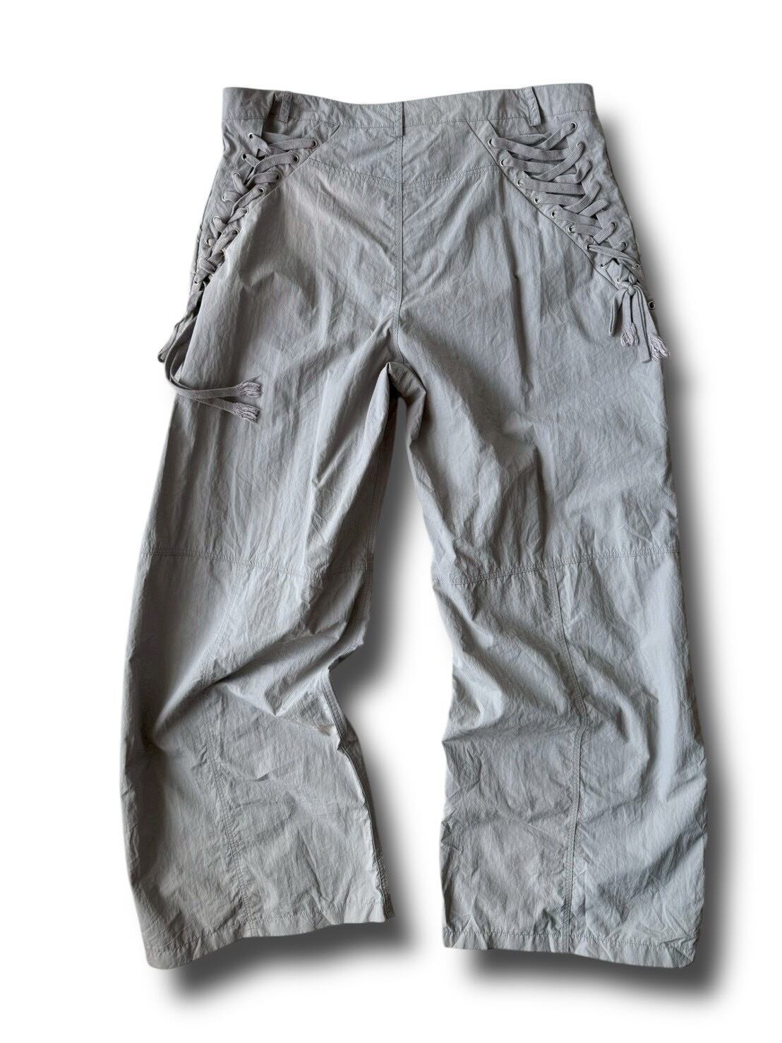 Side lace-up painter-type nylon tech pants