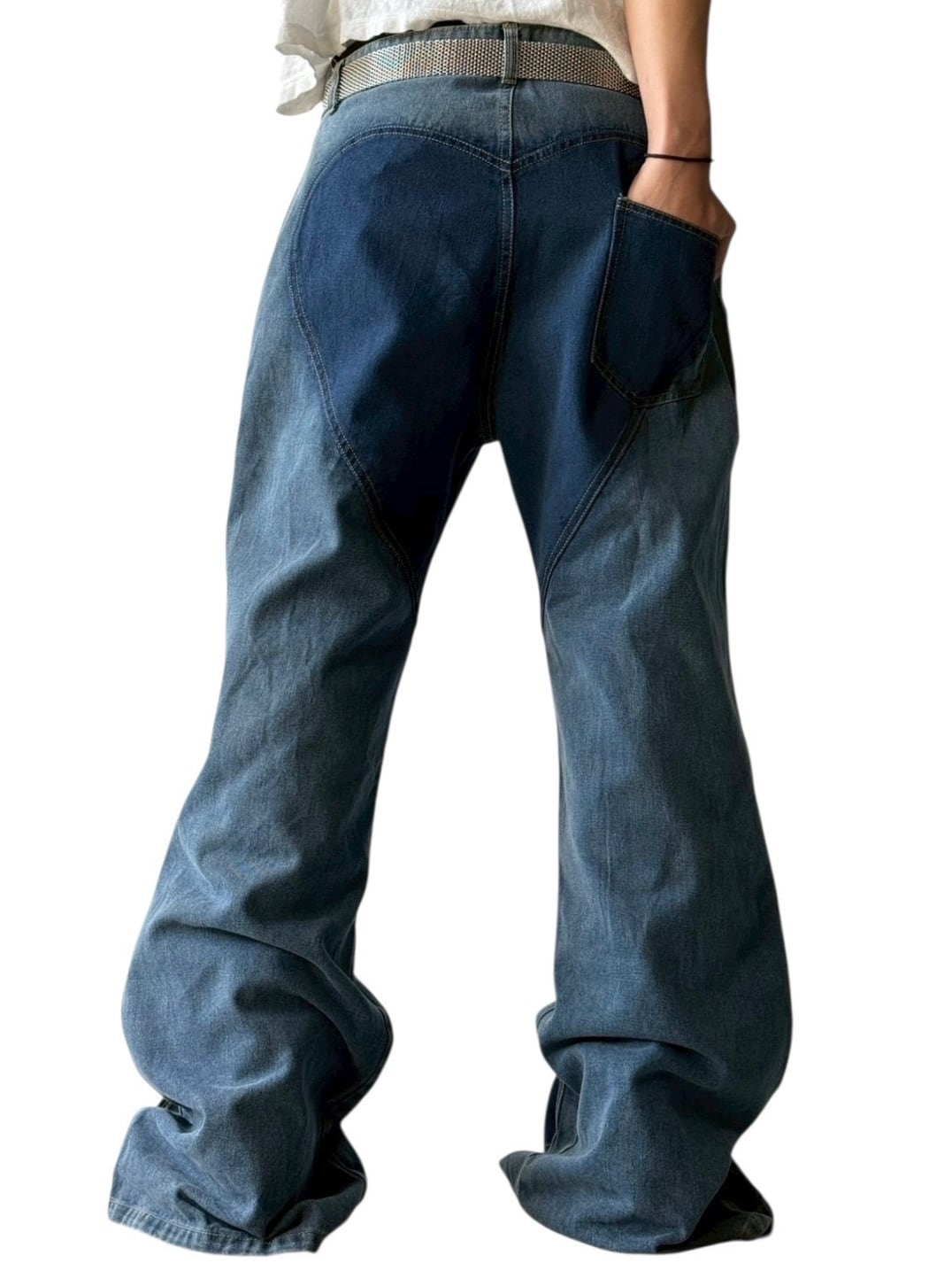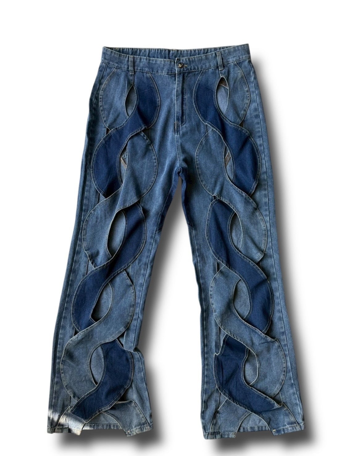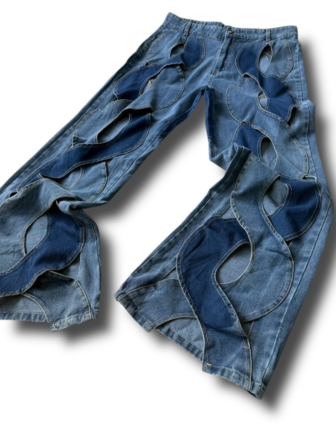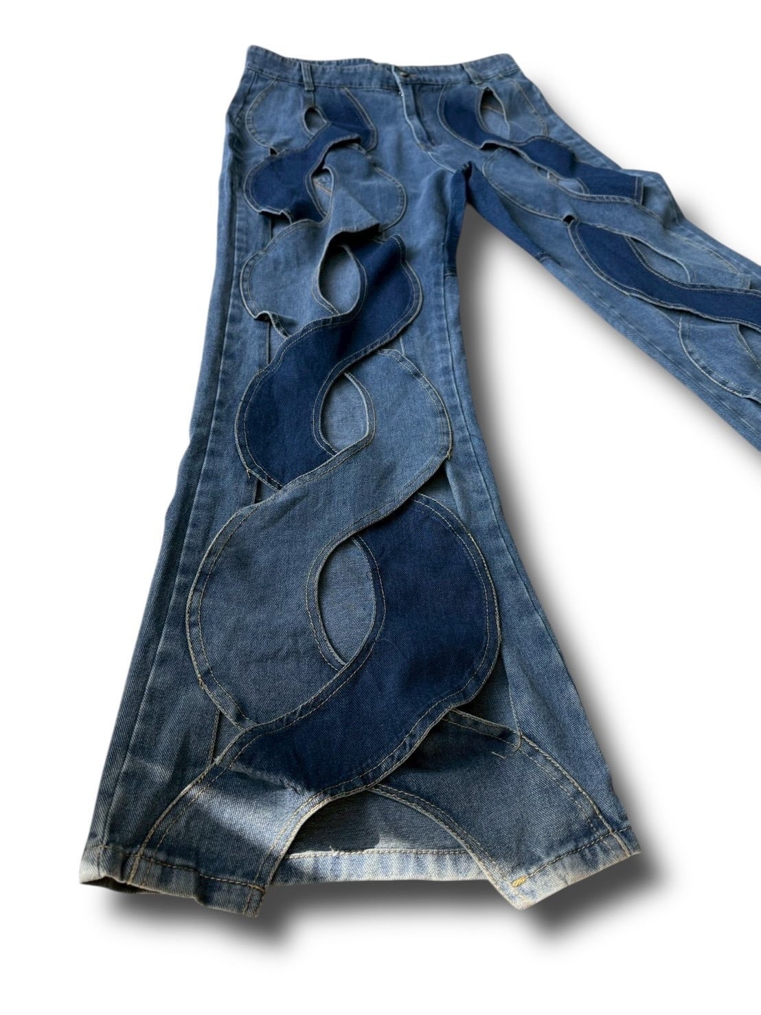 wave cut out design flare denim pants