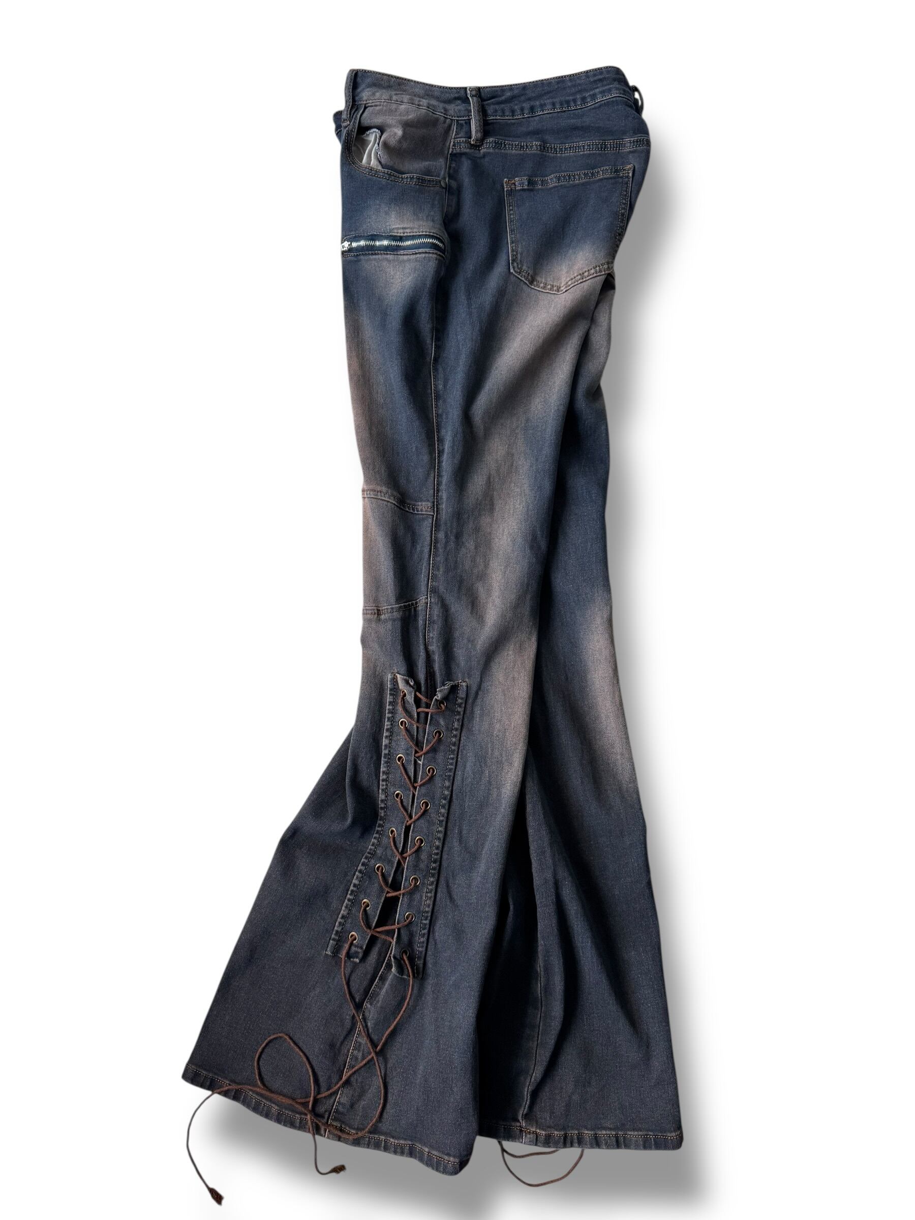 ♾️ design used ♾️ Lace-up design sunset fade flared silhouette denim size 15