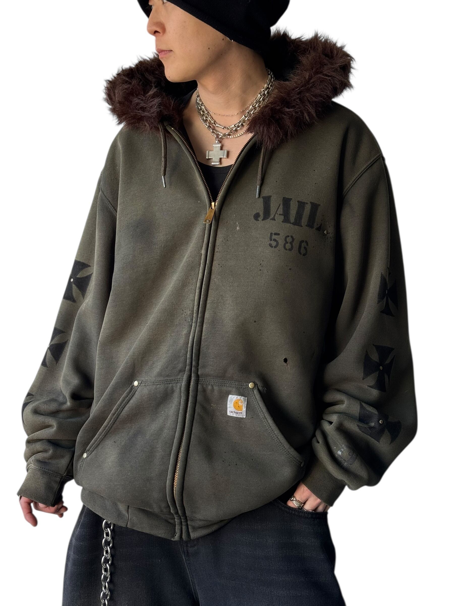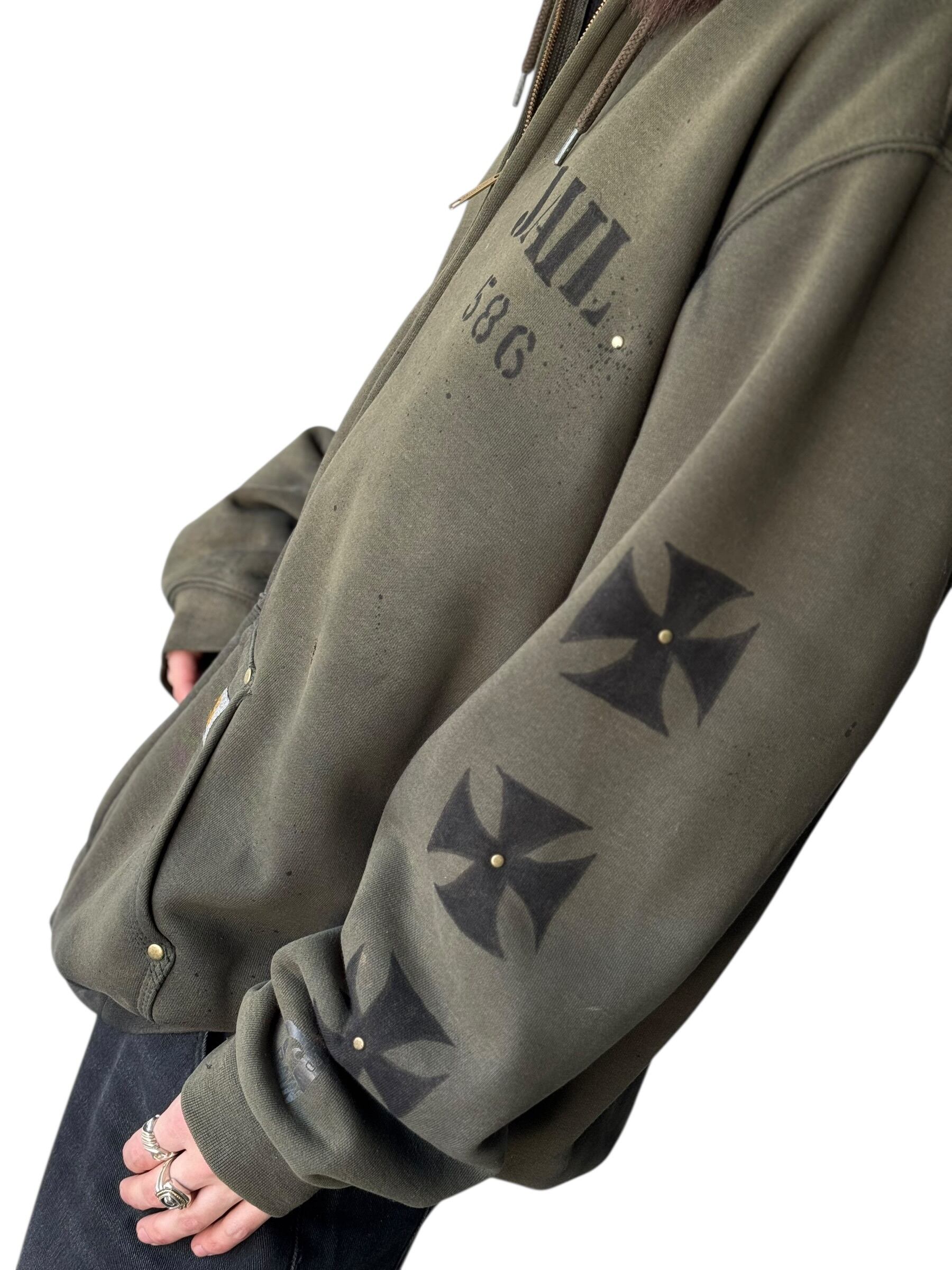 ‼️Special‼️♾Carhartt♾ sun fade damage & hand painted custom design zip up hoodie size L