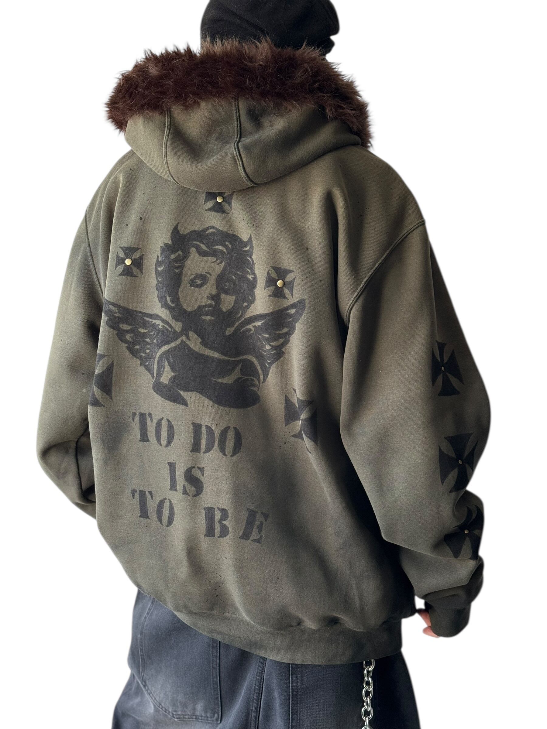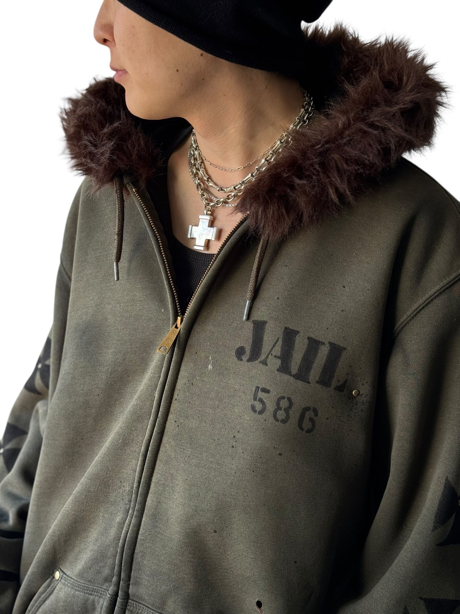 グッドフェードの色味とさり気ないダメージ加工がめちゃめちゃクールな個体に無二なハンドペイントを施したデザインジップアップフーディー‼️