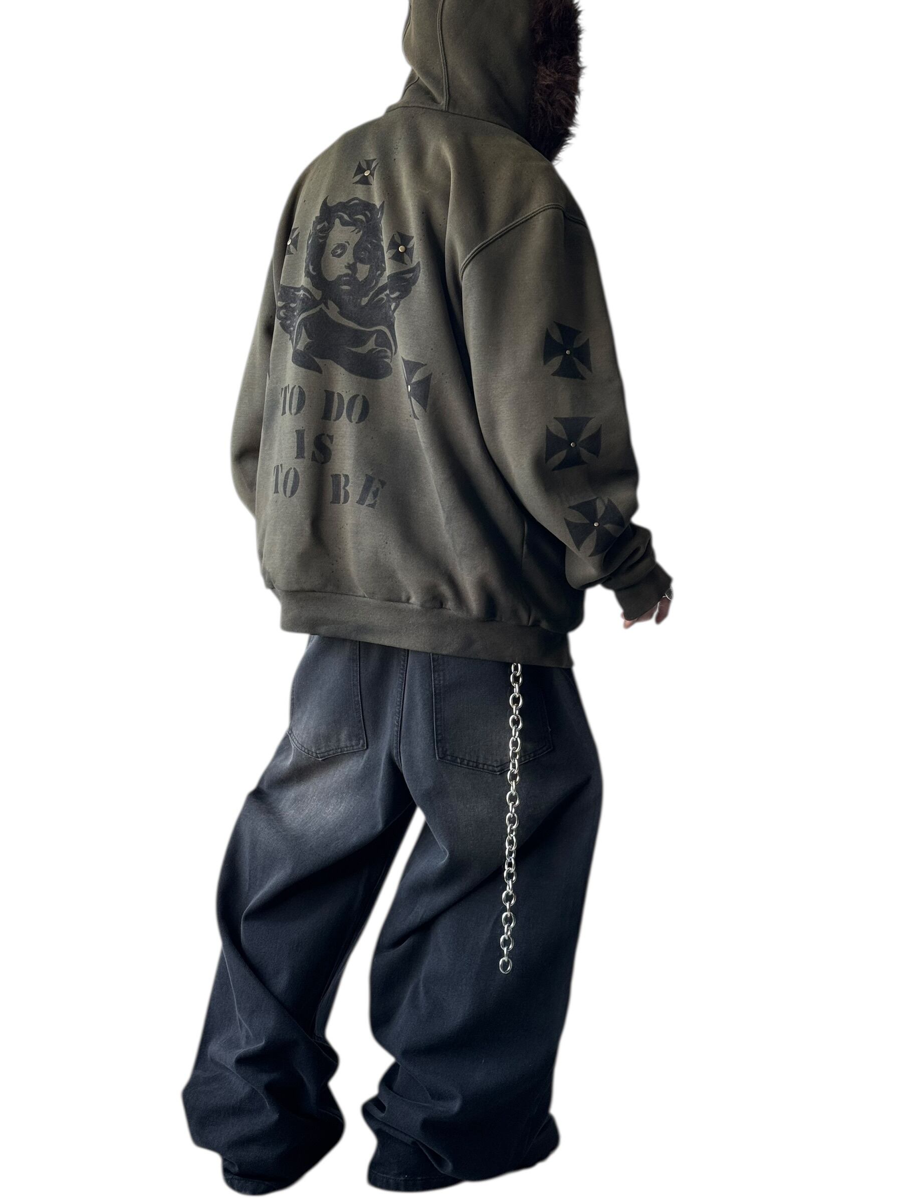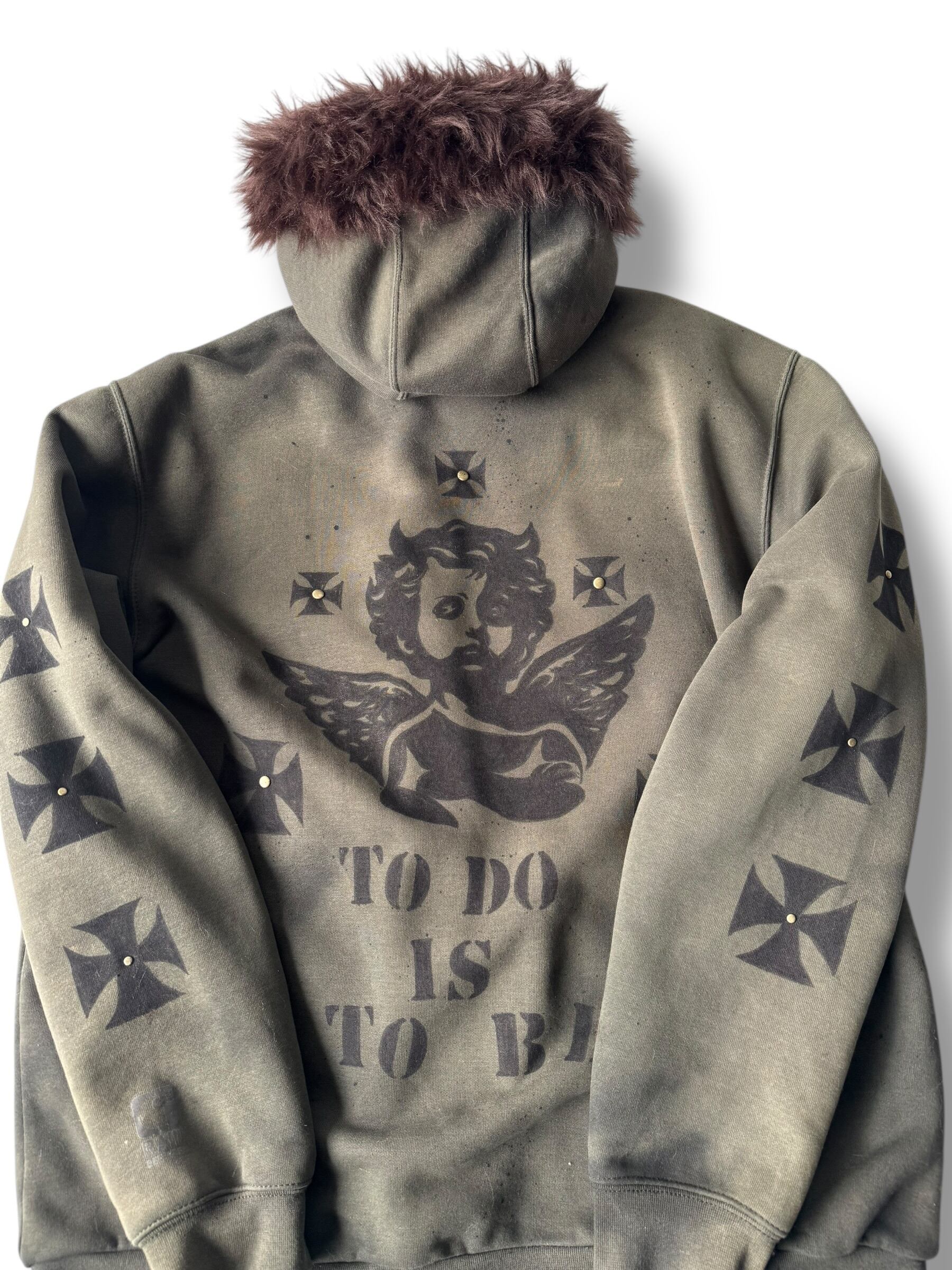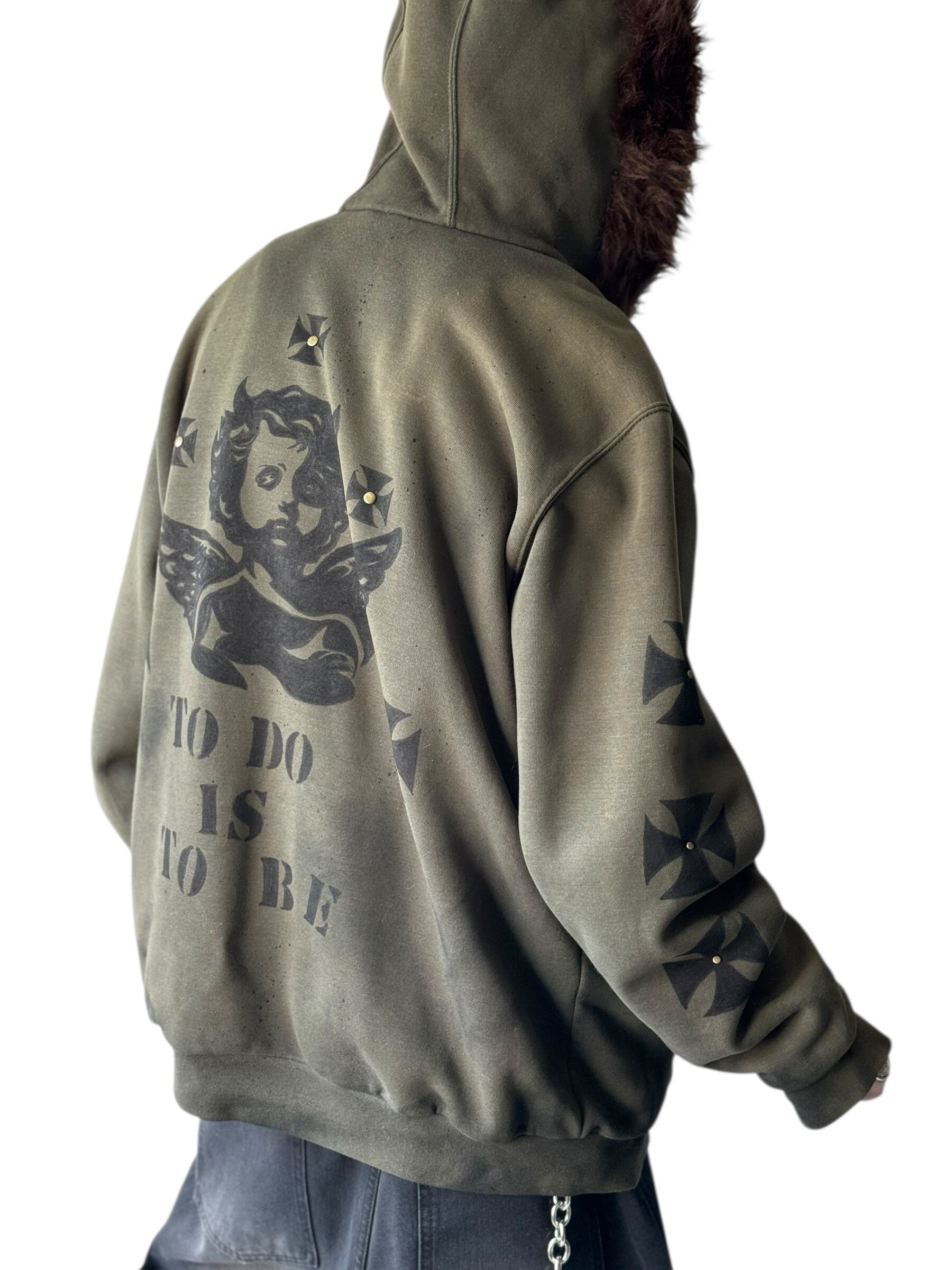 sun fade damage & hand painted custom design zip up hoodie